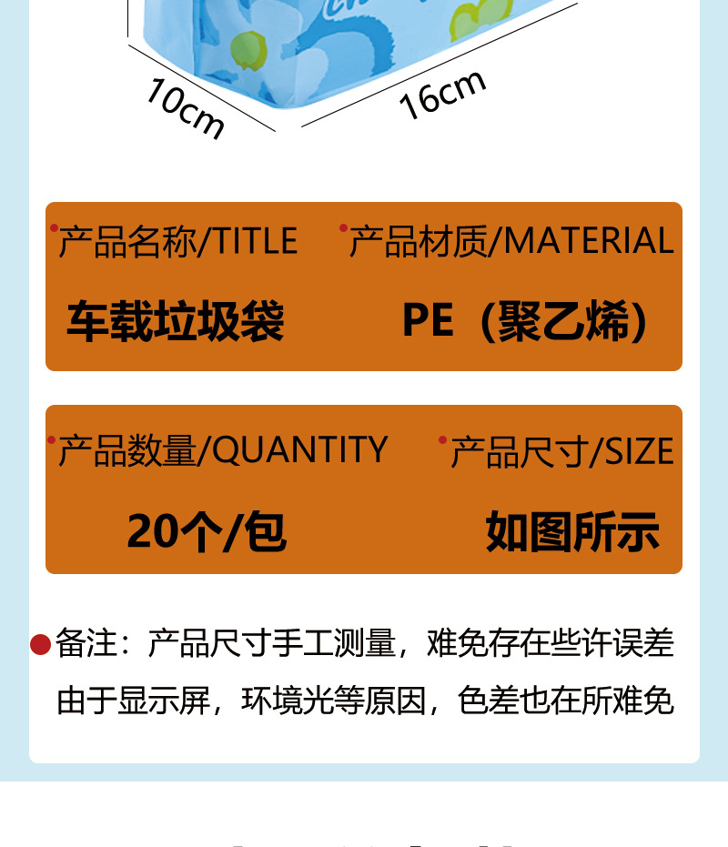 超值80只【加宽自立底部!轻松站立】自立车载垃圾袋可站立汽车用车内一次性垃圾桶粘贴式清洁袋车立袋。ra