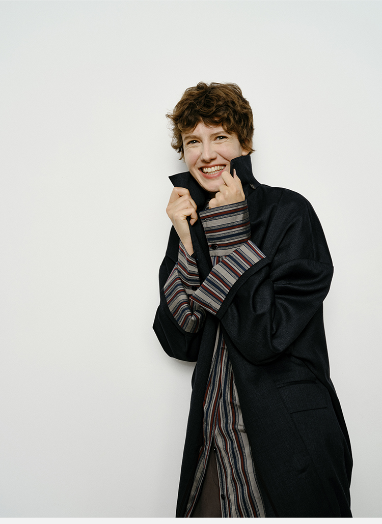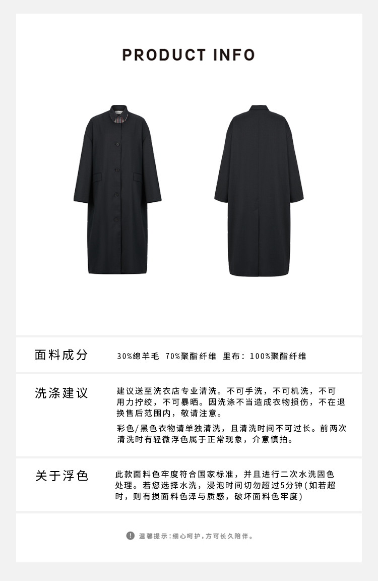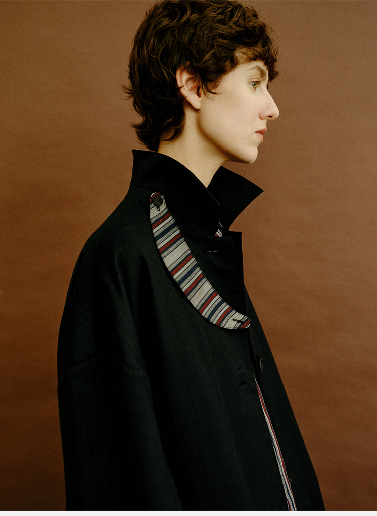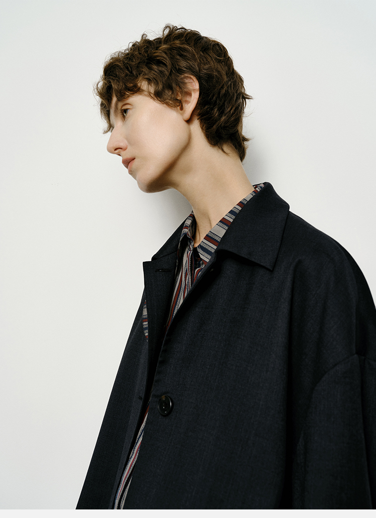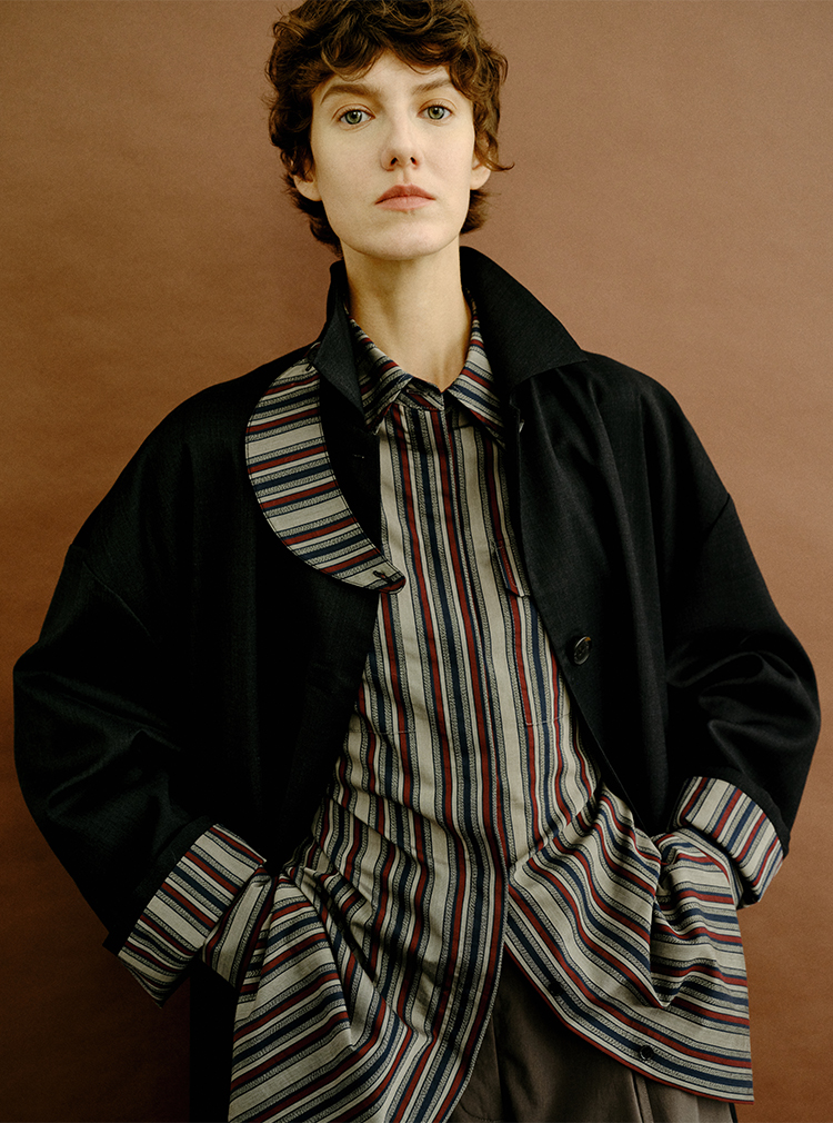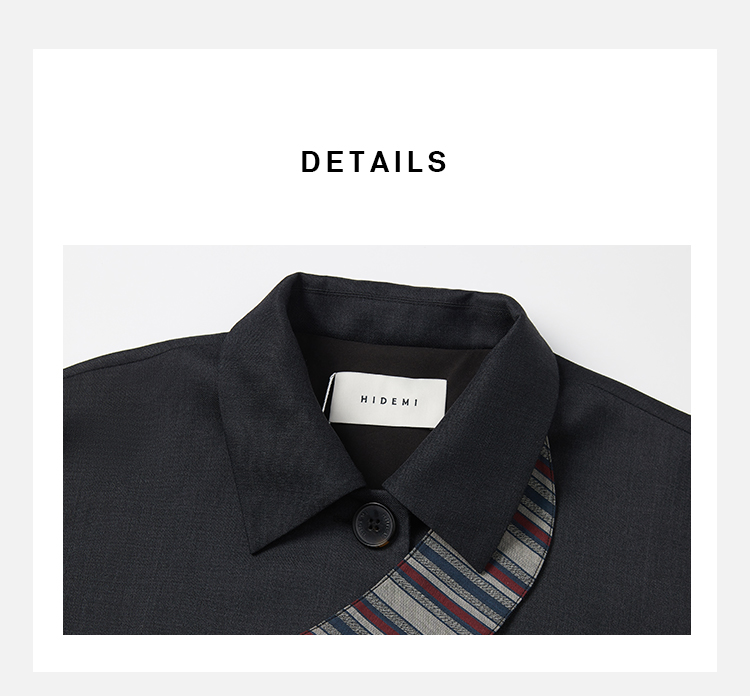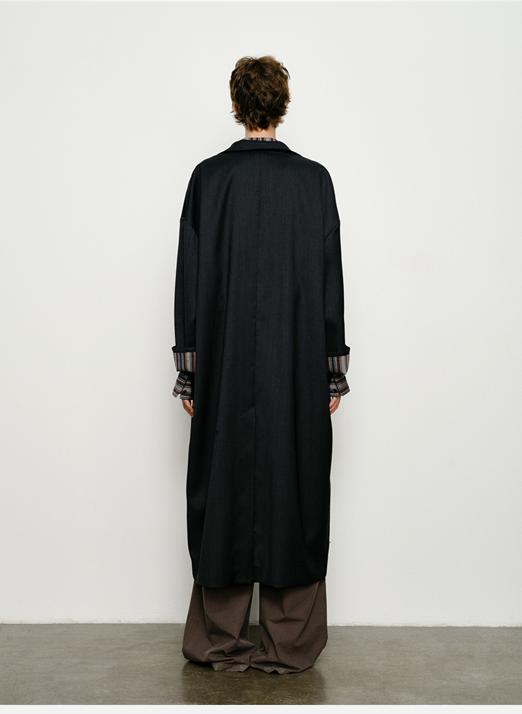 HIDEMI 精纺羊毛廓形条纹翻边复古长款飘领设计感风衣