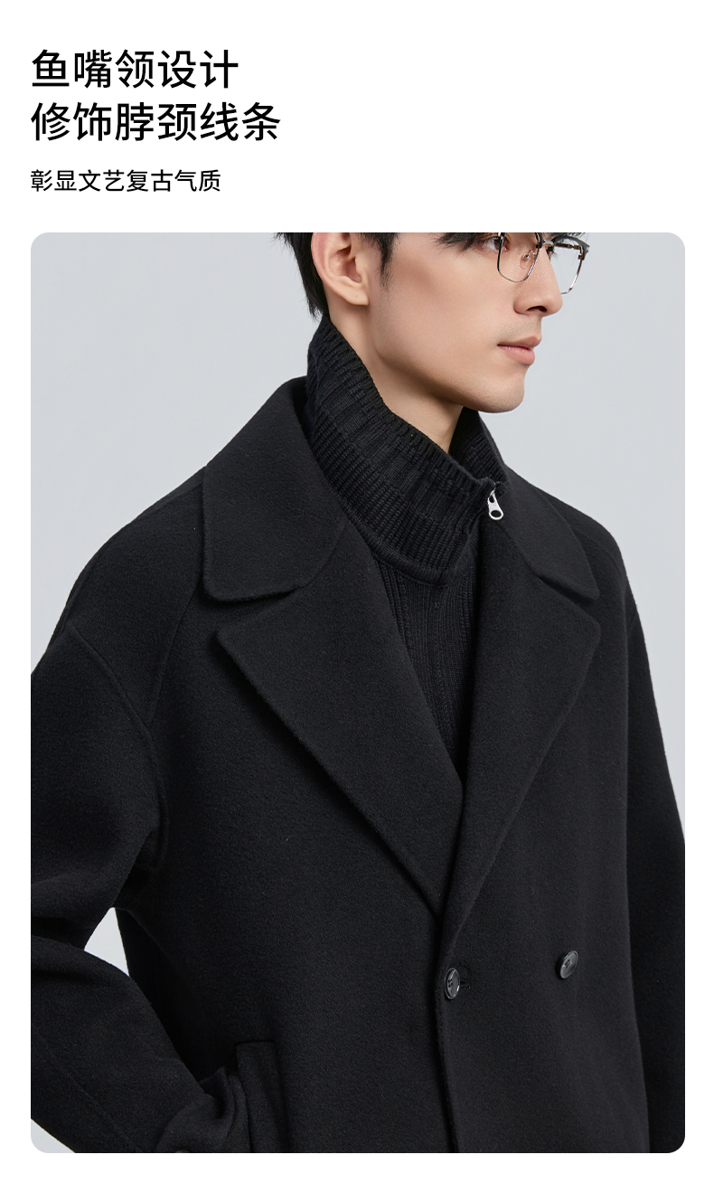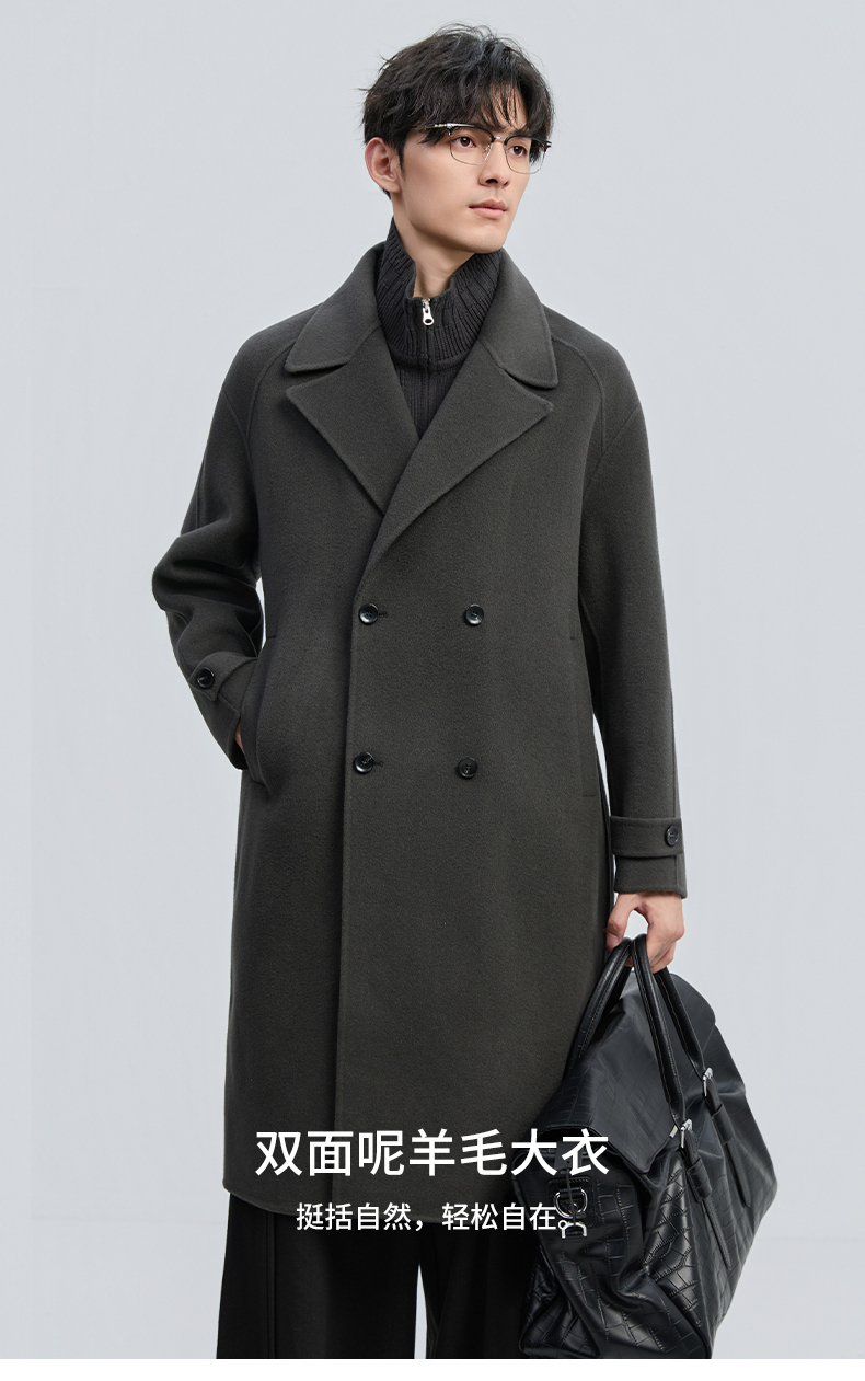 贝纳川冬季假两件100%棉羊毛大衣ECT428003