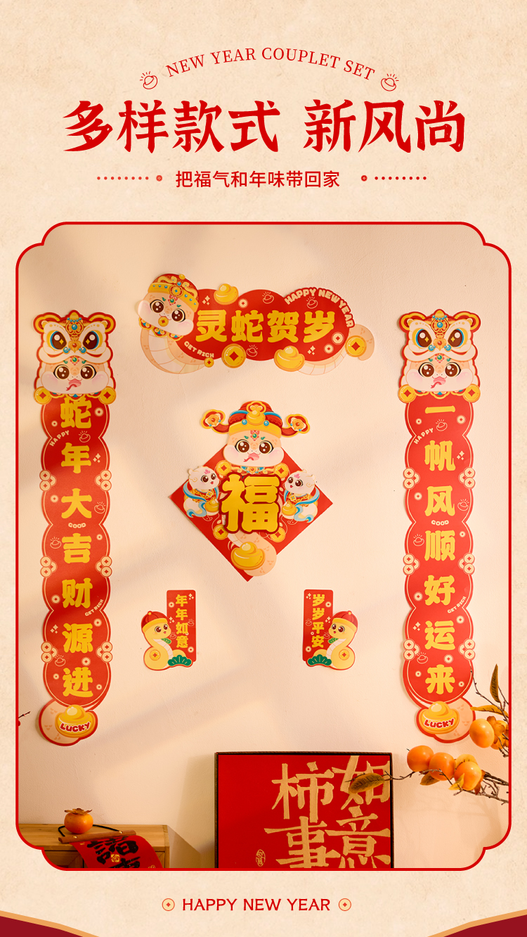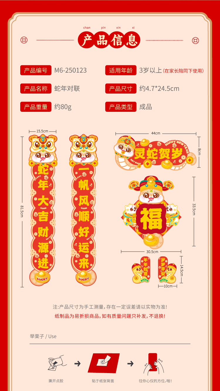 新款春节新年元旦蛇年对联手工diy儿童制作材料包幼儿园装饰2025