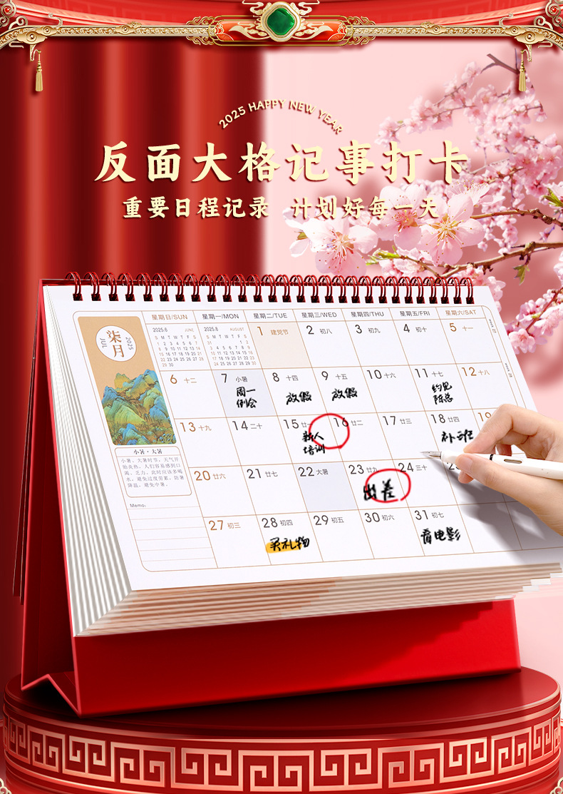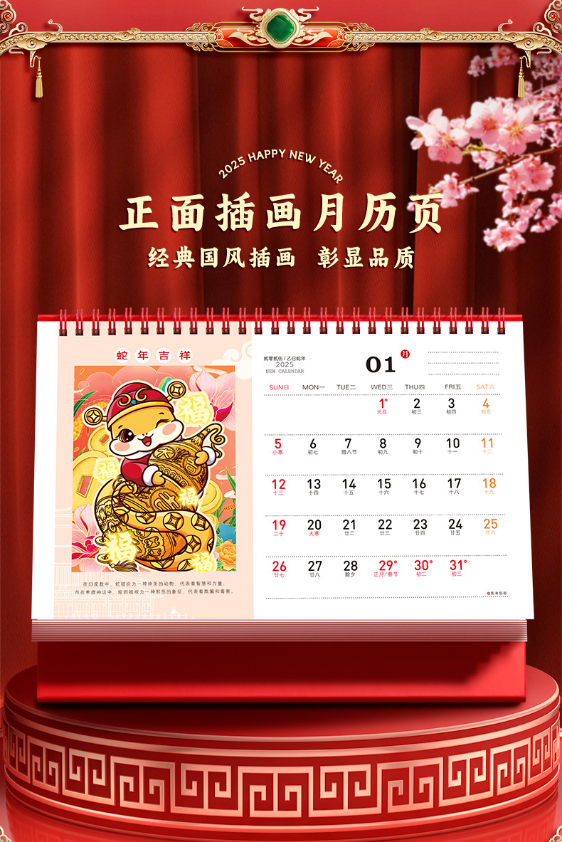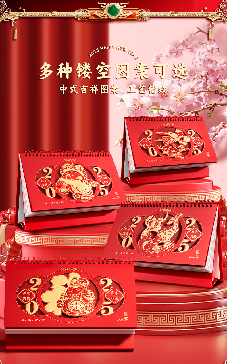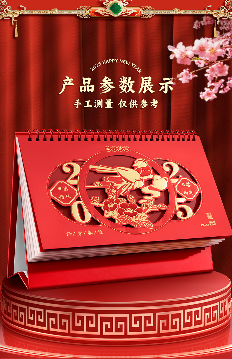 【既是台历也是记事本!开启新征程】2025年红色台历定制蛇年高端国潮中国风烫金镂空办公桌面日历月历。ry