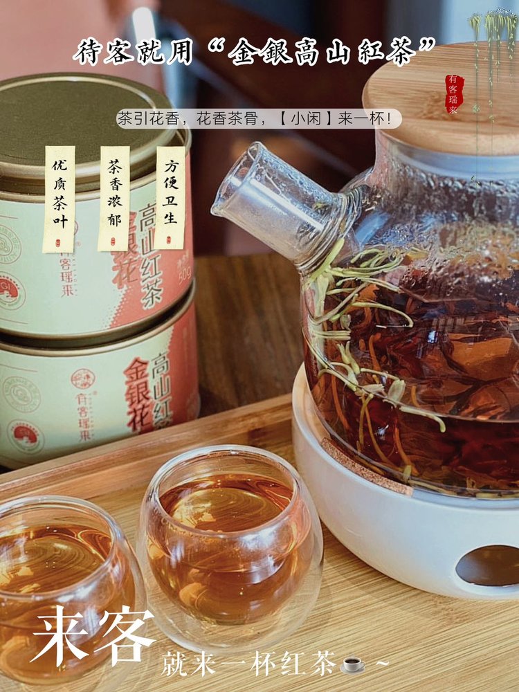 有客瑶来金银花高山红茶有茶有花茶引花香,花香茶骨。