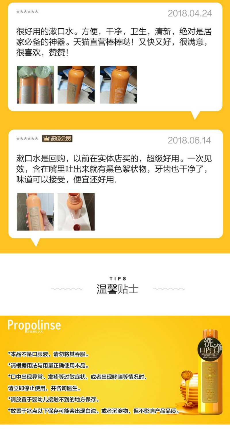 【YZ】日本Propolinse比那氏蜂胶漱口水600ml 除口臭口腔清洁