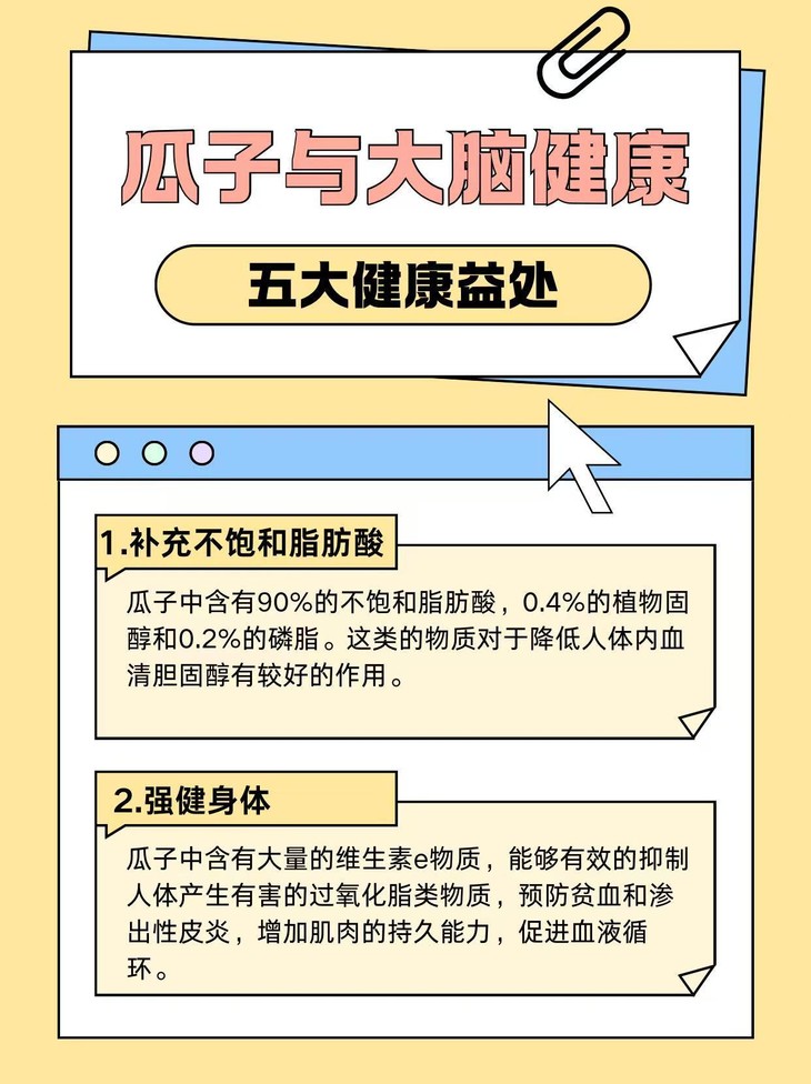 瓜子仁作为优质坚果🌰好处可不少❗️ 瓜子仁富含不饱和脂肪酸,还有维生素E✨ 对咱们身体各方面都很友好~ 尤其是现在大家经常熬夜、对着电脑💻 适量吃点瓜子仁补充营养! 来上一把,健康又美味,真的太香啦😋