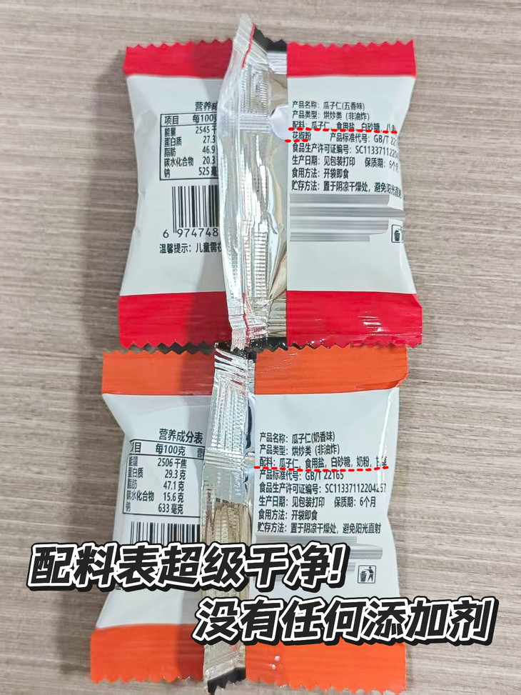 好口感全靠好配料撑着👍 配料表超级干净 没有任何乱七八糟的添加剂🙅 对比那些廉价瓜子仁加一堆防腐剂、增香剂😖 咱们这吃着才放心💯
