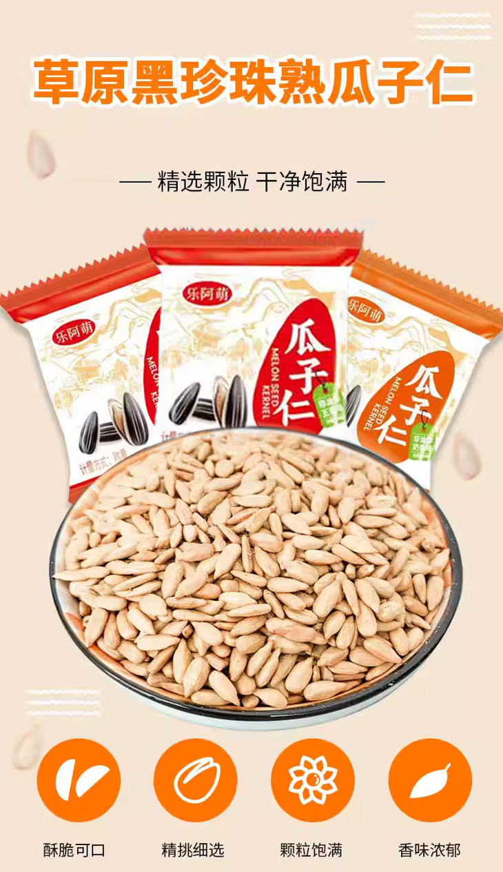 咱们是科学烘焙工艺🔬 严格筛选每一颗瓜子仁,剔除坏仁、瘪仁❌ 保证每一包里的仁都是颗粒饱满的 再经过现代烘烤工艺,牢牢锁住水分和香味🔒 裹上一层金黄薄衣,由内而外都是酥脆诱惑 跟那些油炸的、油腻腻的瓜子仁完全不一样🙅 吃着清爽不粘手👏