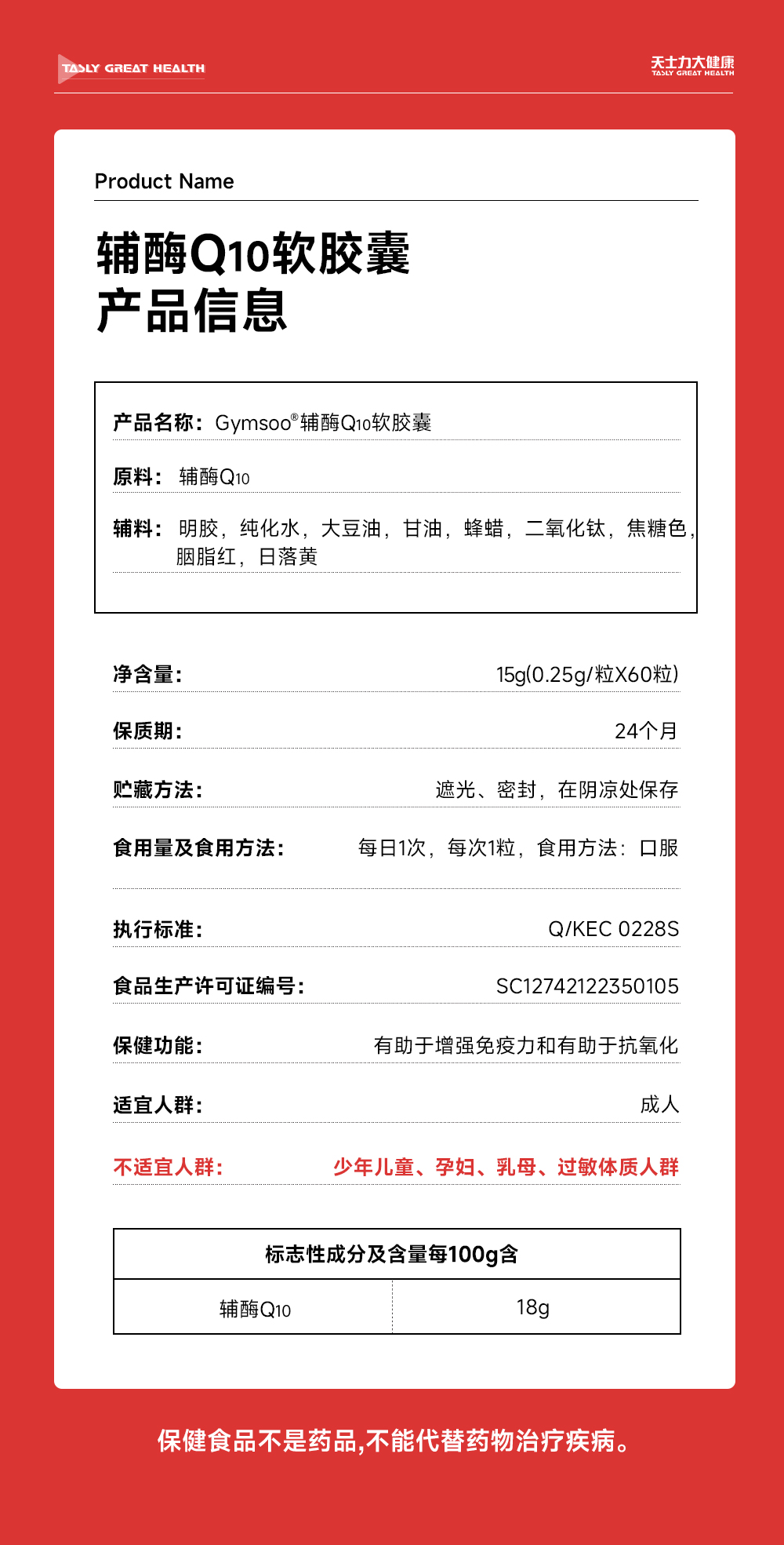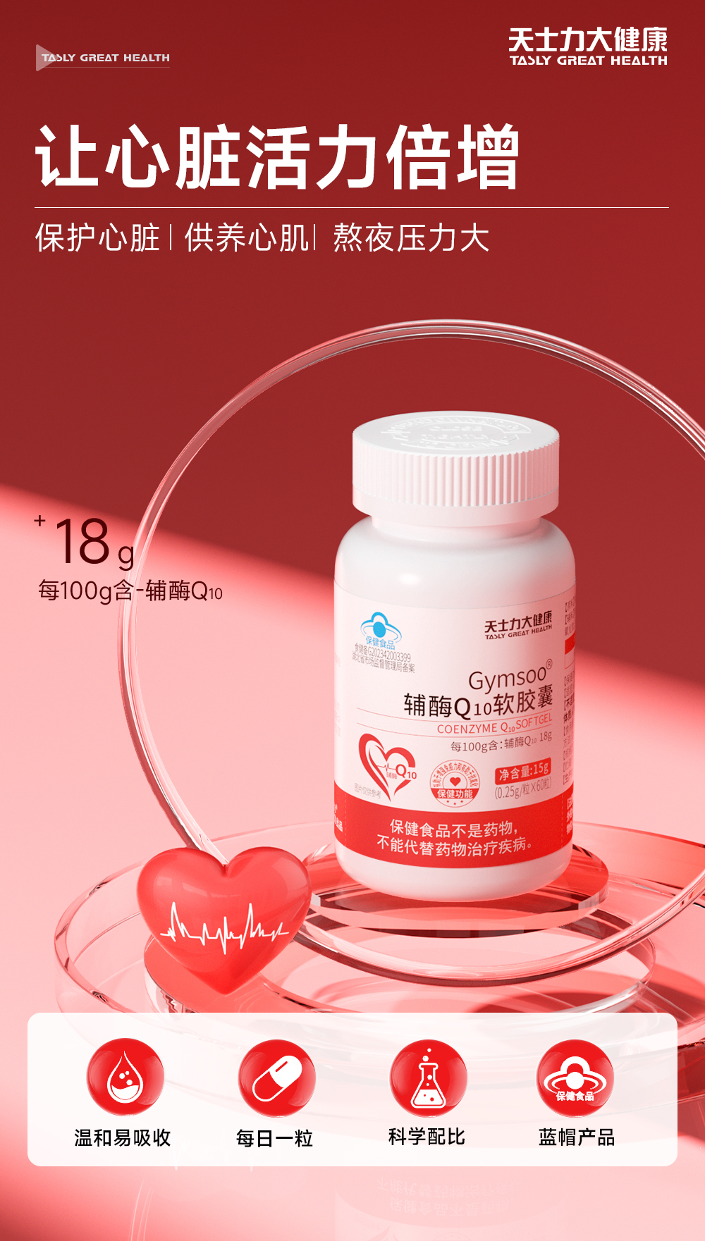 天士力大健康Gymsoo辅酶Q10软胶囊(0.12g*60粒)