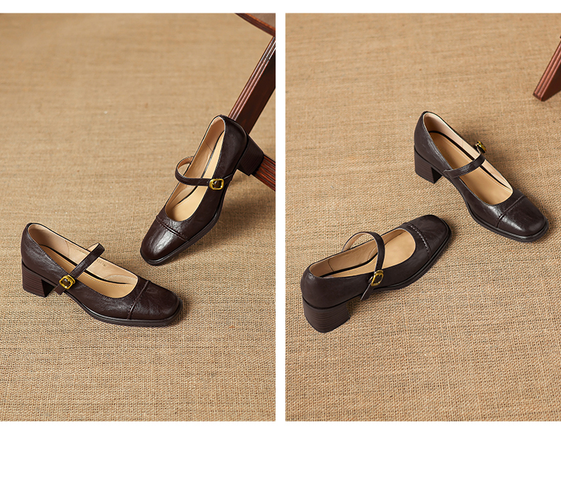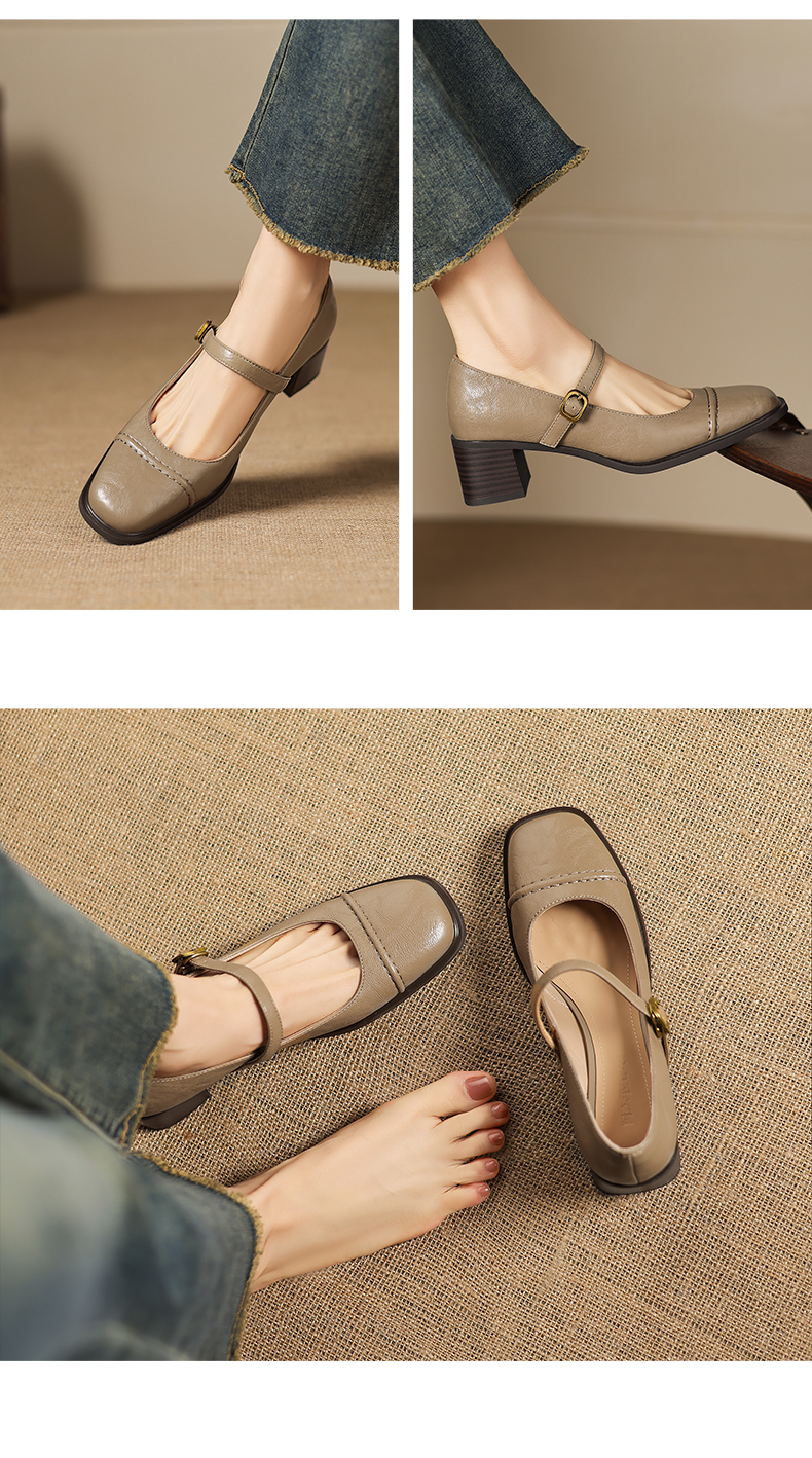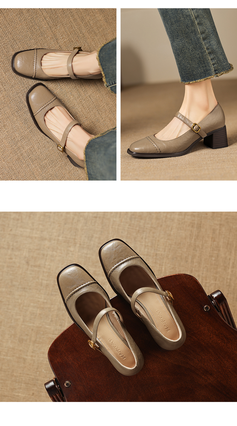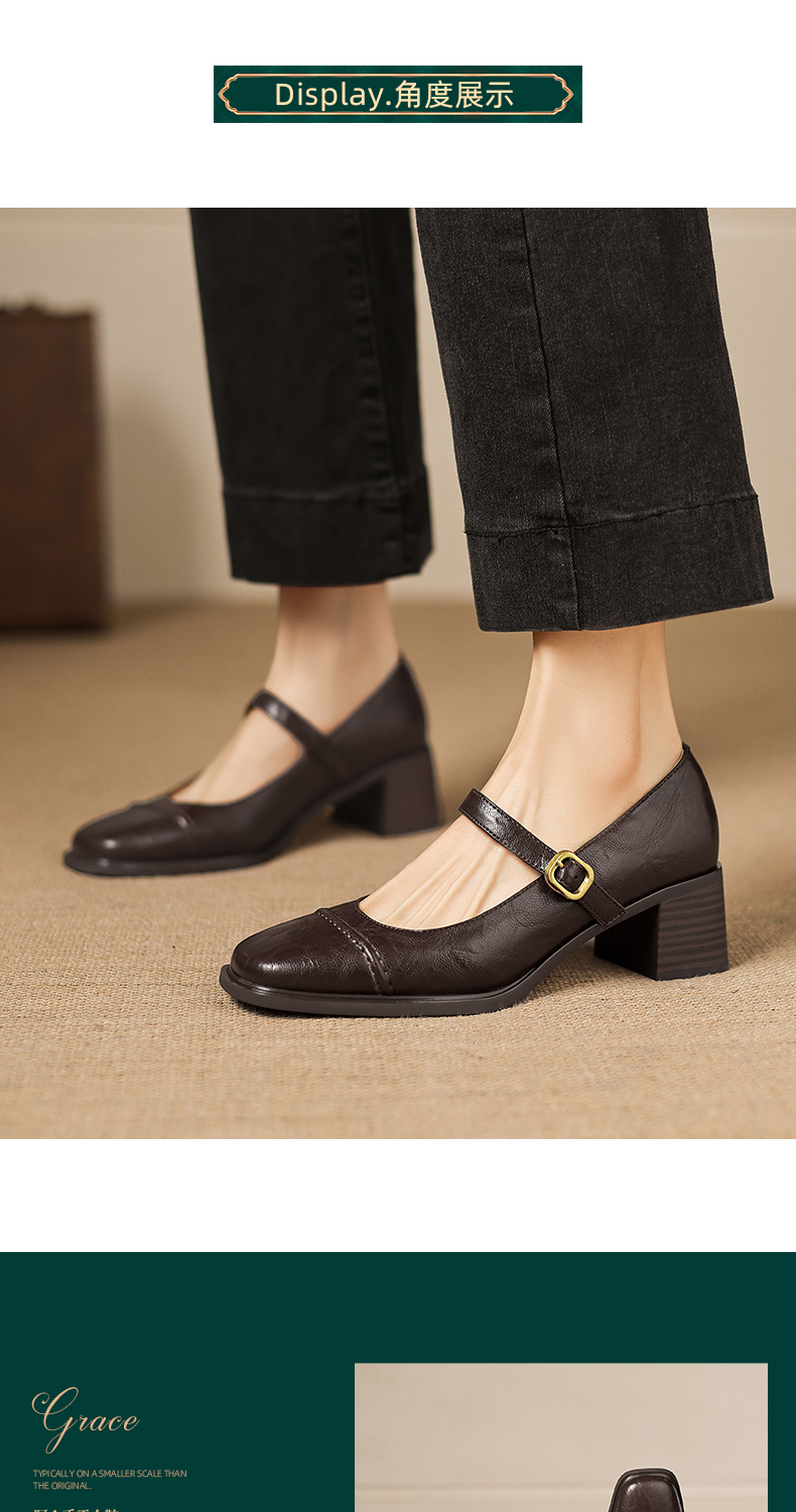 阿么手工女鞋极简风一字带玛丽珍鞋2026新款百搭气质方头单鞋5CM 商品图4