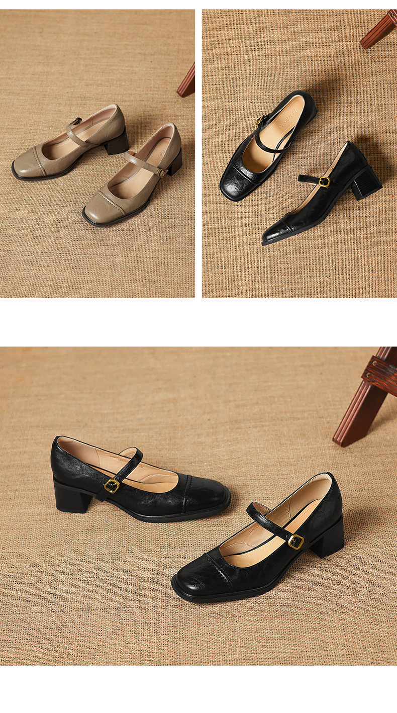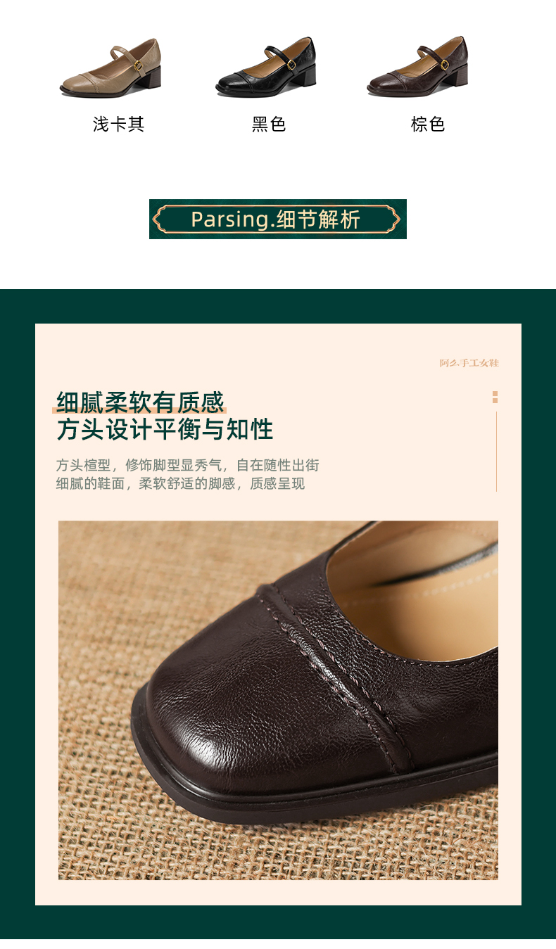 阿么手工女鞋极简风一字带玛丽珍鞋2026新款百搭气质方头单鞋5CM 商品图3