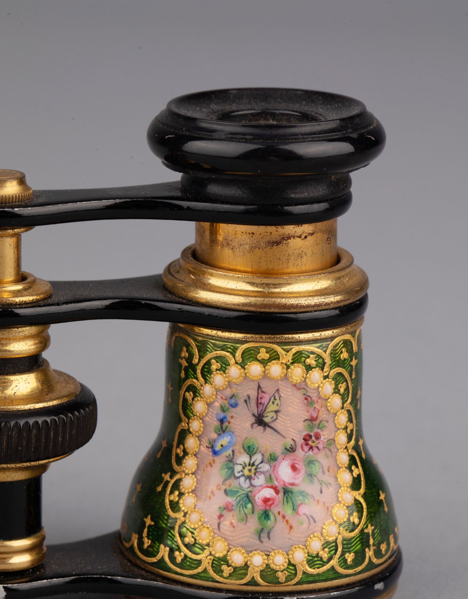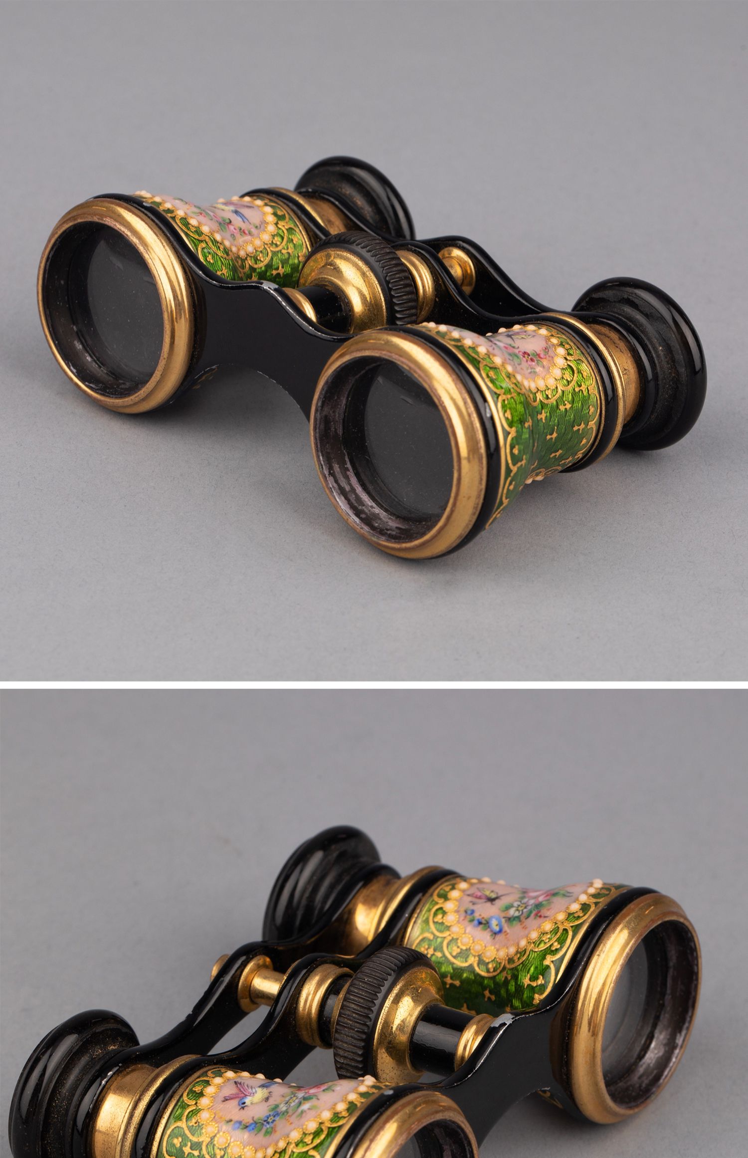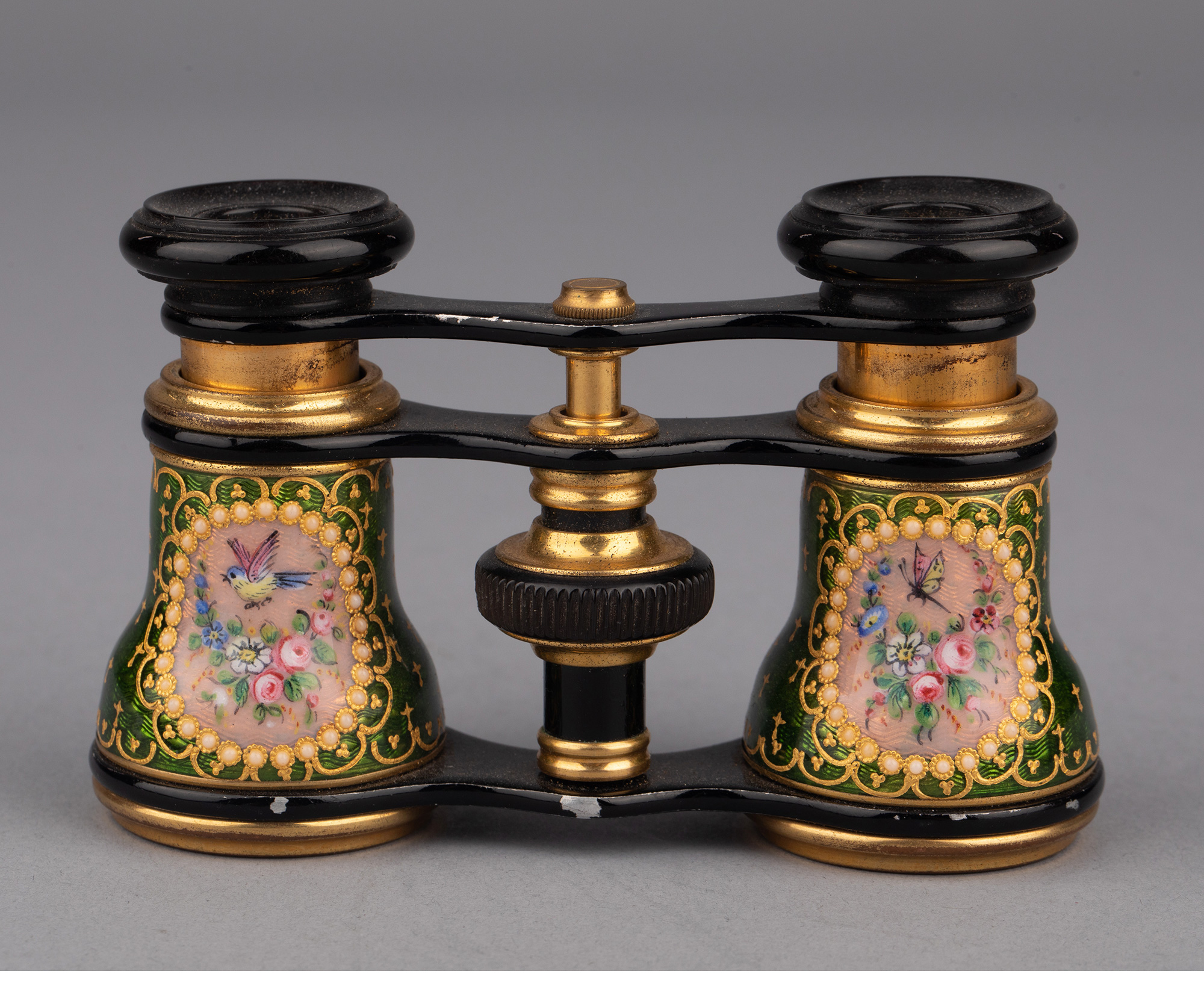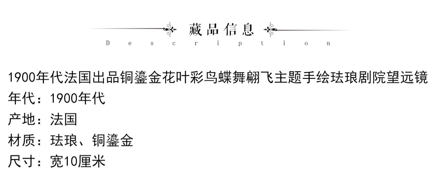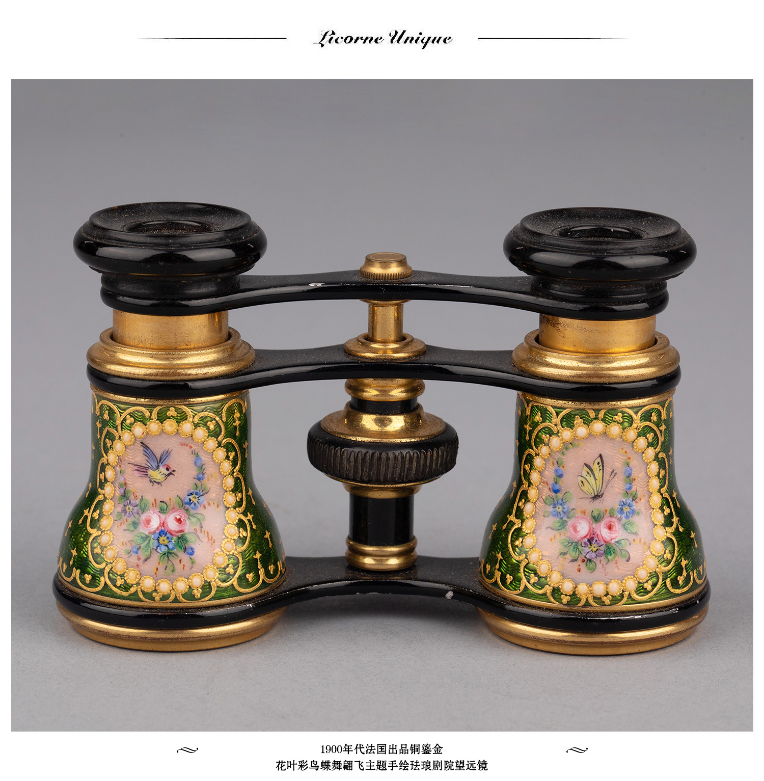 独角鹿西洋古董铜鎏金花叶彩鸟蝶舞翩飞主题手绘珐琅剧院望远镜