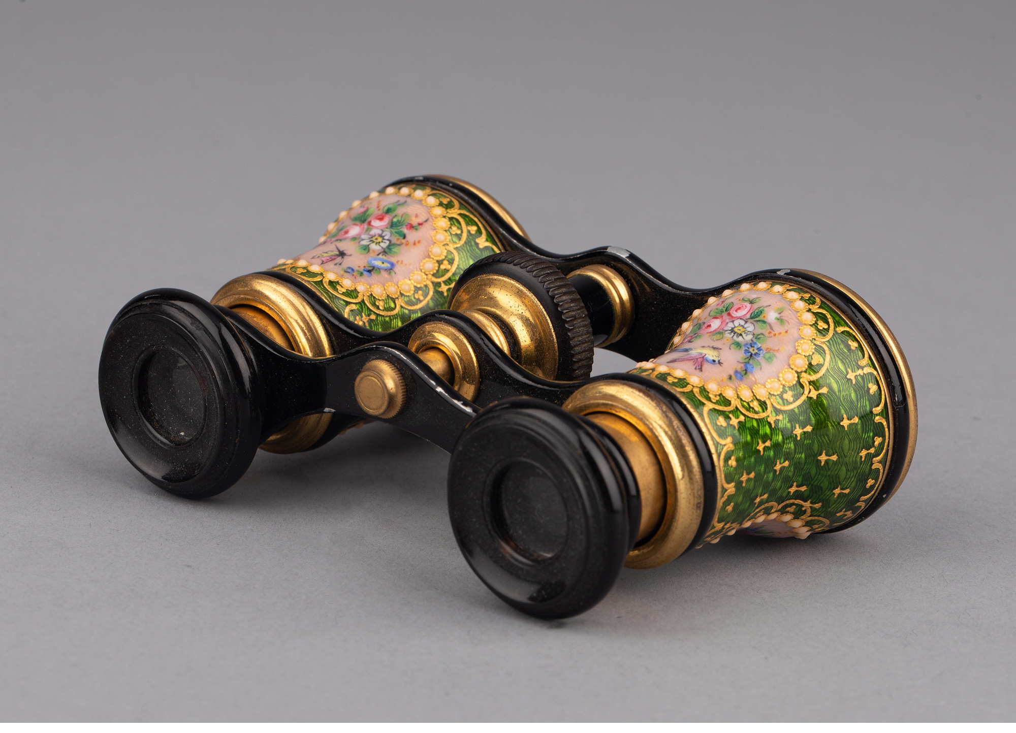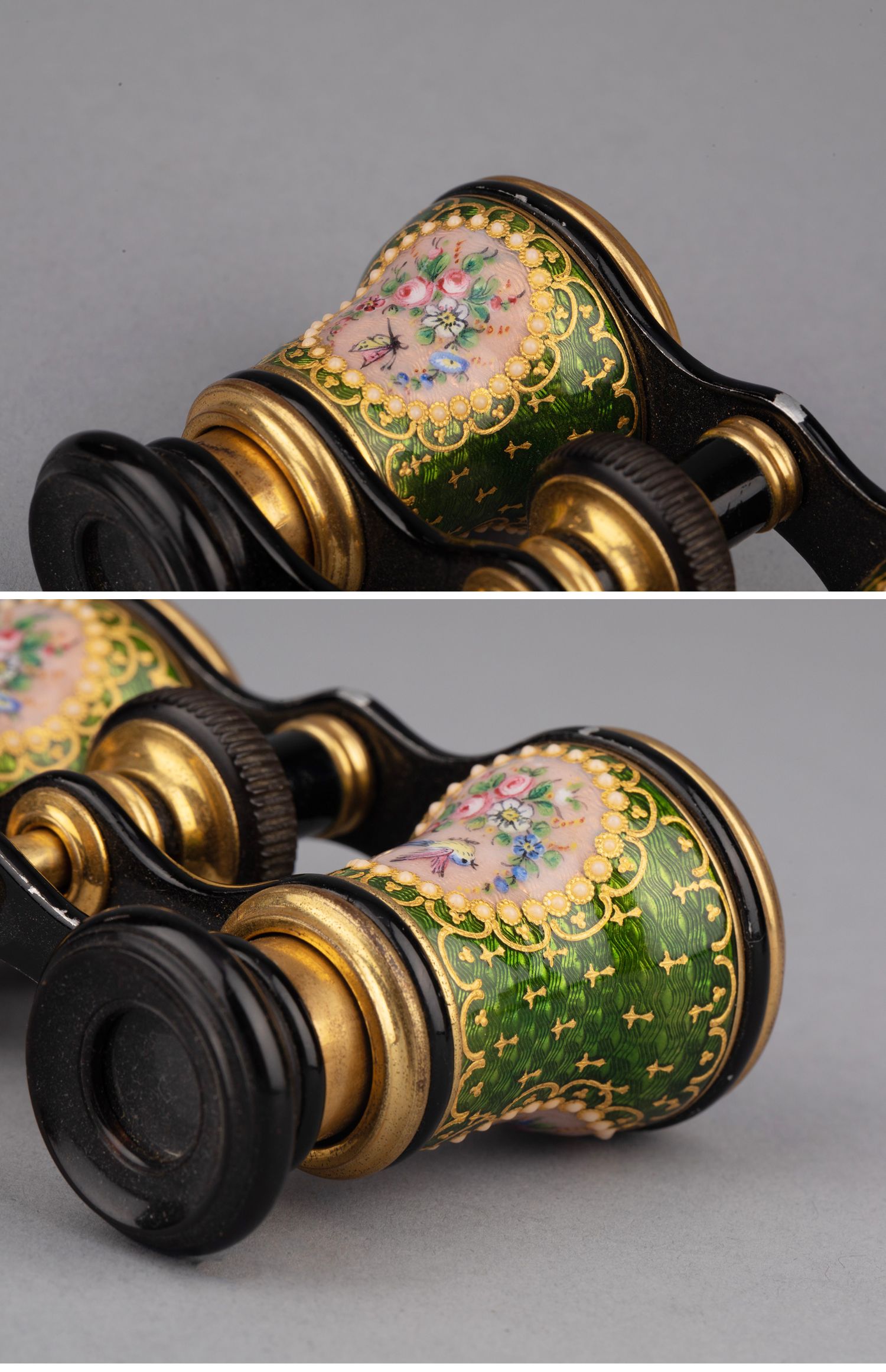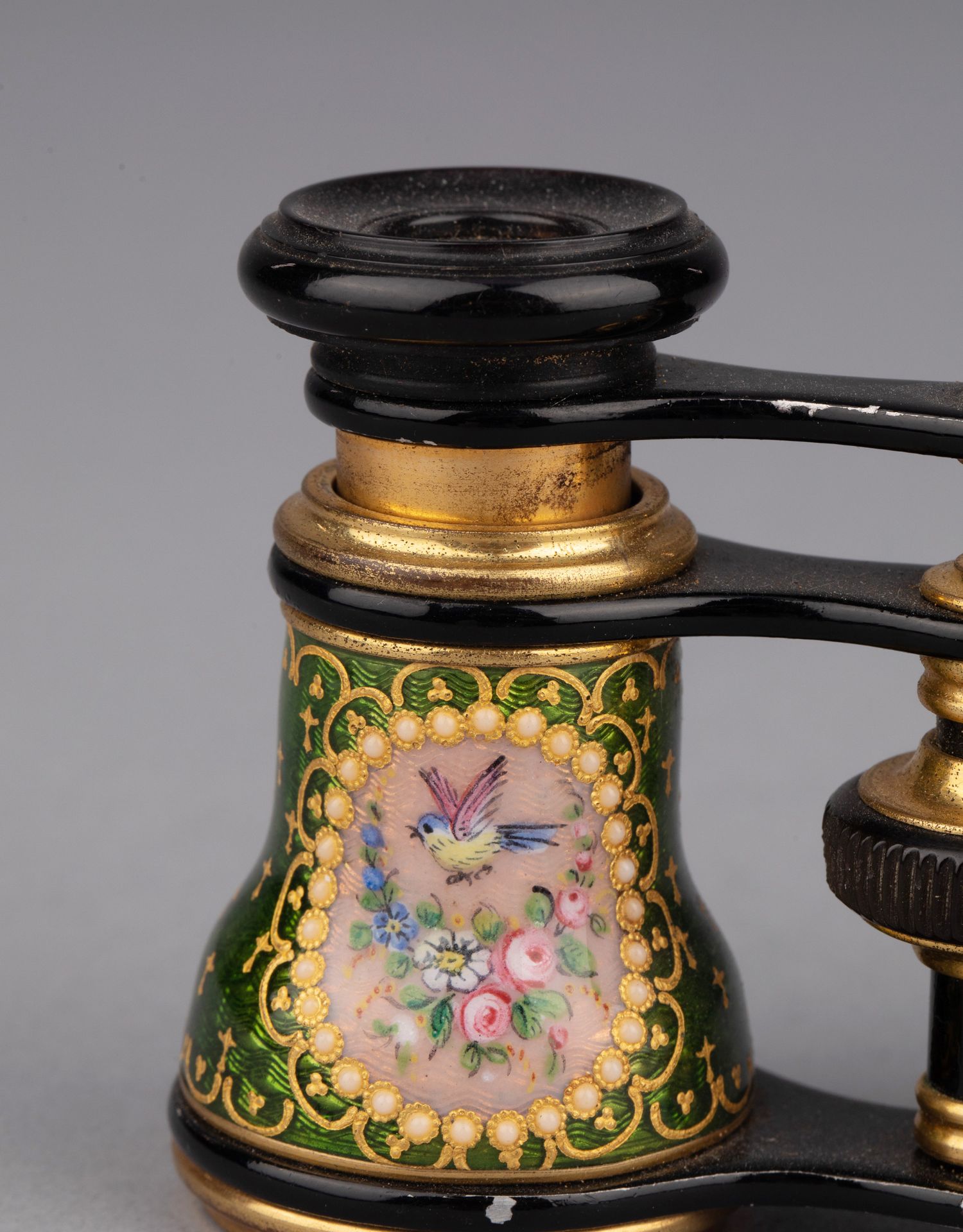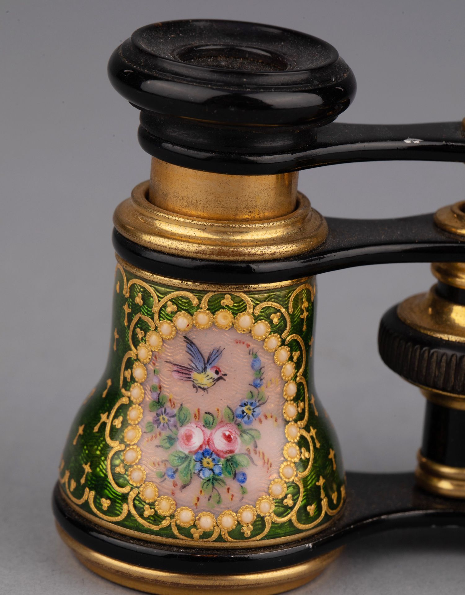 独角鹿西洋古董铜鎏金花叶彩鸟蝶舞翩飞主题手绘珐琅剧院望远镜
