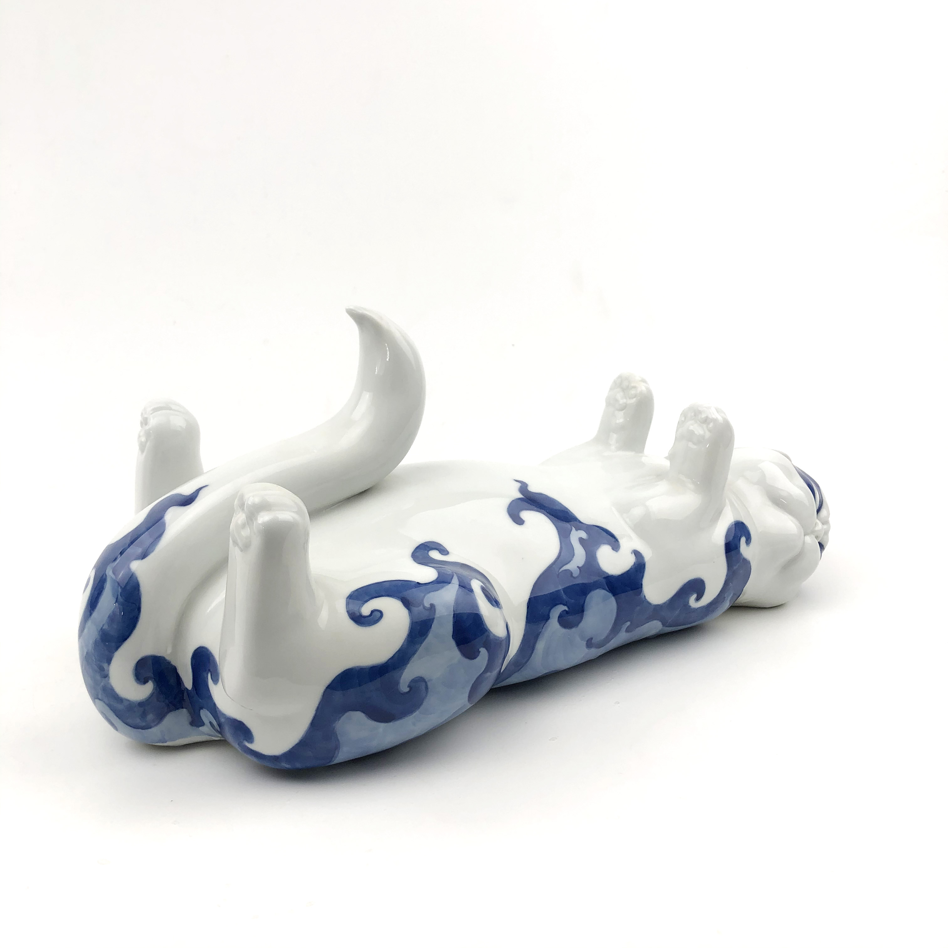 白瓷雕塑温柔如玉,这款陶瓷大白睡猫的表情和神韵,生动形象的表现出仰瘫在地这一动作,十分可爱。