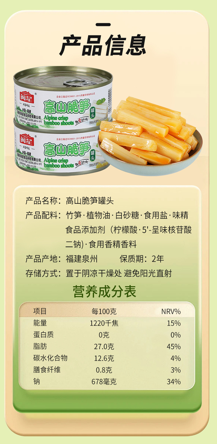 【鲜嫩脆爽!高山脆笋罐头】甄选优质原料,脆爽口感,鲜香多汁,根根入味笋香浓郁,开罐即食零食小包装L