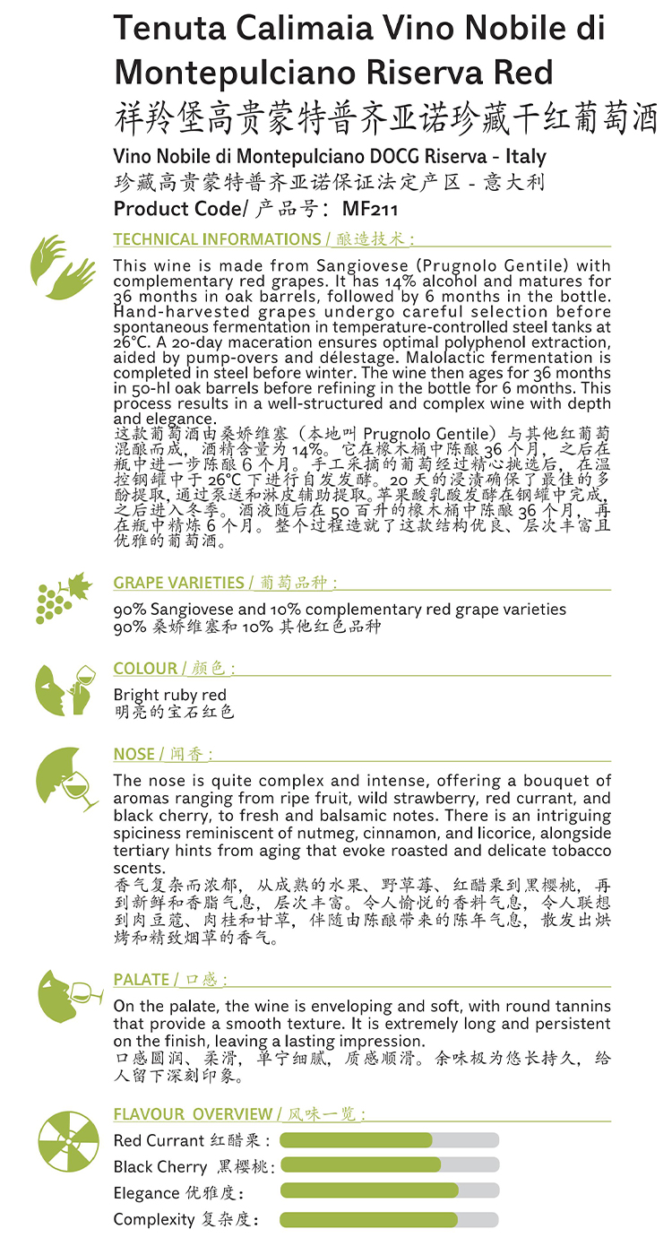 Tenuta Calimaia Vino Nobile di Montepulciano Red/ Riserva Red 祥羚堡高贵蒙特普齐亚诺干红/珍藏干红葡萄酒