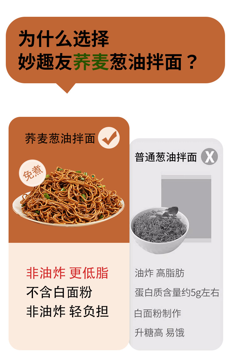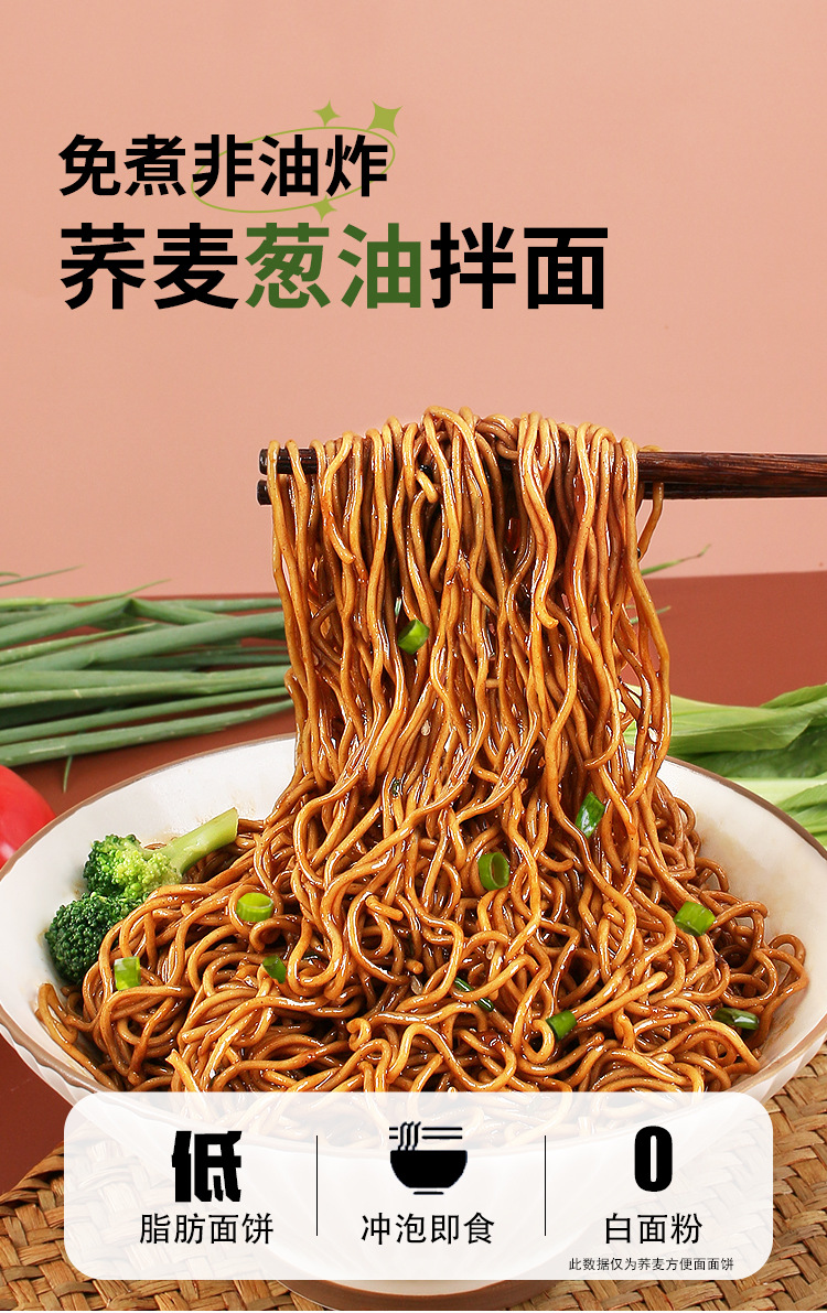 【代餐非油炸!荞麦葱油拌面】免煮泡面车载常备。荞麦香,葱油鲜,麻辣醇,在身,健康代餐任你尝。拌面好兄弟,120g桶免煮泡面方便面速食品代餐整箱健康