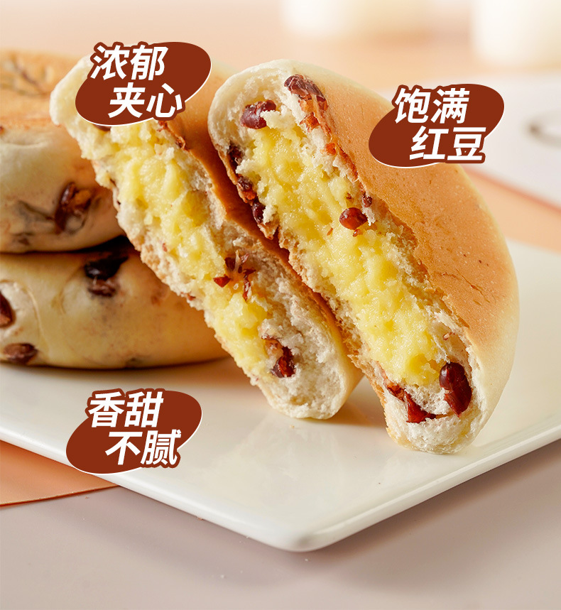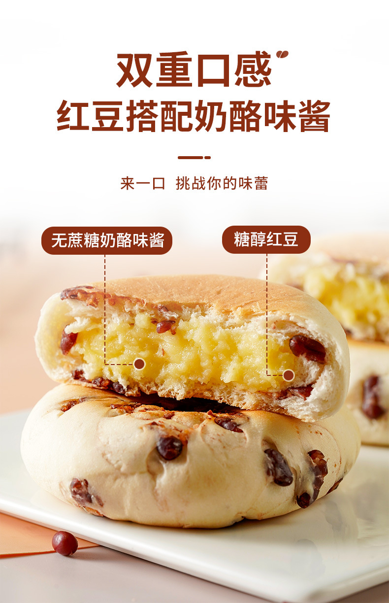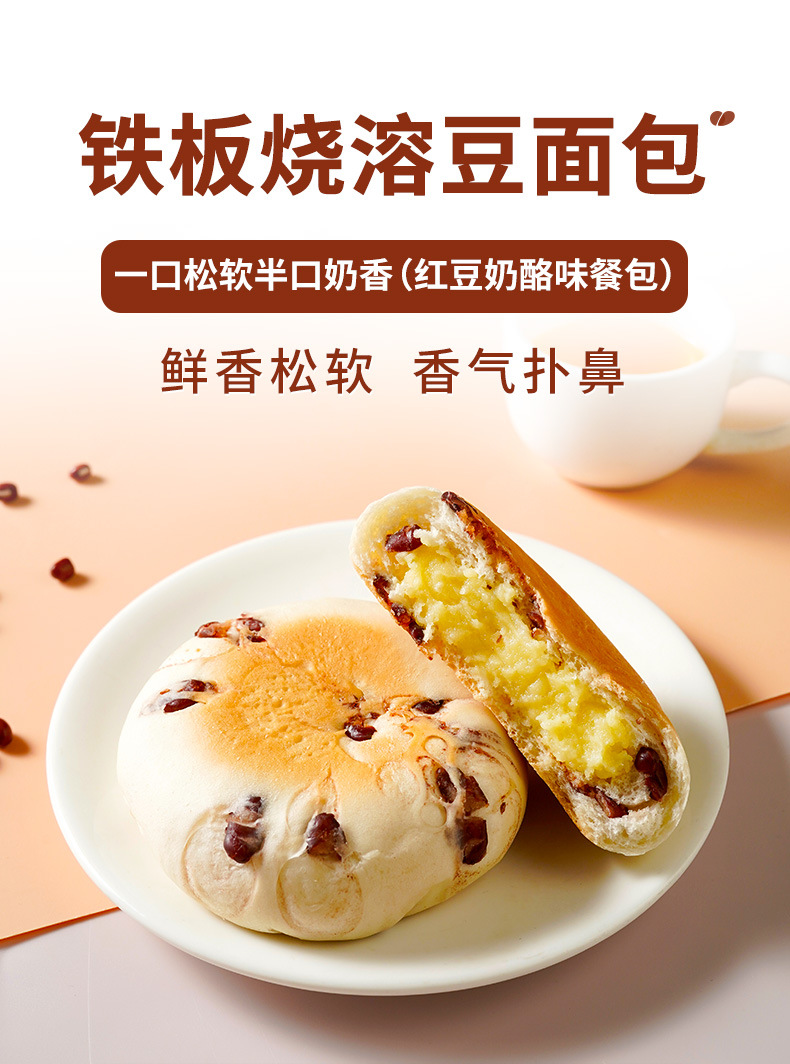 【一口松软!半口奶香】不单独添加蔗糖铁板烧溶豆红豆奶酪味面包夹心早餐包,鲜香松软 甜而不腻 入口即溶