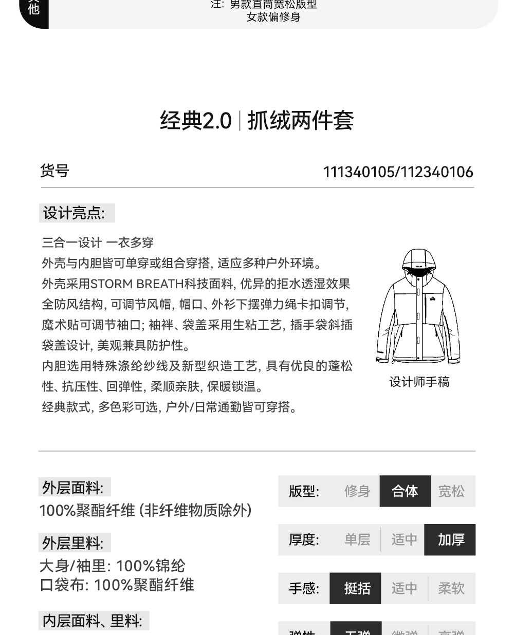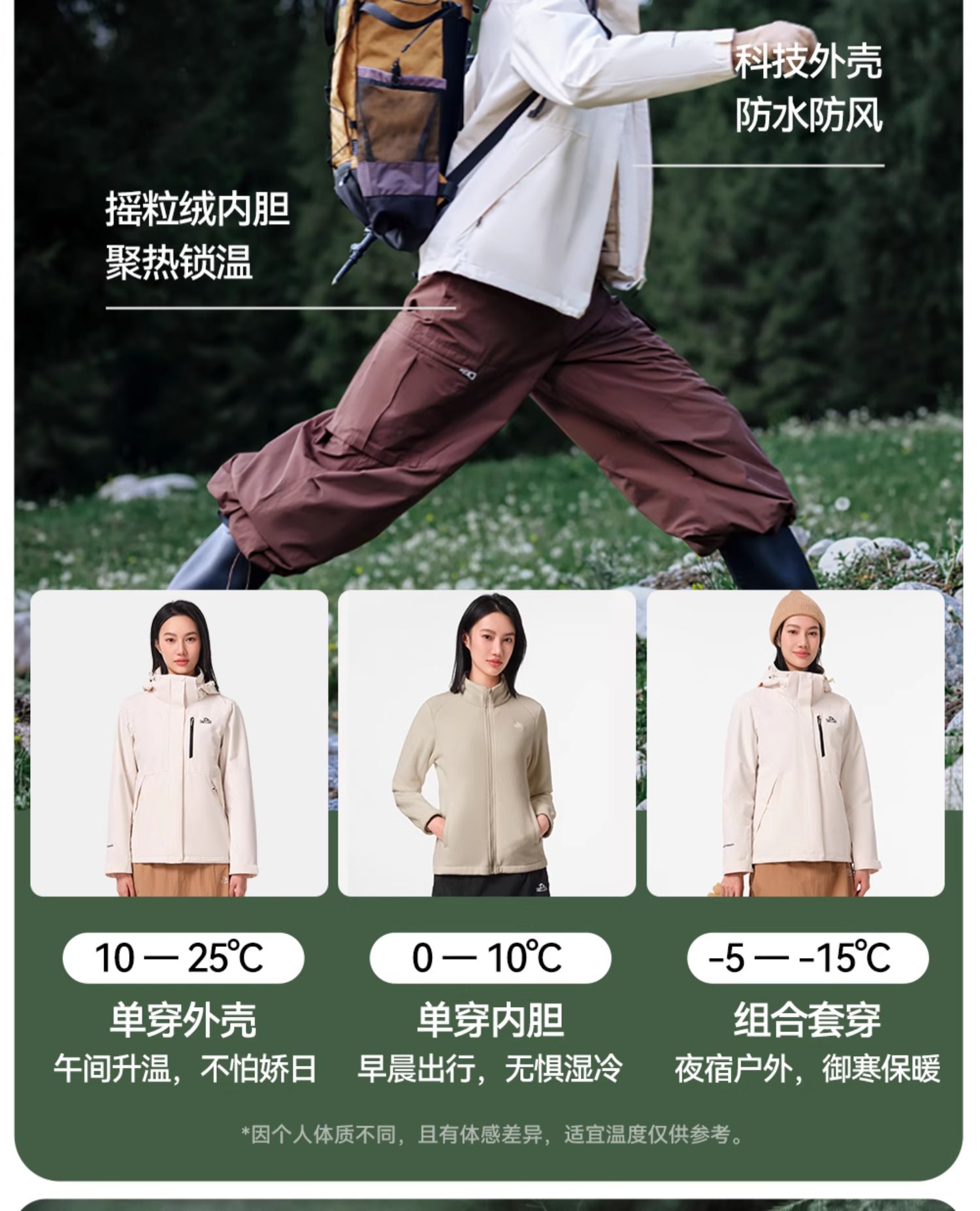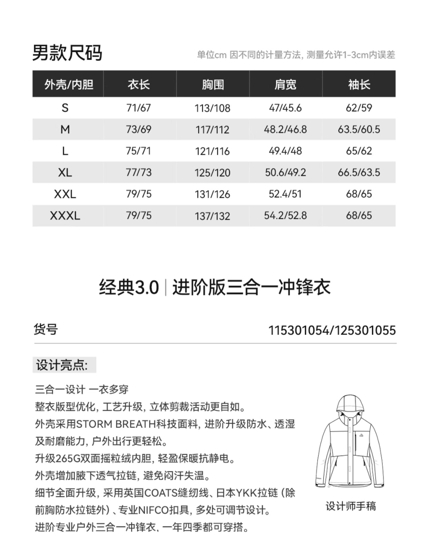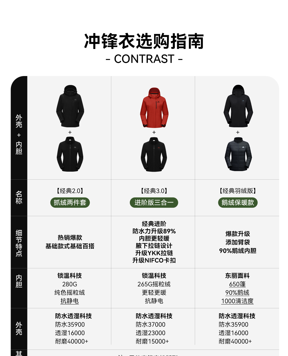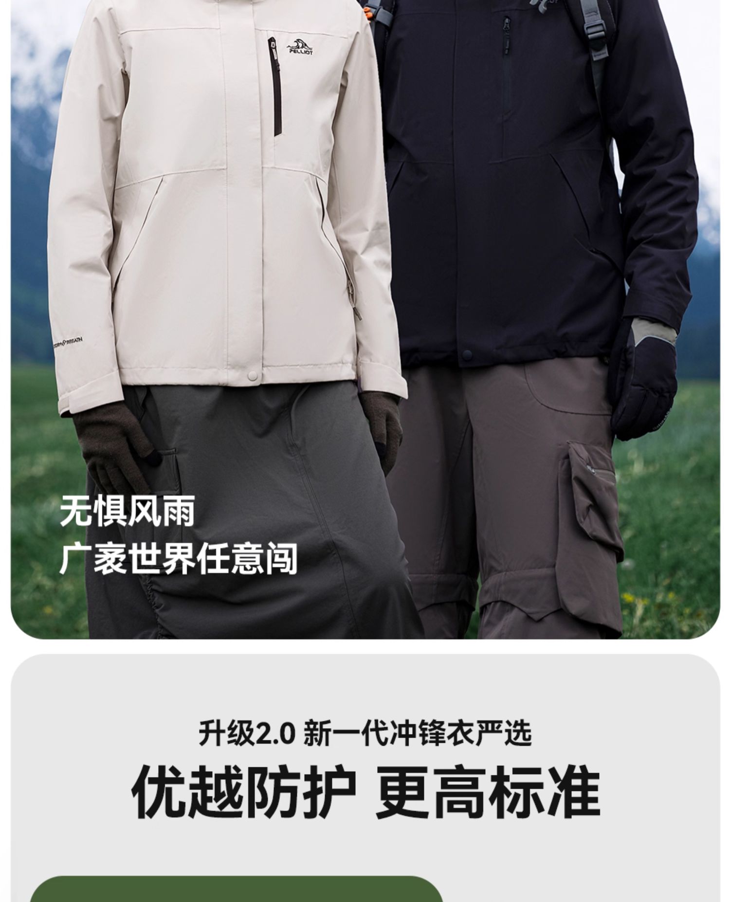 【成毅同款】伯希和经典2.0户外冲锋衣男新款防风三合一登山服女