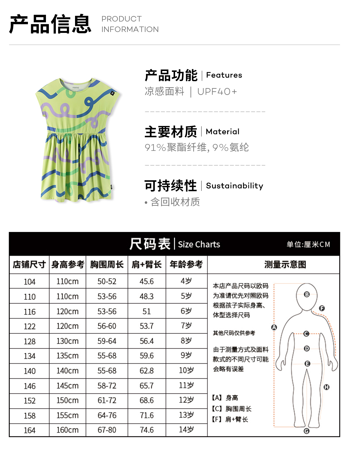 芬兰Reima2025春夏新款男女儿童中童防晒儿童针织短袖连衣裙