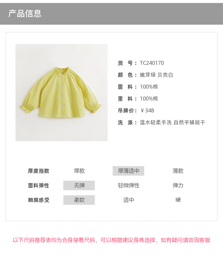 【马克珍妮 芦芙】女童提花圆点花边立领衬衫纯棉衬衣春款240170