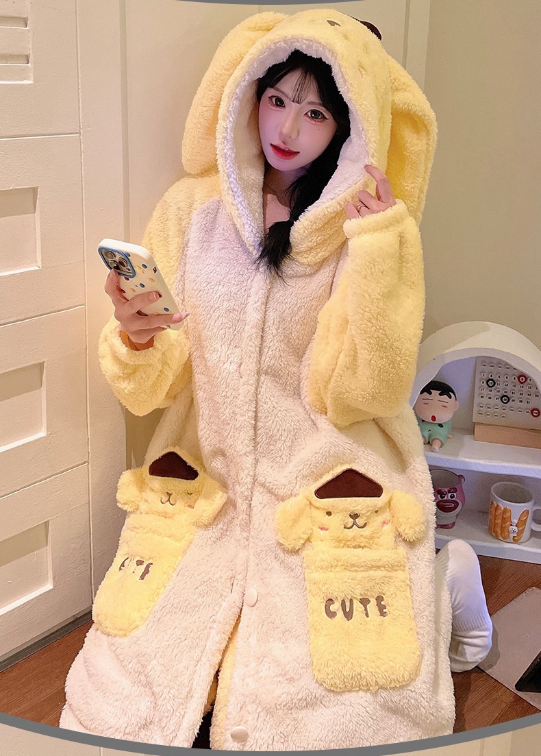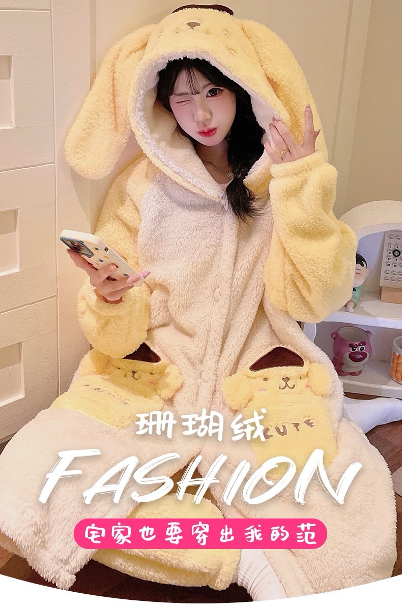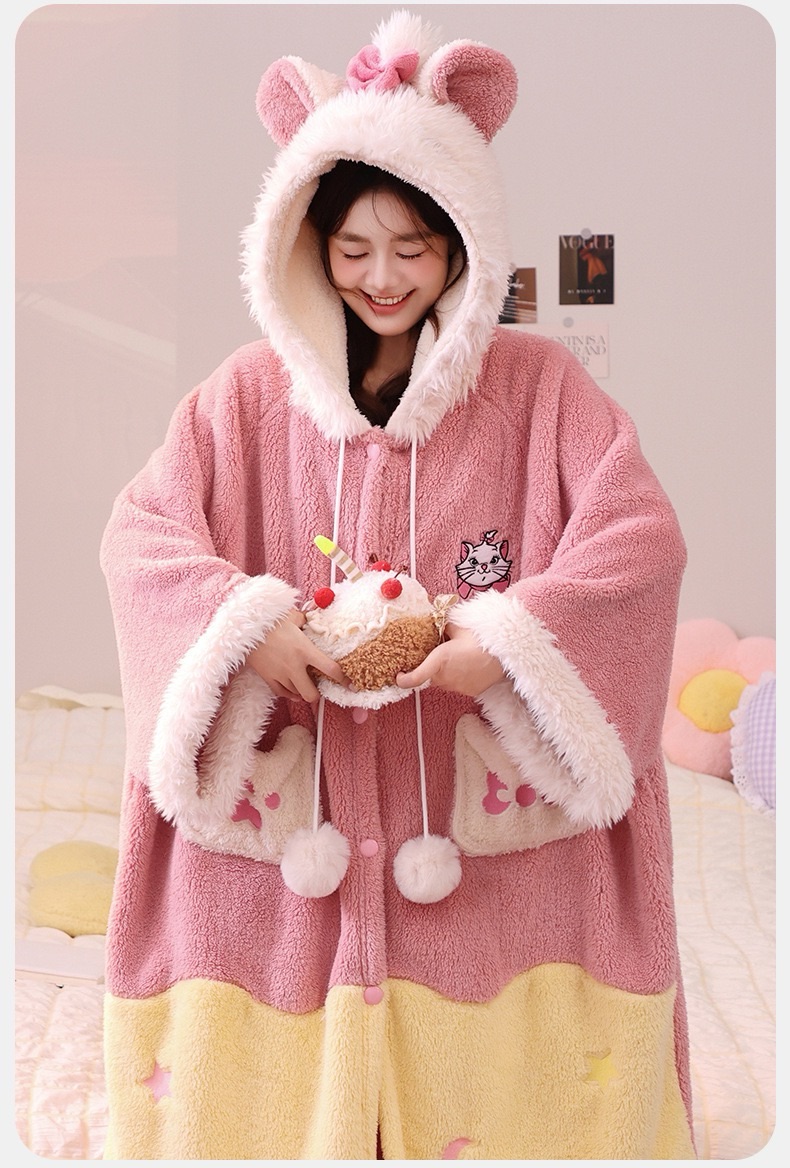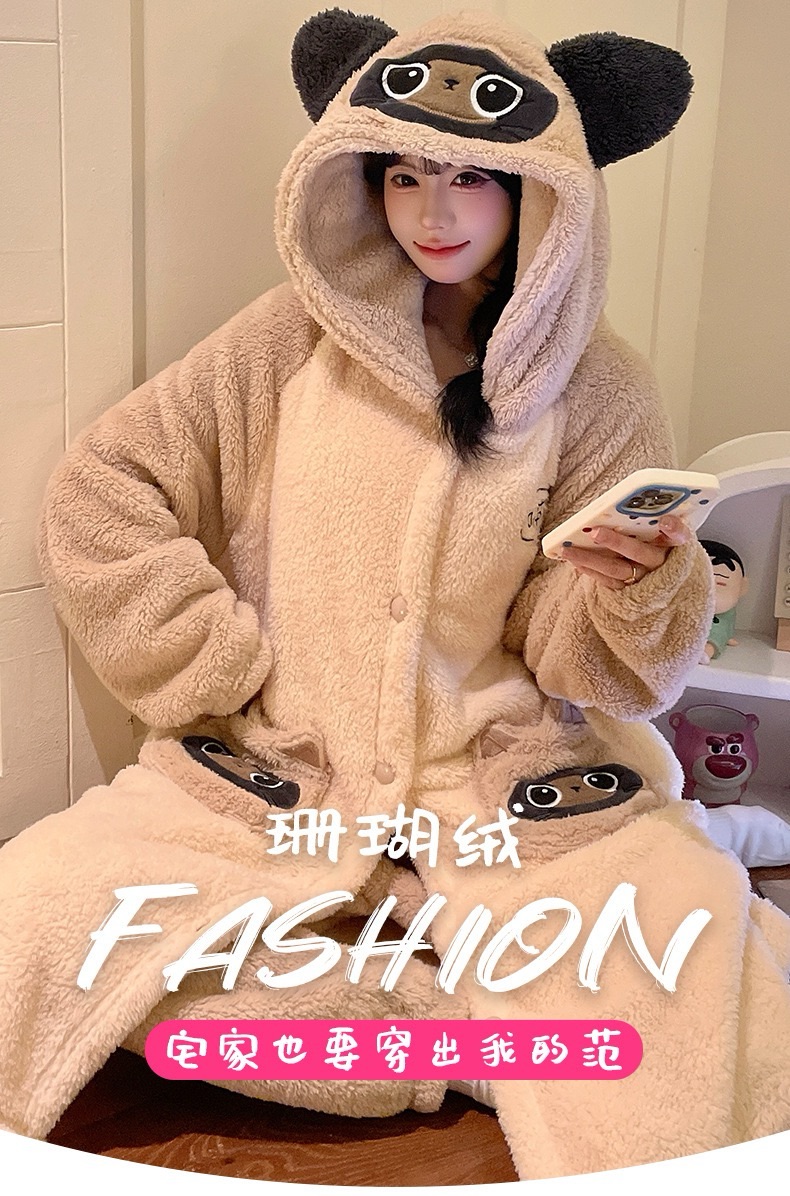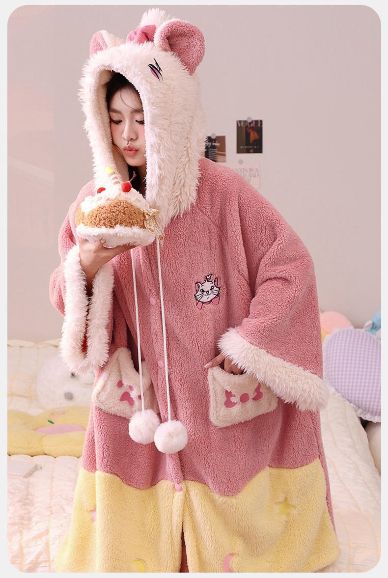 卡通珊瑚绒加绒加厚长款连帽睡衣睡袍套装167949331