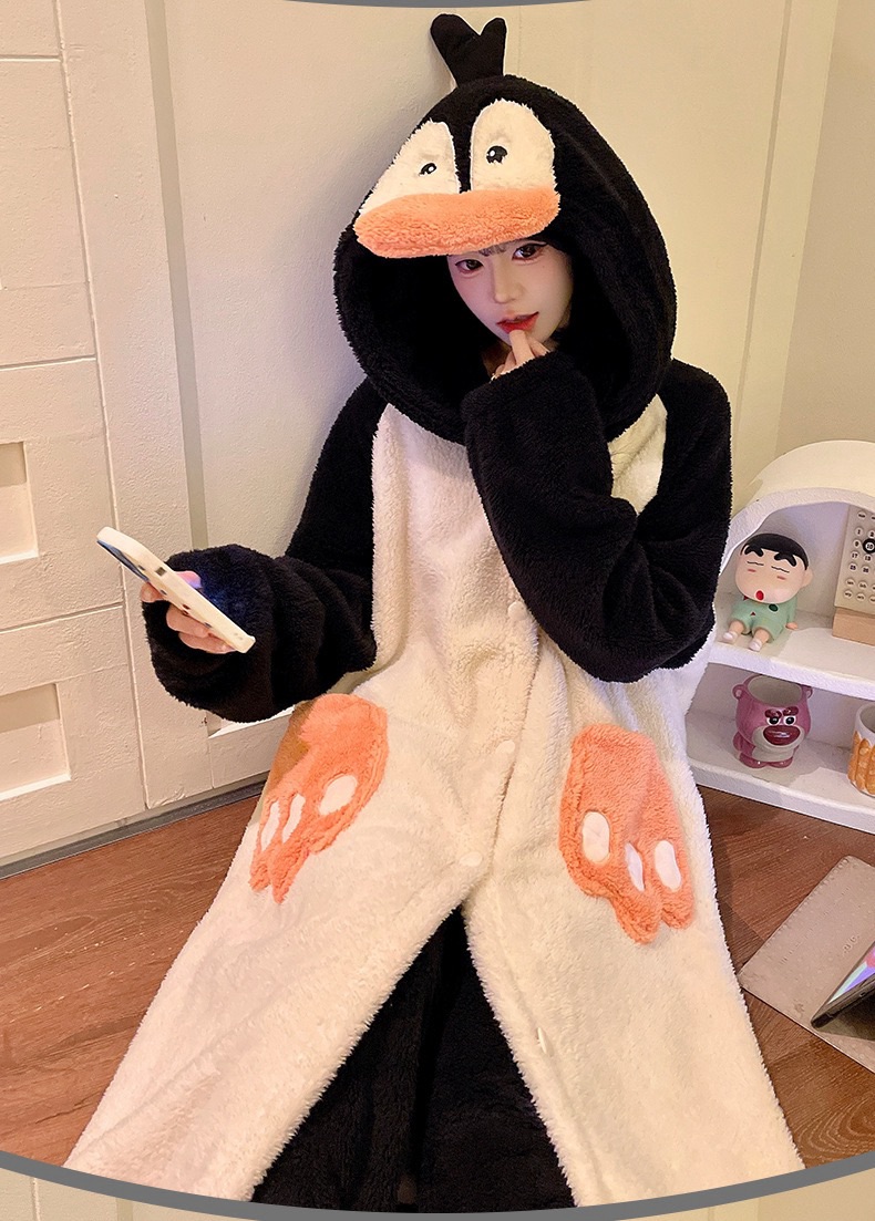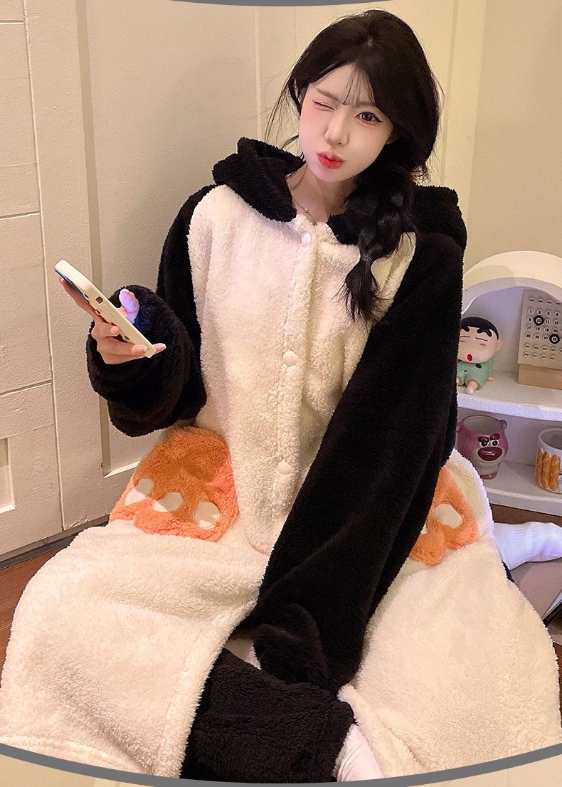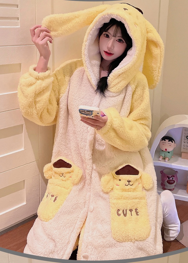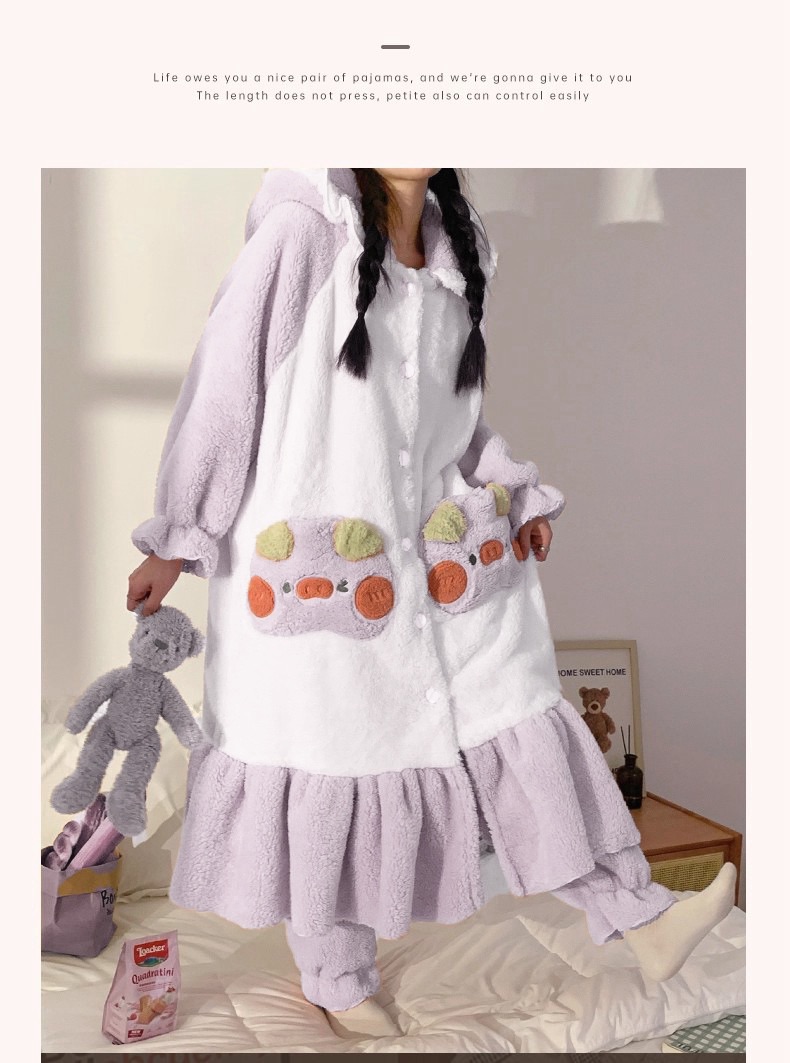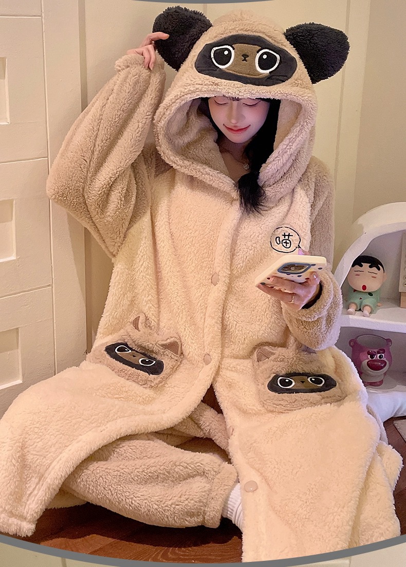卡通珊瑚绒加绒加厚长款连帽睡衣睡袍套装167949331