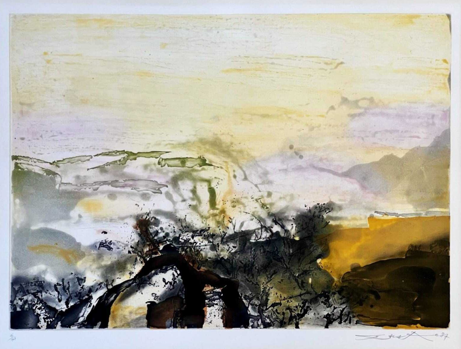 1987年法国巴黎Lacourière & Frélaut出版赵无极亲签限量彩色凹版蚀刻版画「无题」