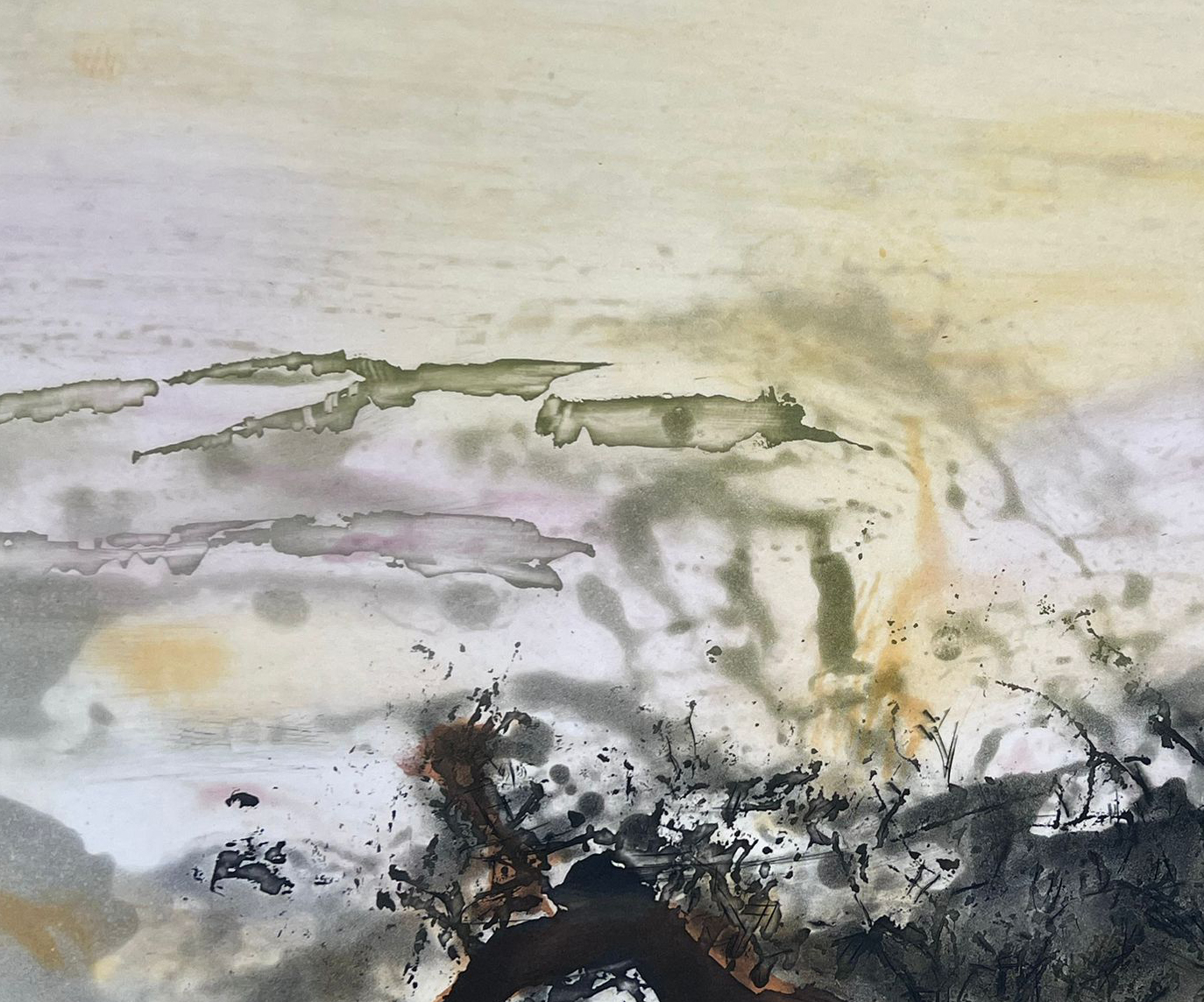 独角鹿西洋古董1987年法国巴黎Lacourière & Frélaut出版赵无极亲签限量彩色凹版蚀刻版画「无题」