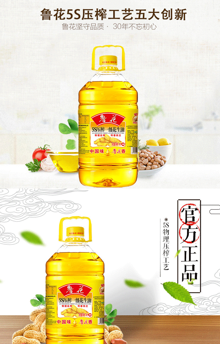 鲁花5S压榨一级花生油 5L桶装食用油调味品