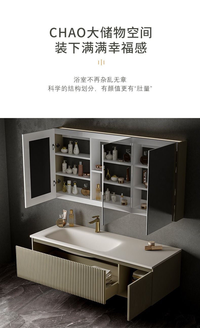 卫生间盆轻奢感橡木浴室柜洗手台盆洗脸盆一体洗漱可丽耐肤组合台