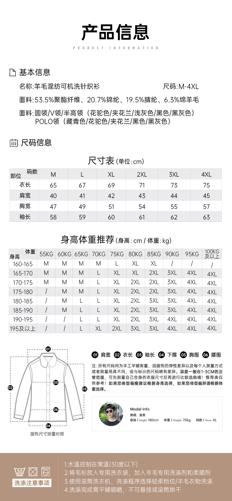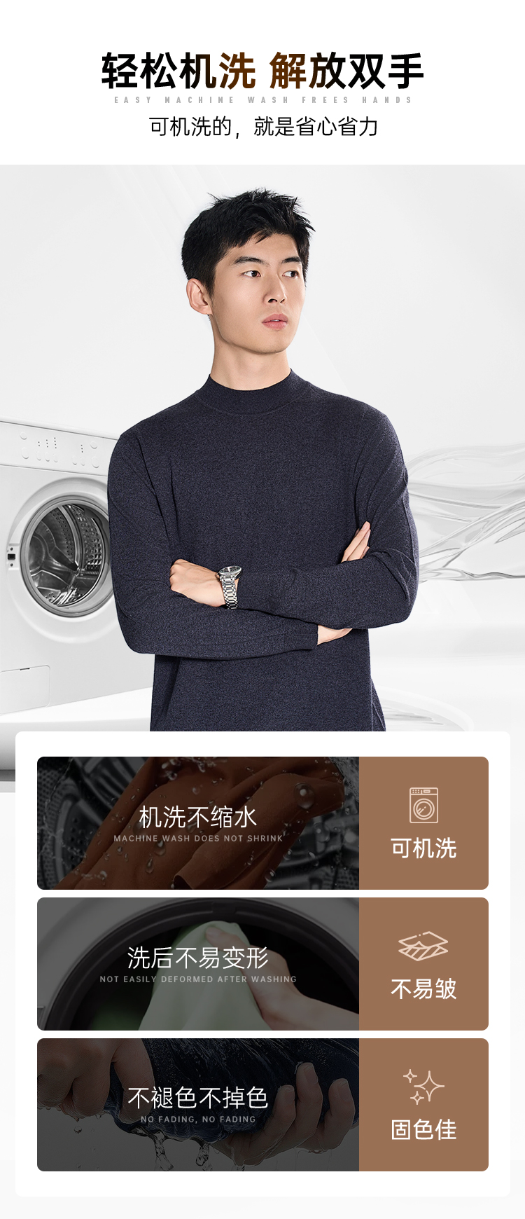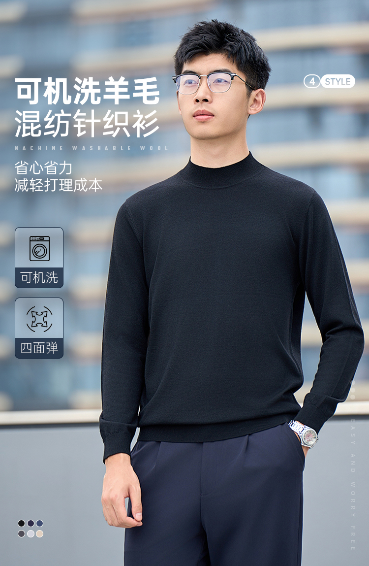 【可机洗羊毛混纺针织衫】休闲保暖四面弹毛衫商务通勤长袖打底衫M401
