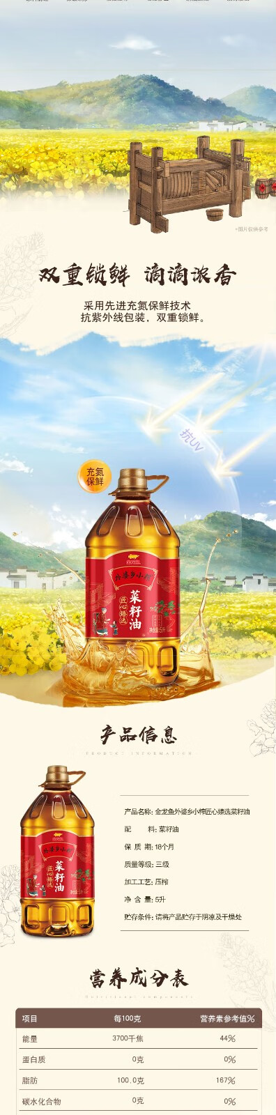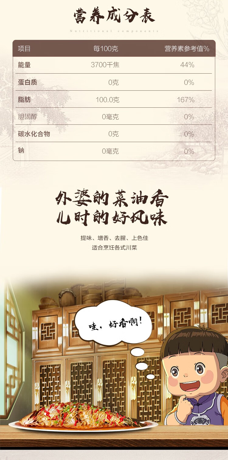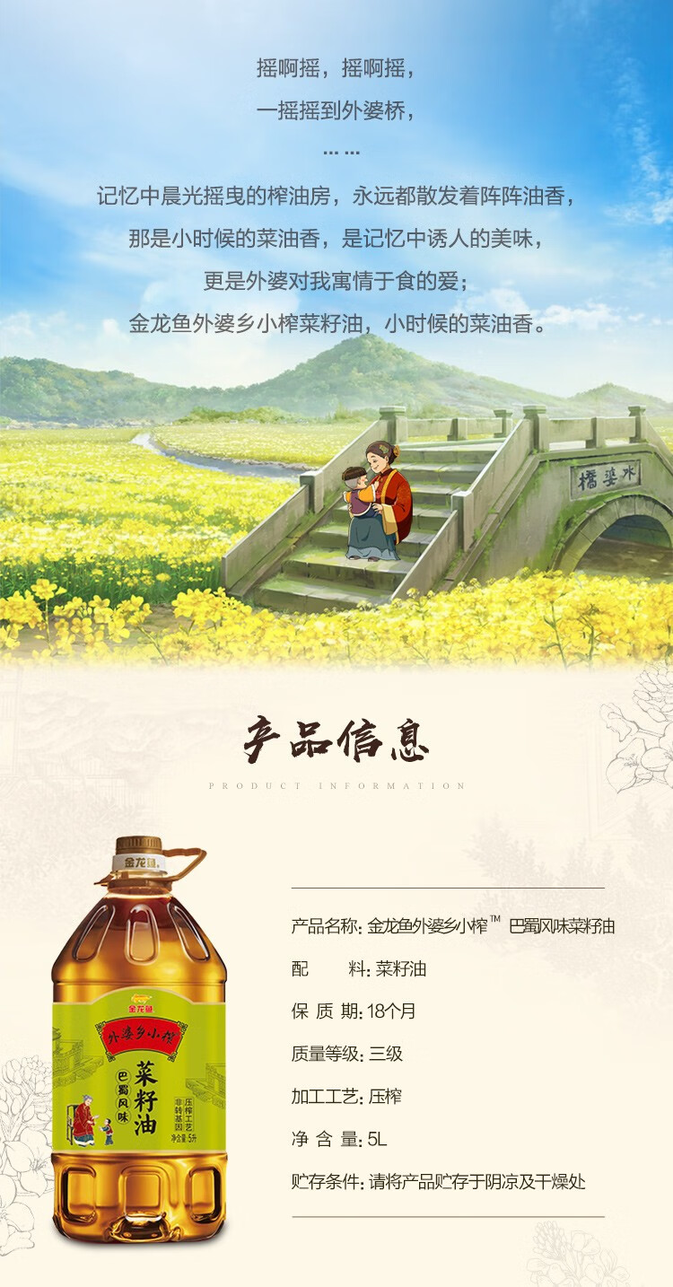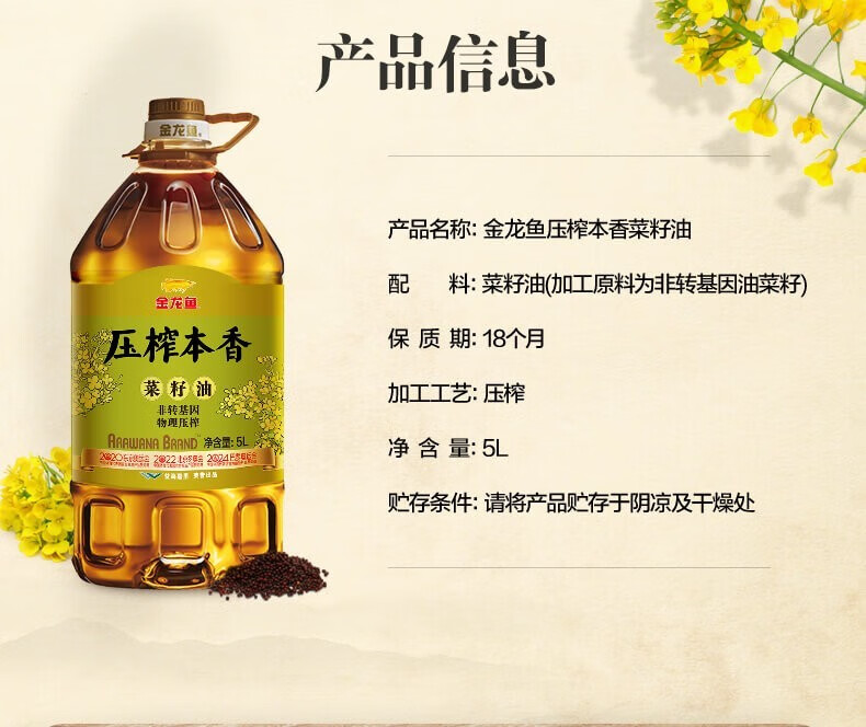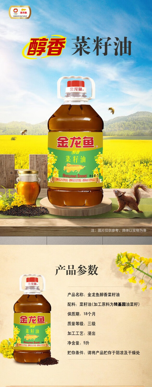 金龙鱼食用油 菜籽油 压榨本香菜籽油1.5L