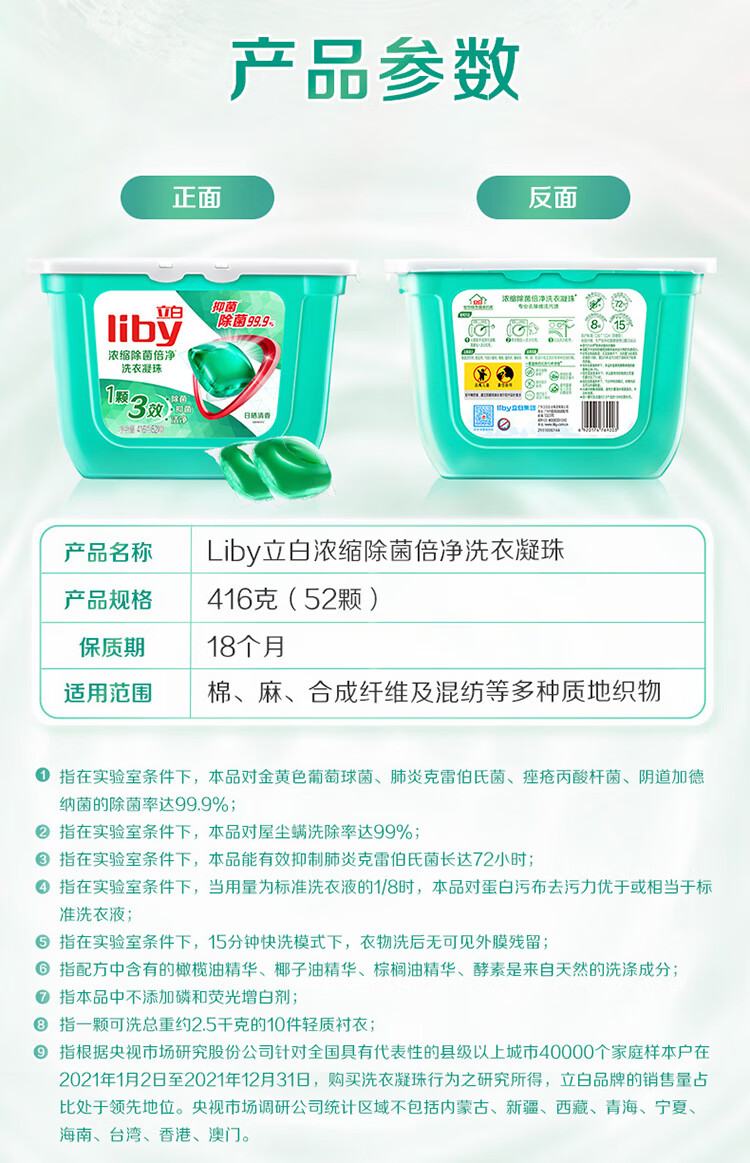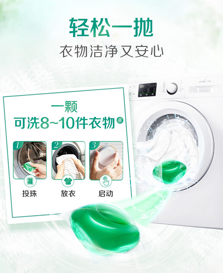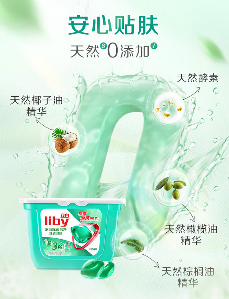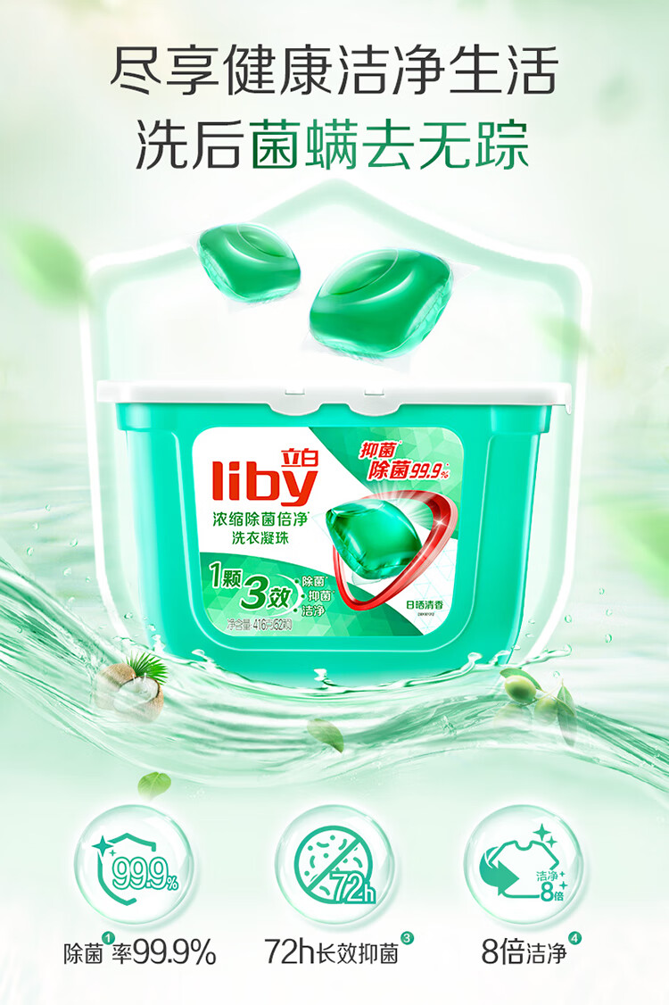 立白洗衣凝珠三合一52颗 除菌除螨抑菌洁净 浓缩洗衣液 洗衣珠 洗衣球 留香珠 快洗无残留