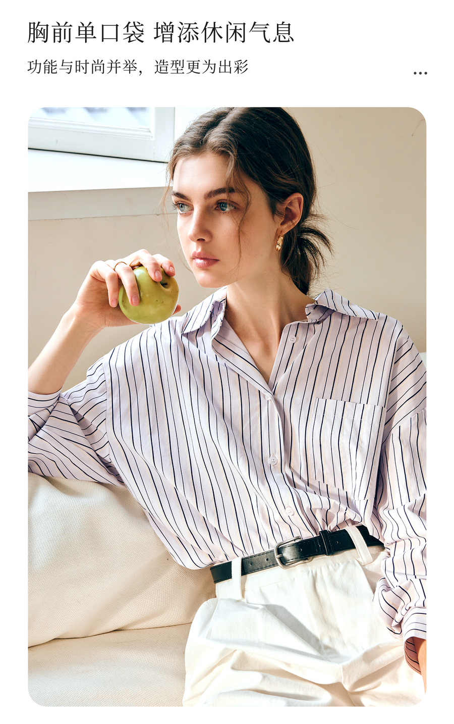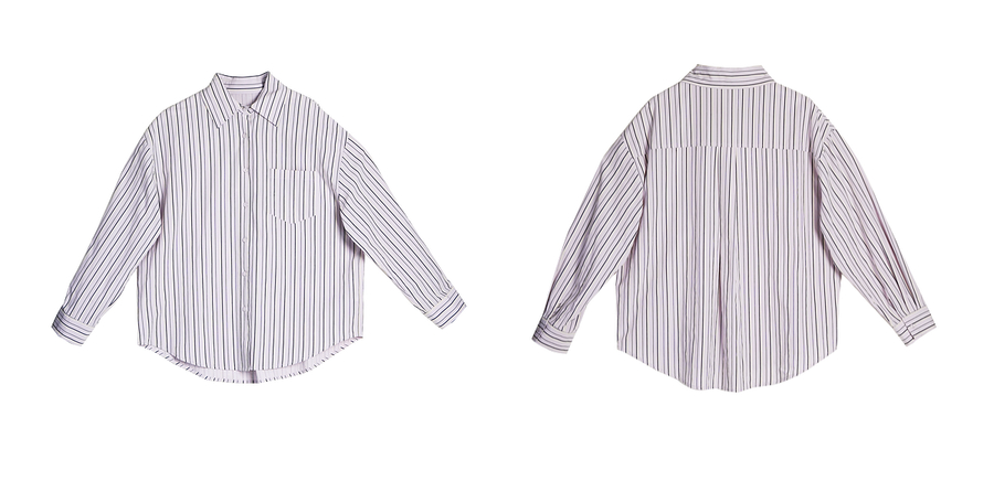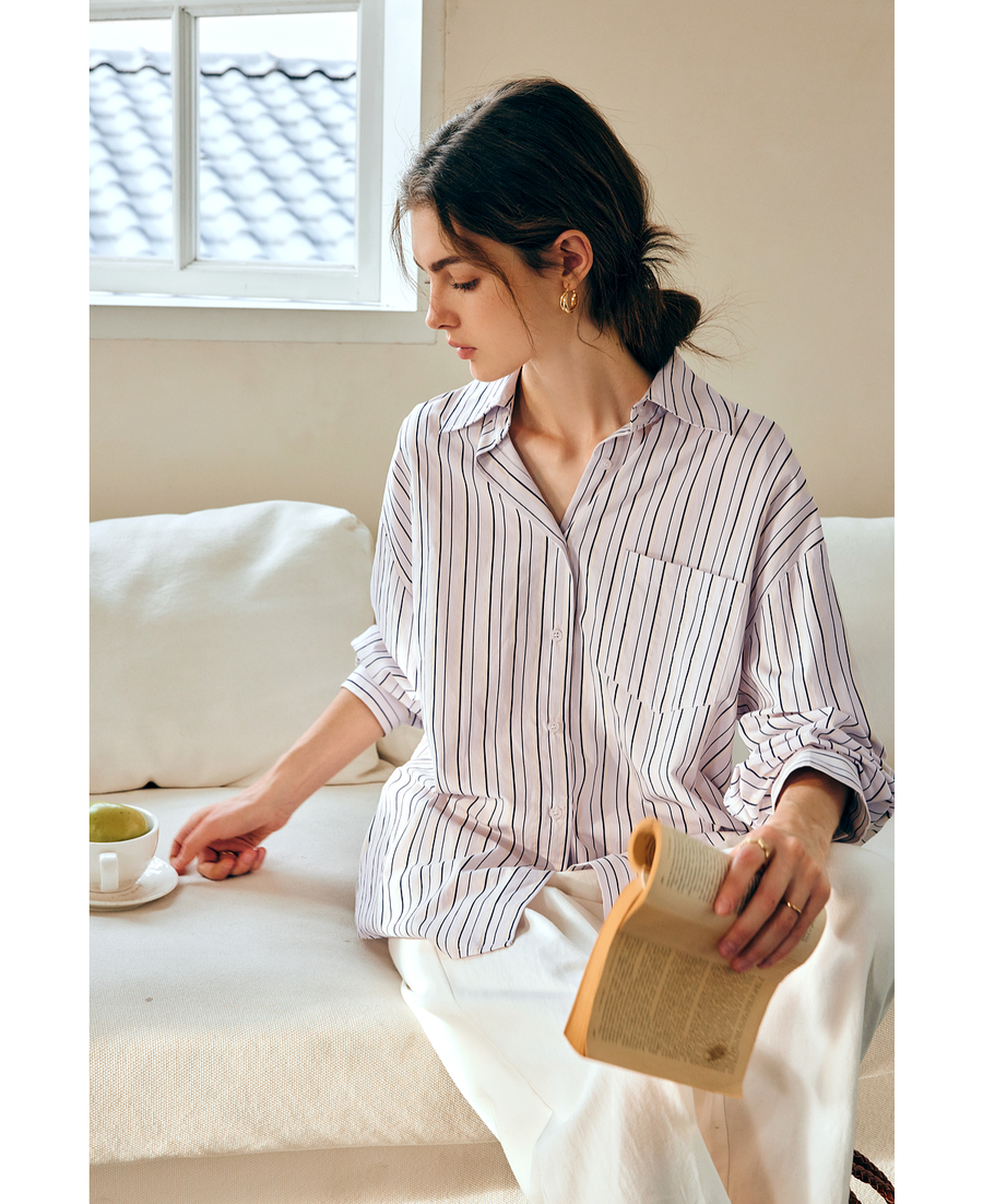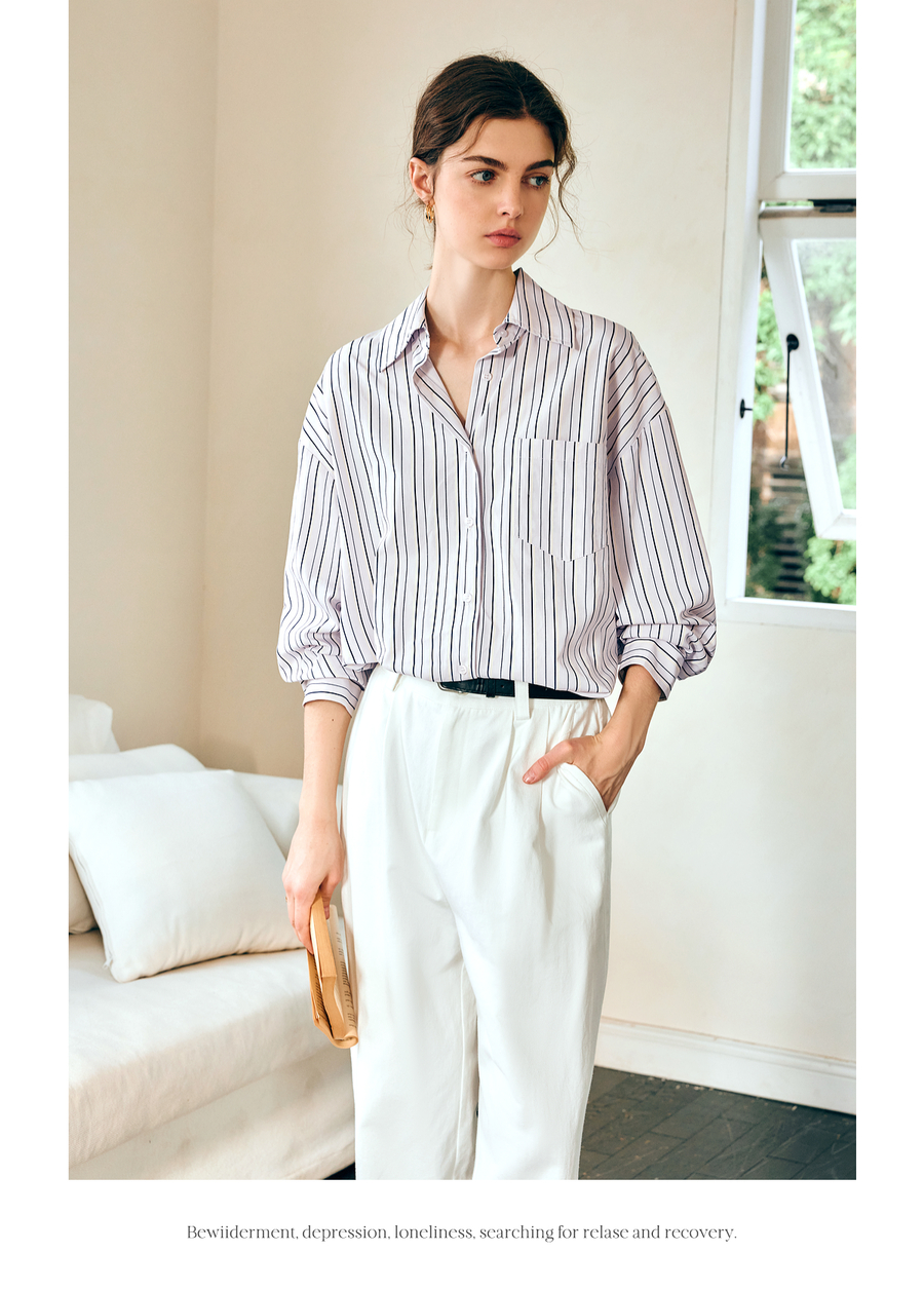OLrain欧芮儿条纹长袖衬衫女春季2025年新款通勤百搭别致翻领衬衣