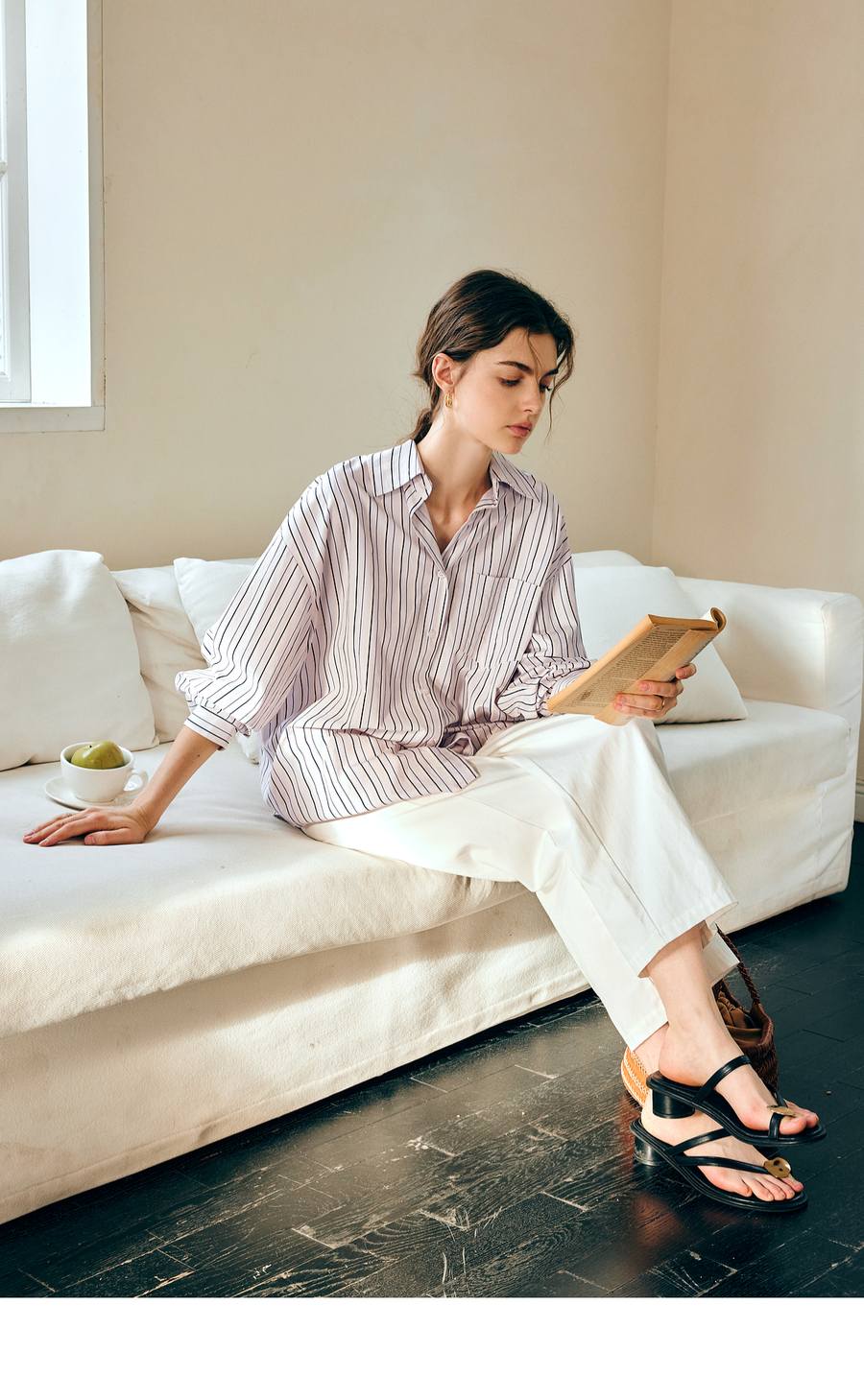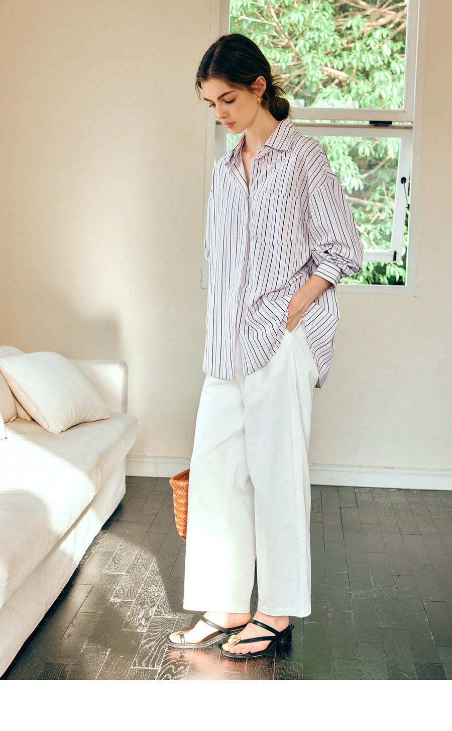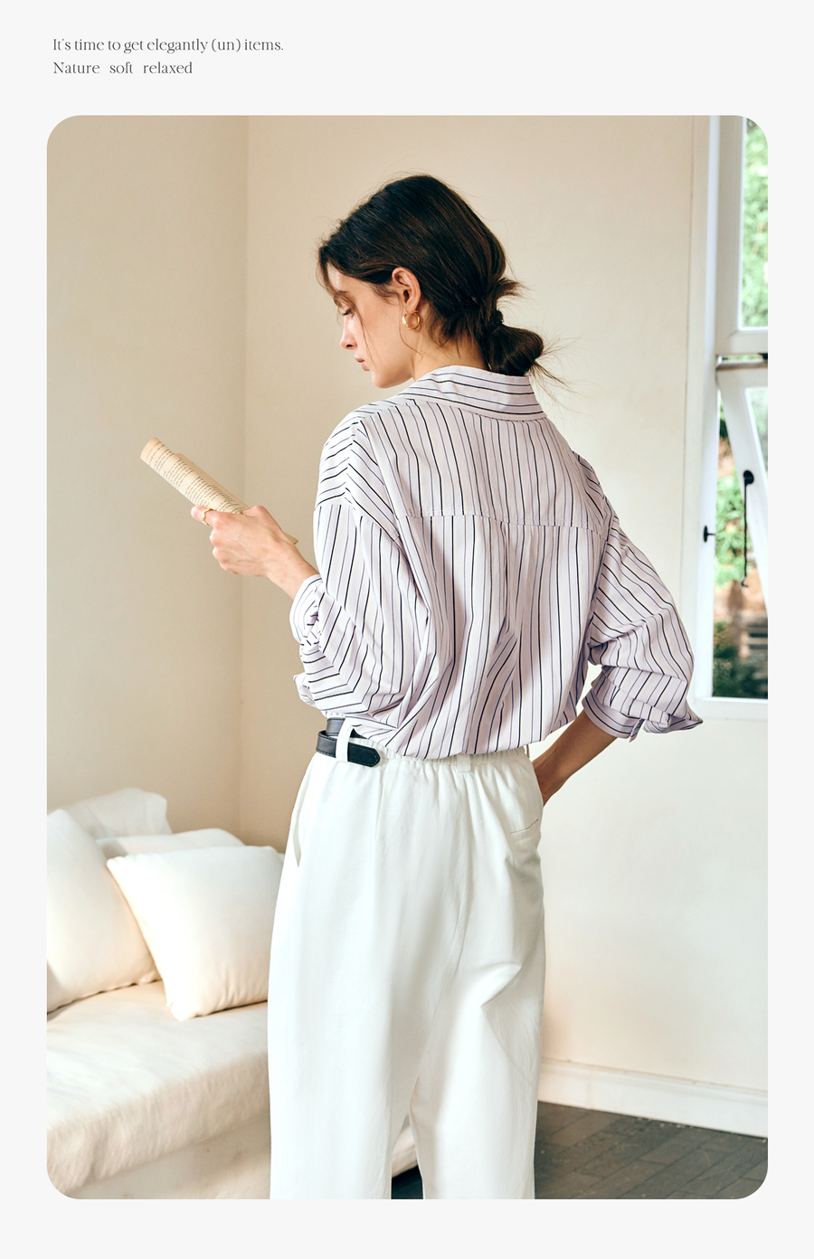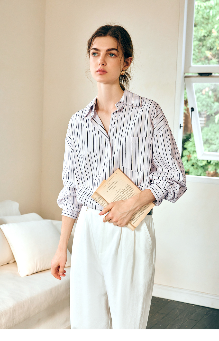OLrain欧芮儿条纹长袖衬衫女春季2025年新款通勤百搭别致翻领衬衣