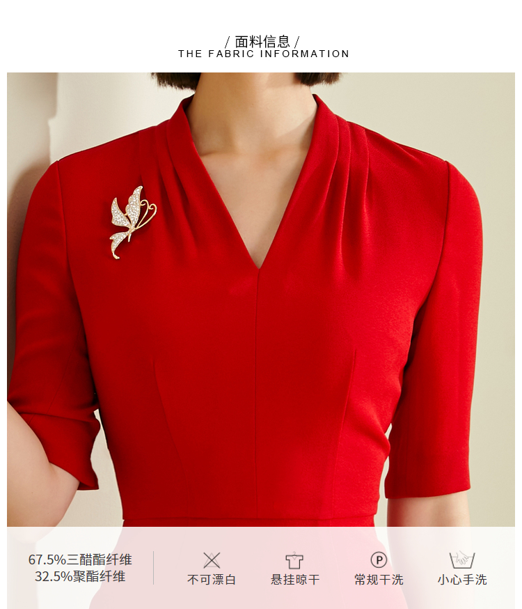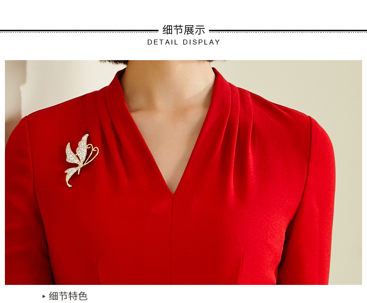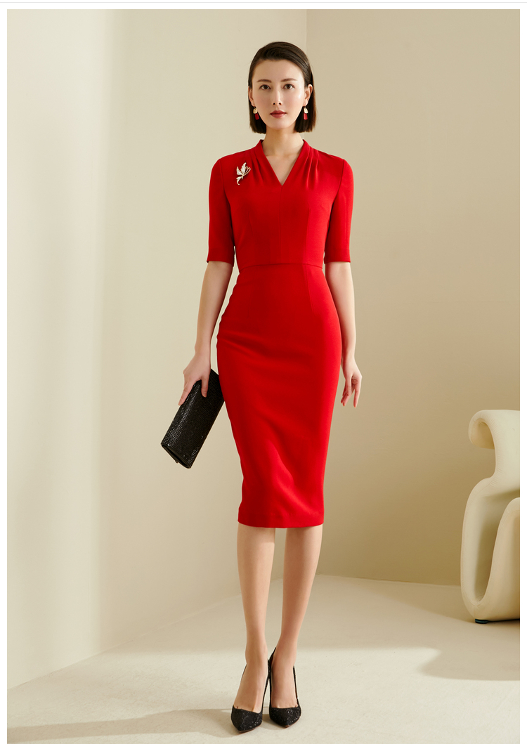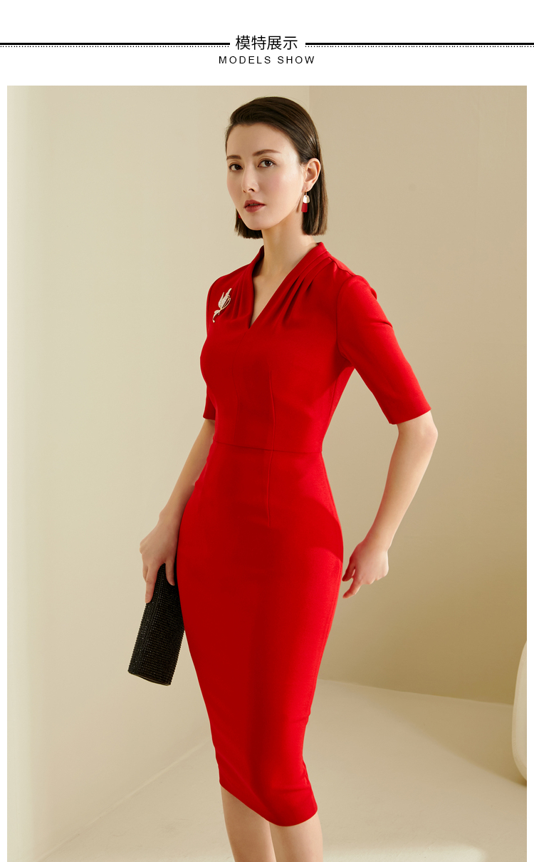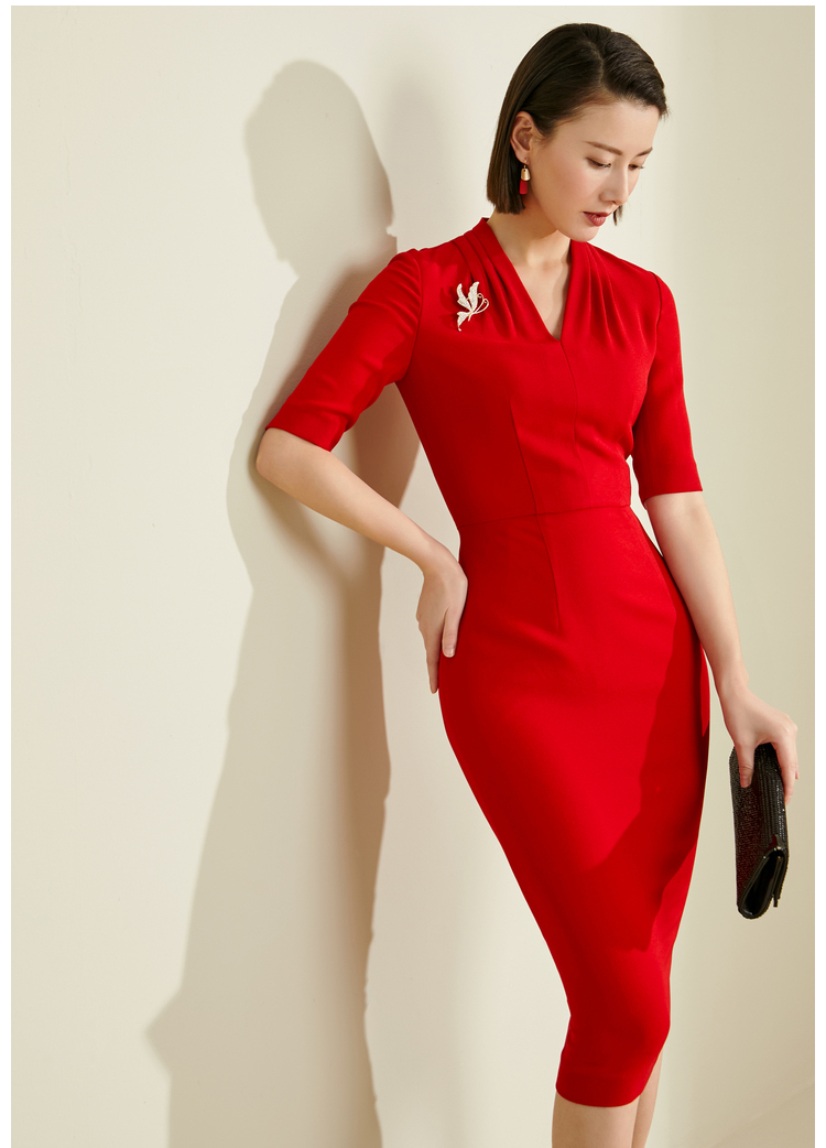 颈袖添香-连衣裙-“职场拼命红”系列 JG182255T1X5颈袖添香季修身气质包臀显瘦五分袖职场装V领OL连衣裙 修身气质包臀职场装V领OL连衣裙