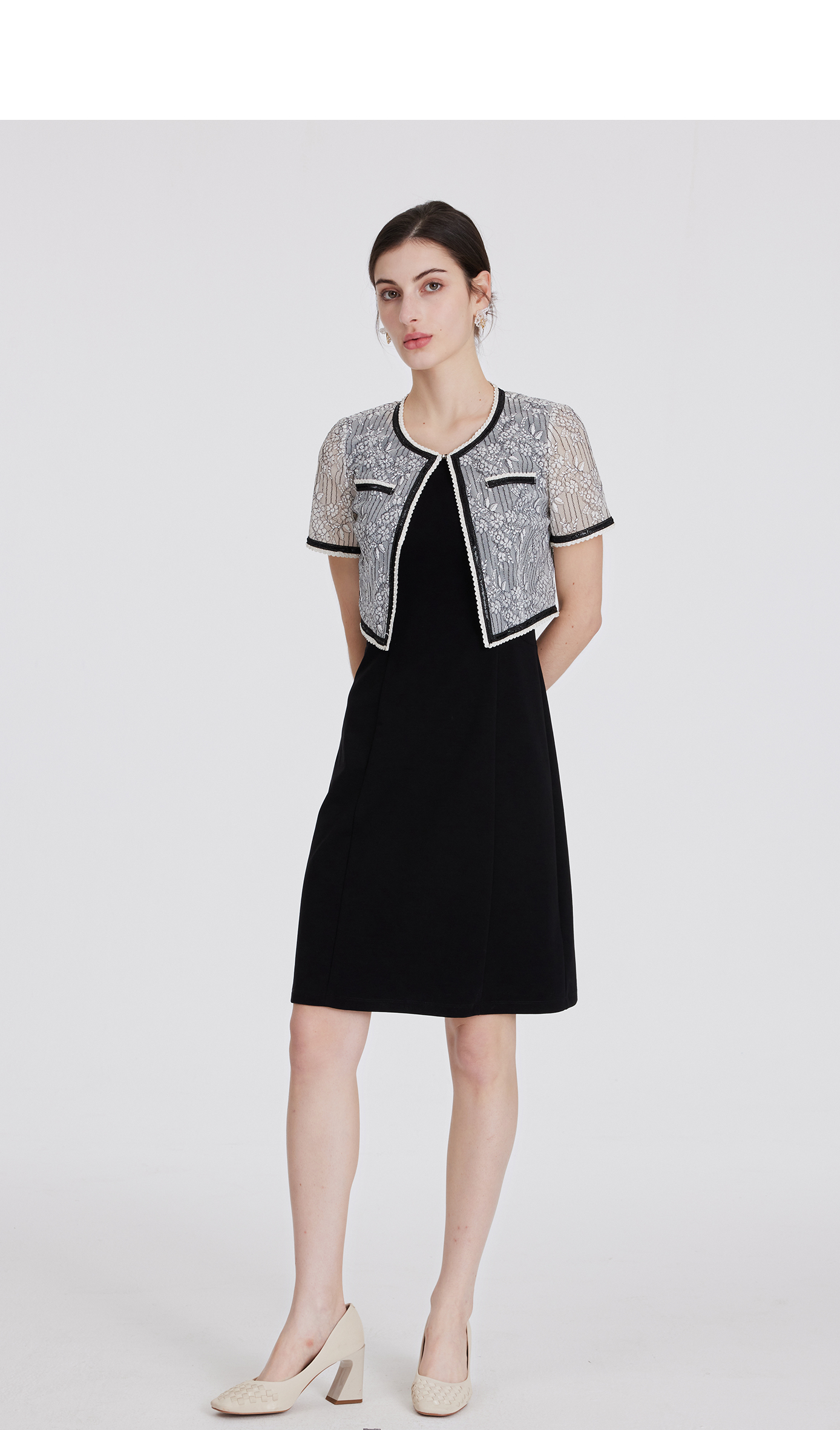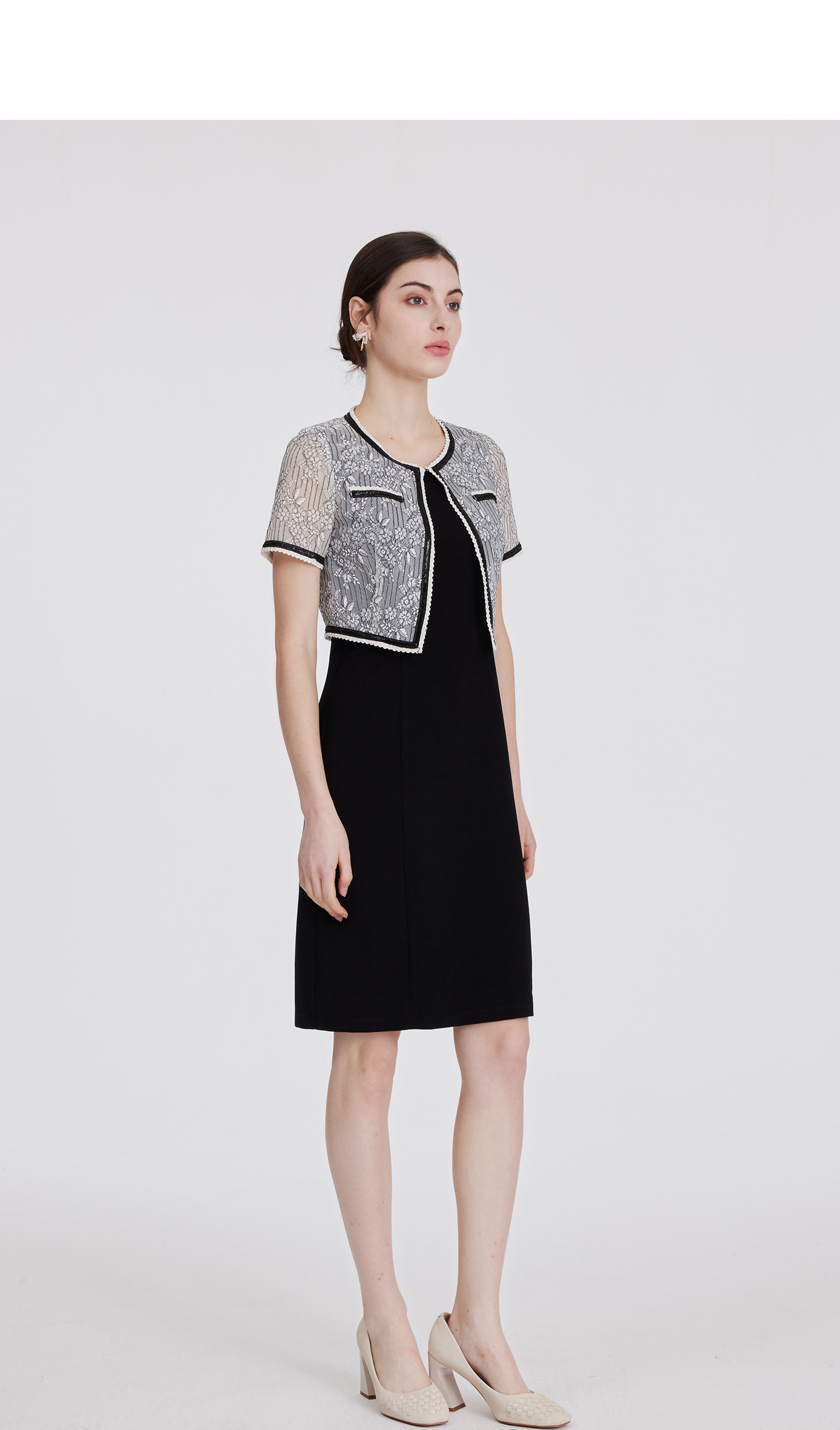 司歌蕾丝短袖外套短款百搭B891075y