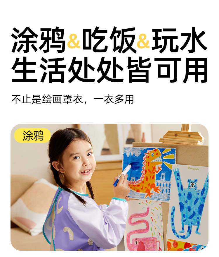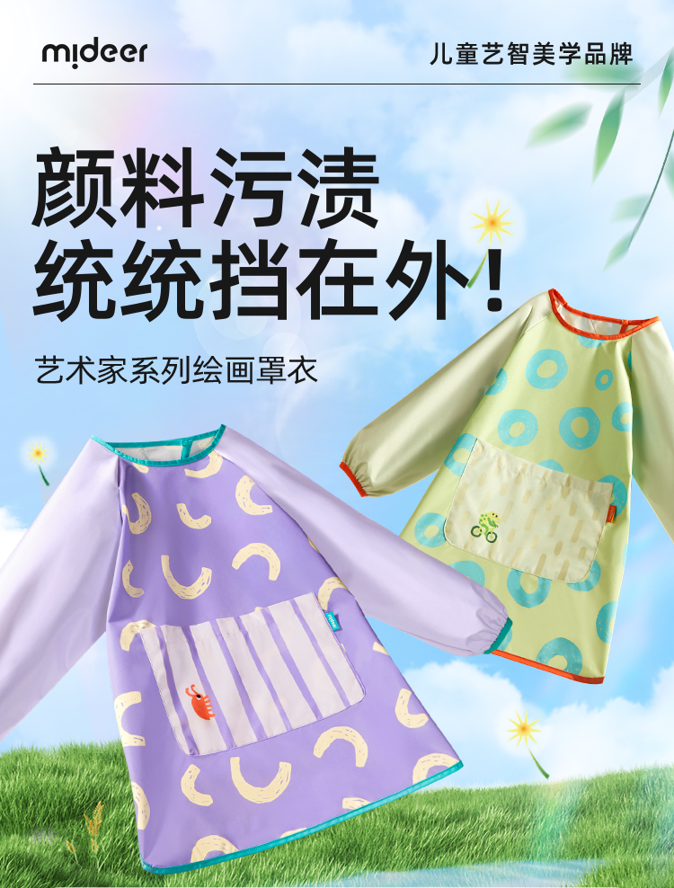 【丸丫专属】mideer弥鹿儿童画画防水画衣绘画防脏围裙宝宝罩衣长袖美术专用