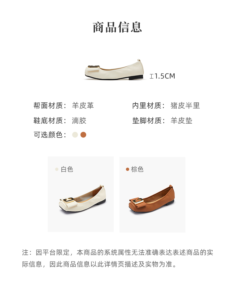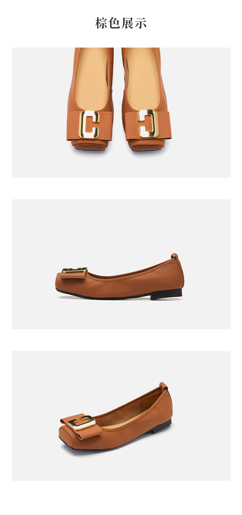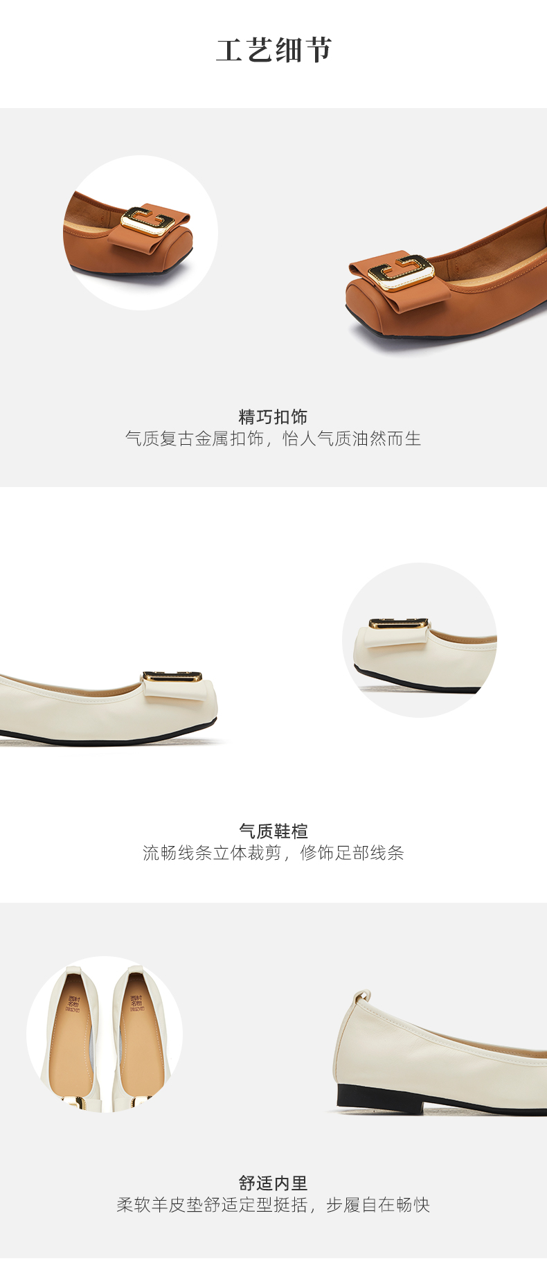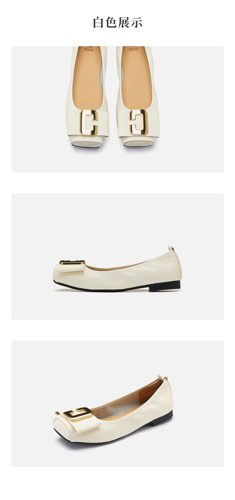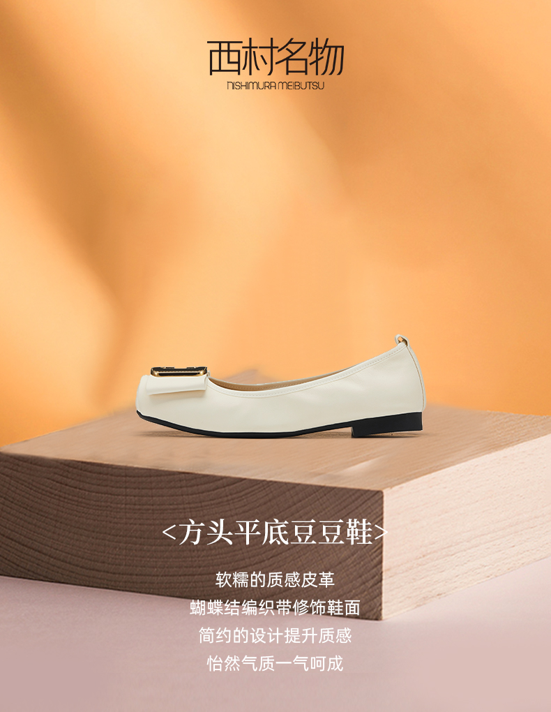西村名物2023春季新款C字扣云朵软底羊皮方头单鞋平底奶奶鞋X23AE13281