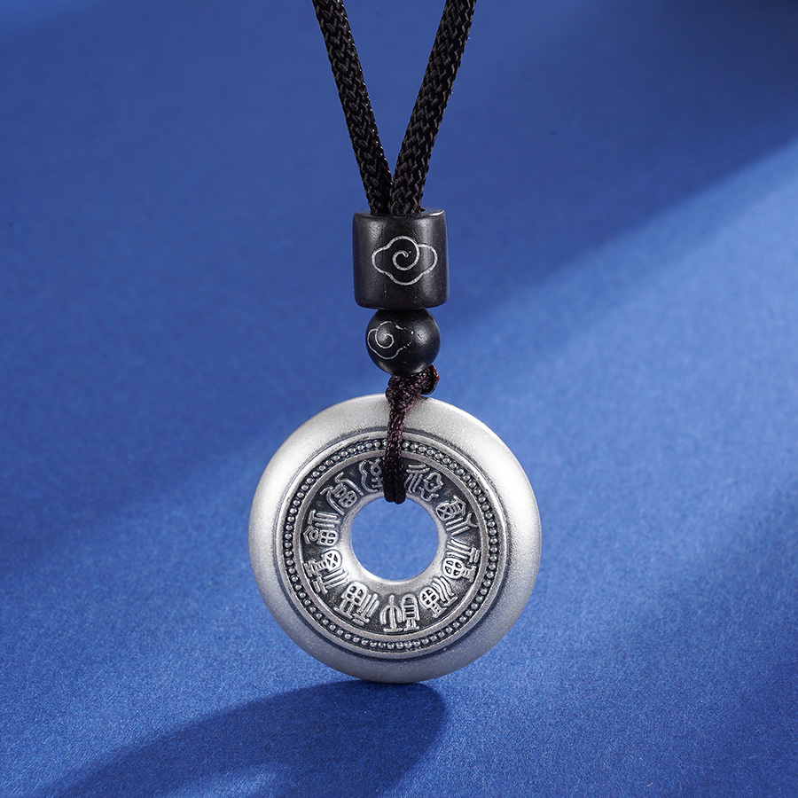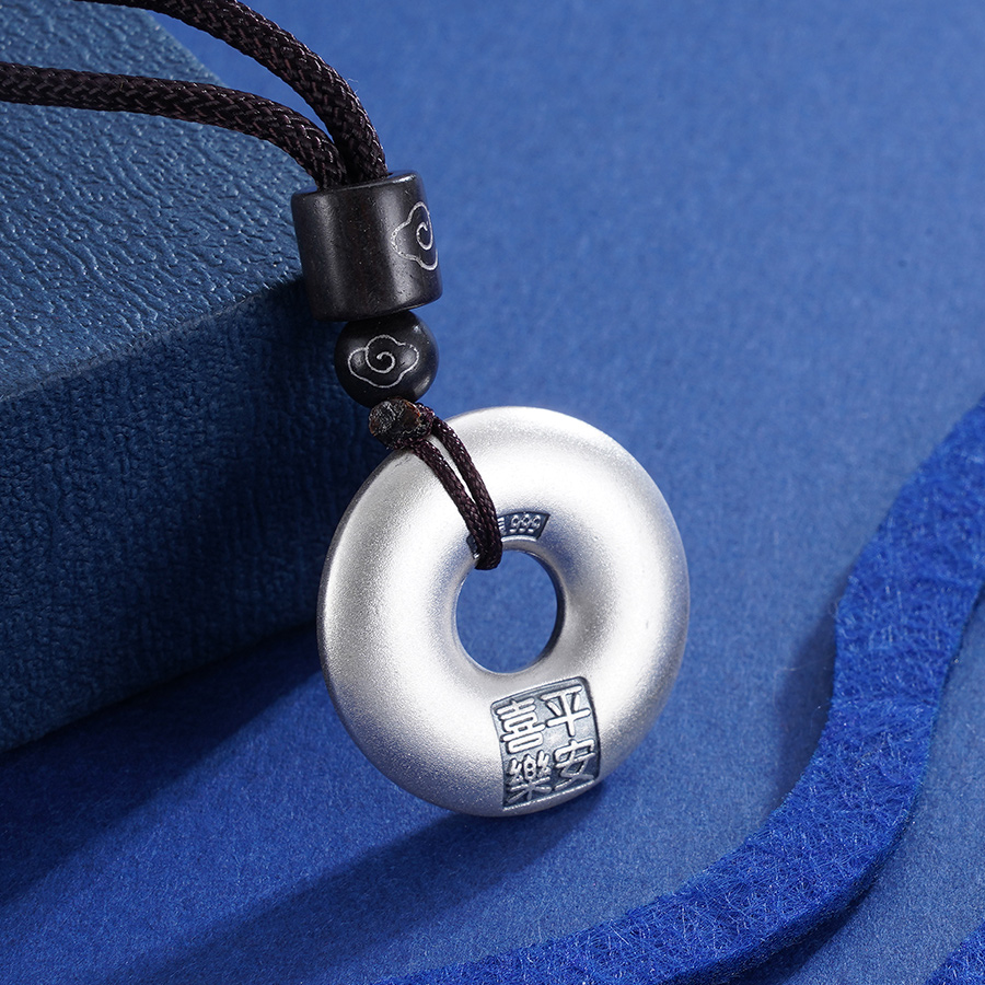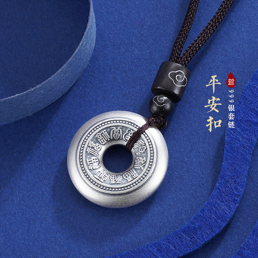 【寓意】:套链以平安扣为灵感设计,纯银打造经典圆扣,表面錾刻百福纹样。寓意福气连绵,平安相伴。