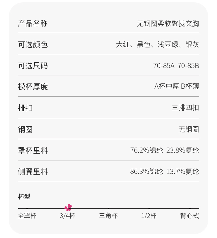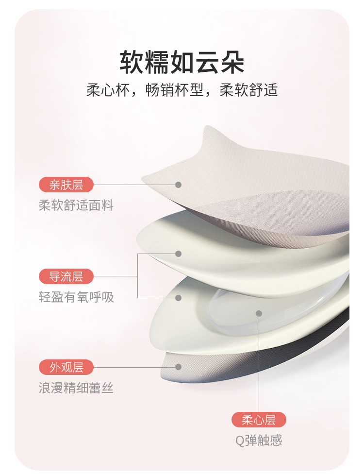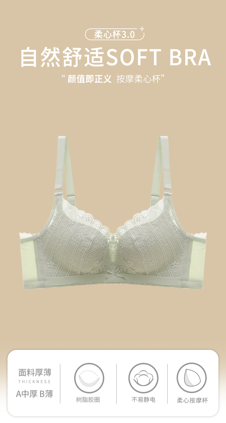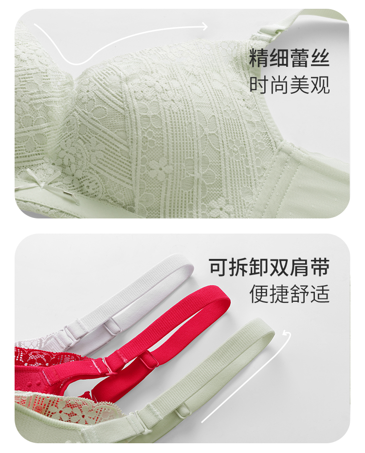 都市丽人内衣自然舒适A:中厚B:薄蕾丝三排扣树脂胶圈3/4杯常规文胸LB21A5