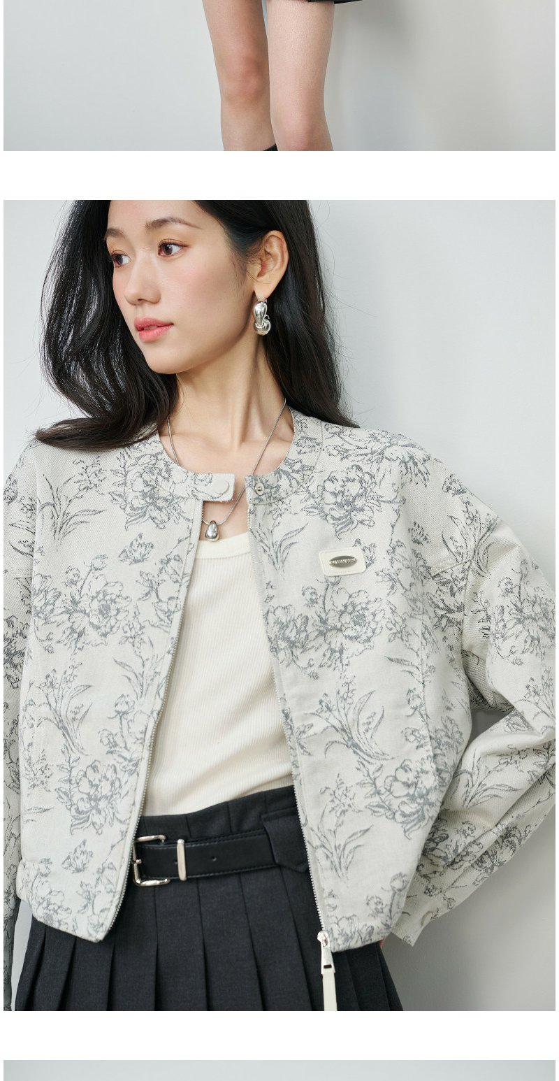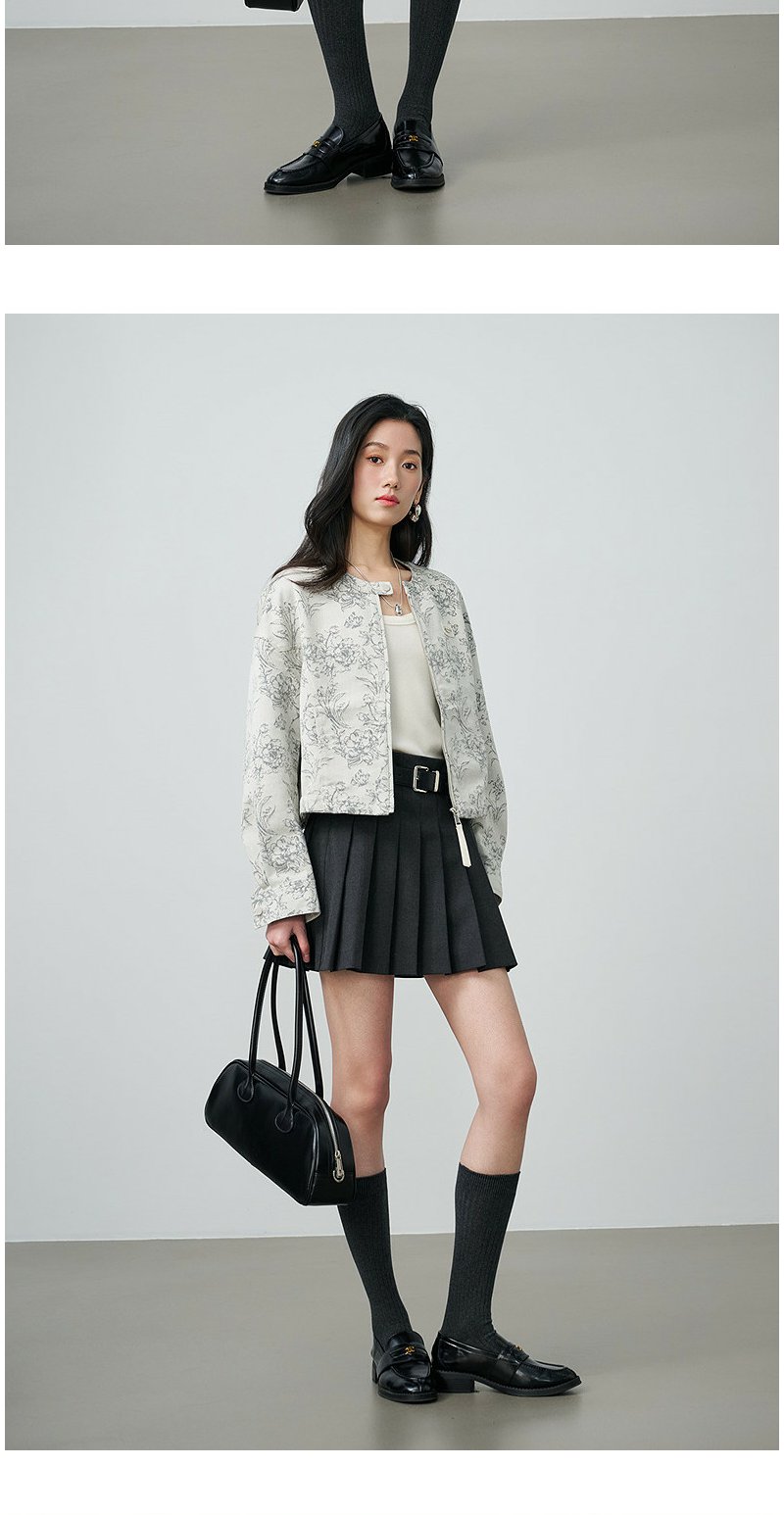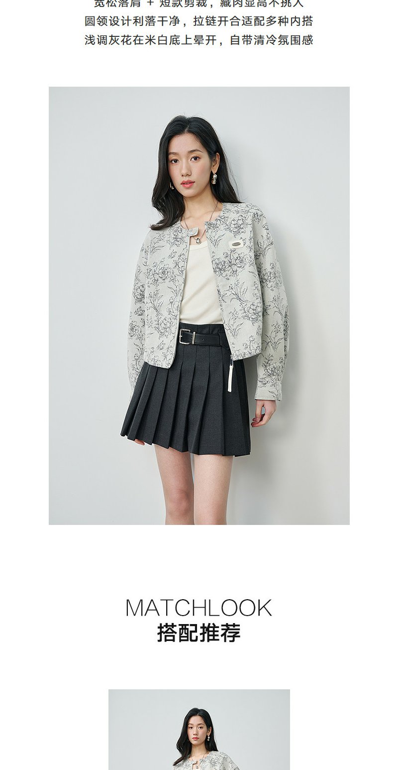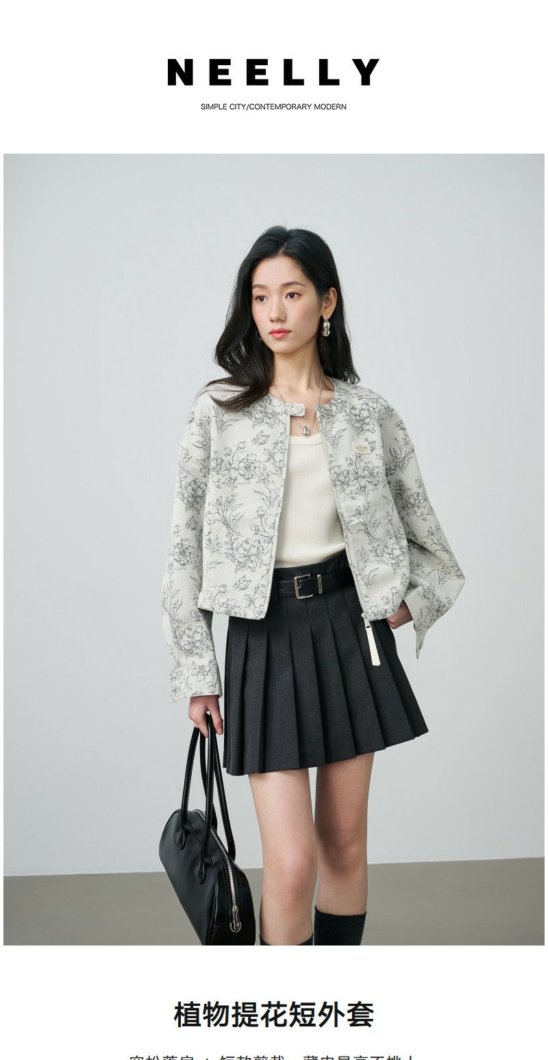 NEELLY纳俪商场同款春新款清冷优雅提花短外套女圆领宽松显白上衣N26024C07701