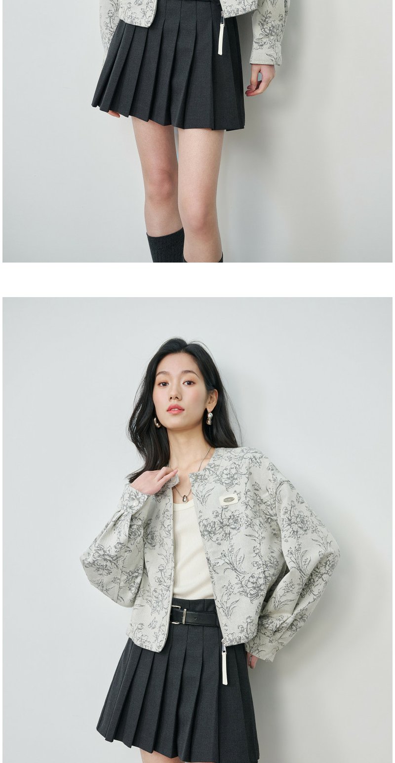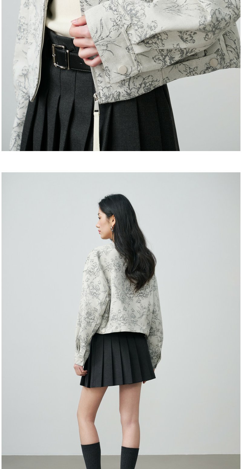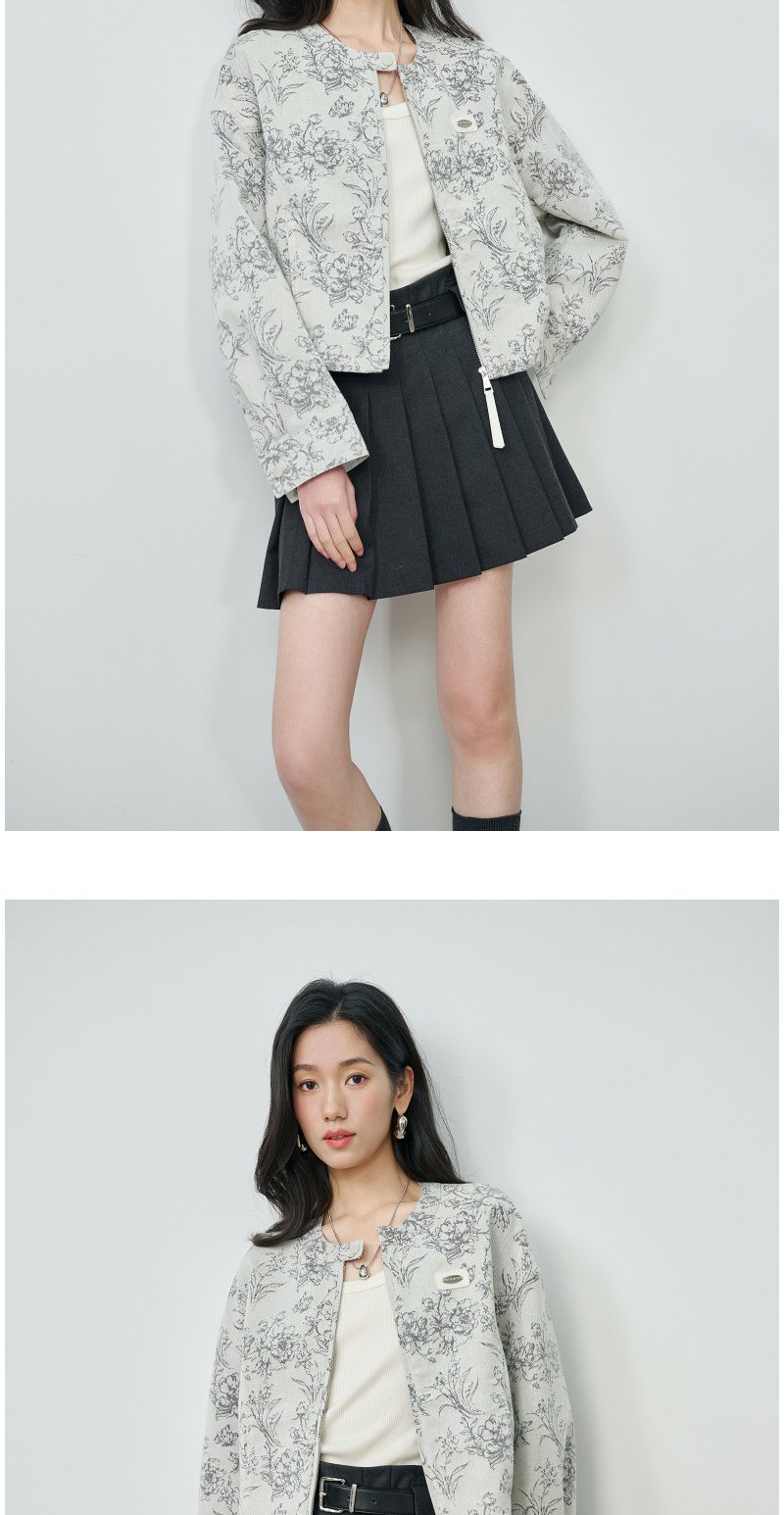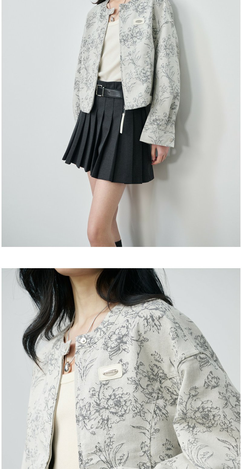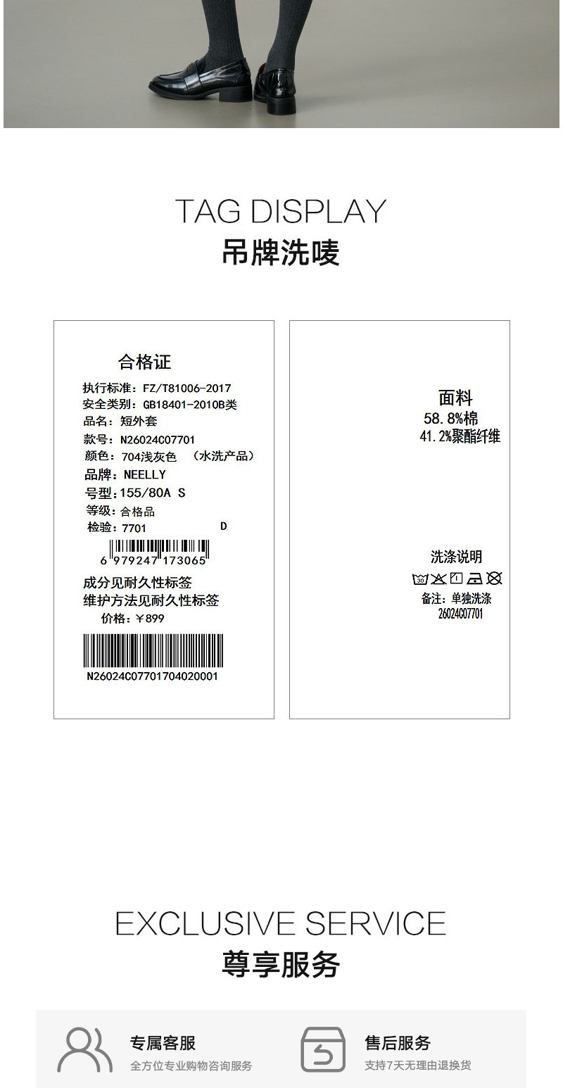 NEELLY纳俪商场同款春新款清冷优雅提花短外套女圆领宽松显白上衣N26024C07701