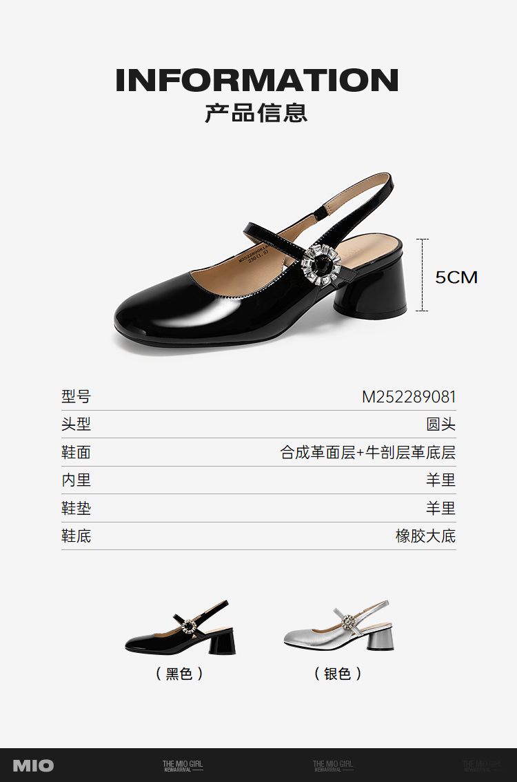 MIO米奥甜美凉鞋搭扣设计圆头中跟百搭玛丽珍女鞋M252289081