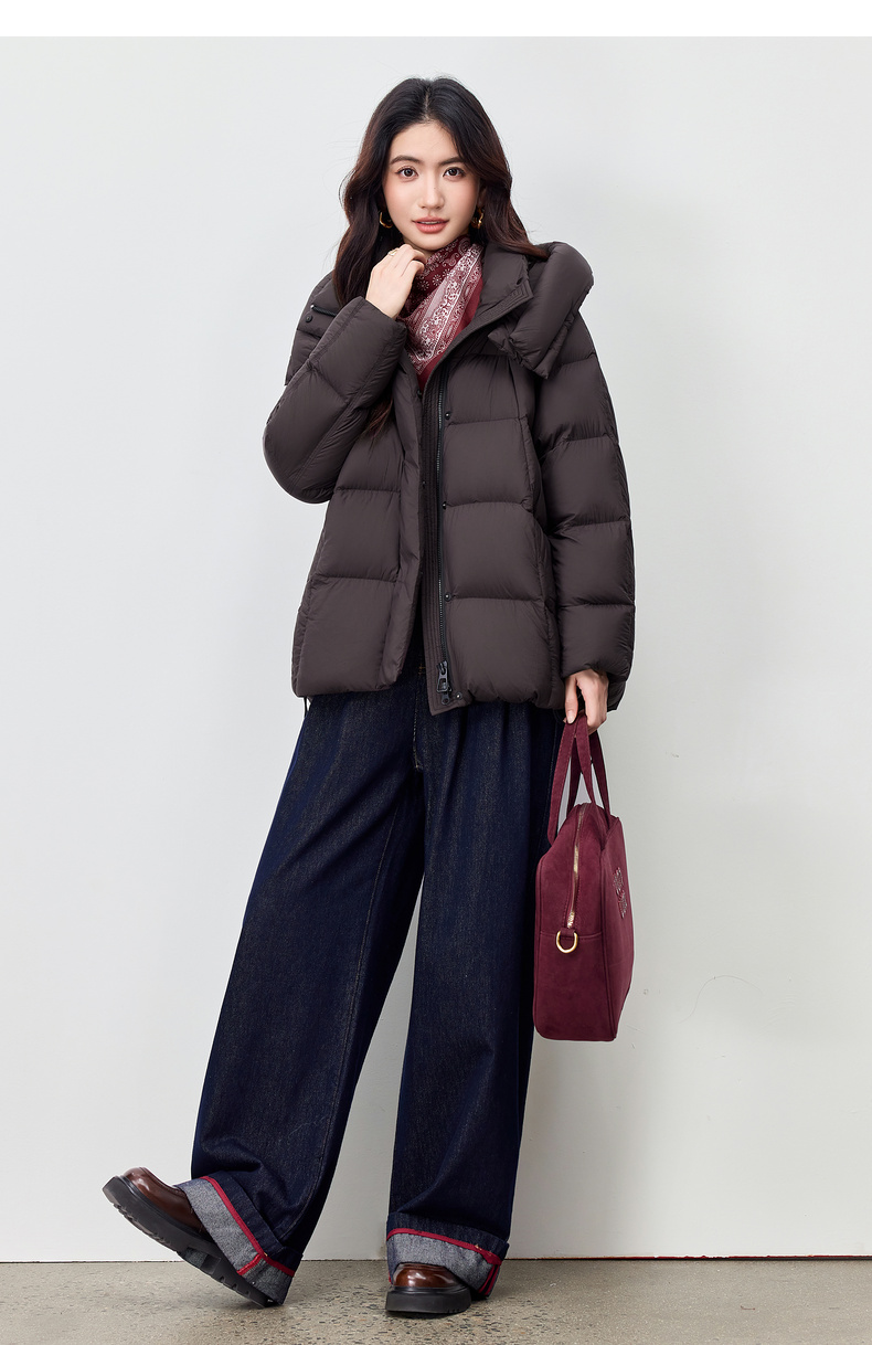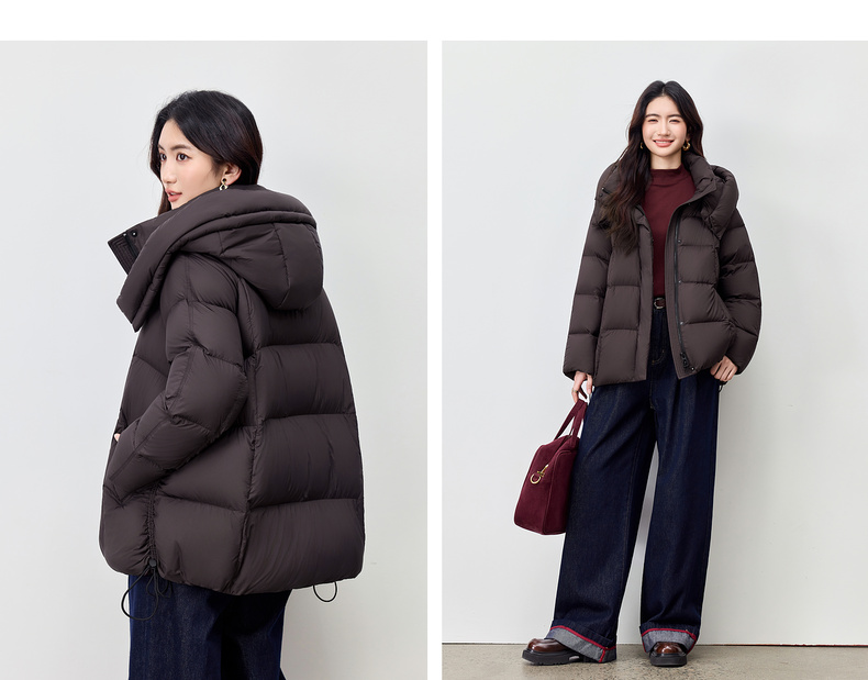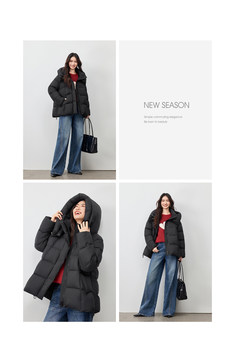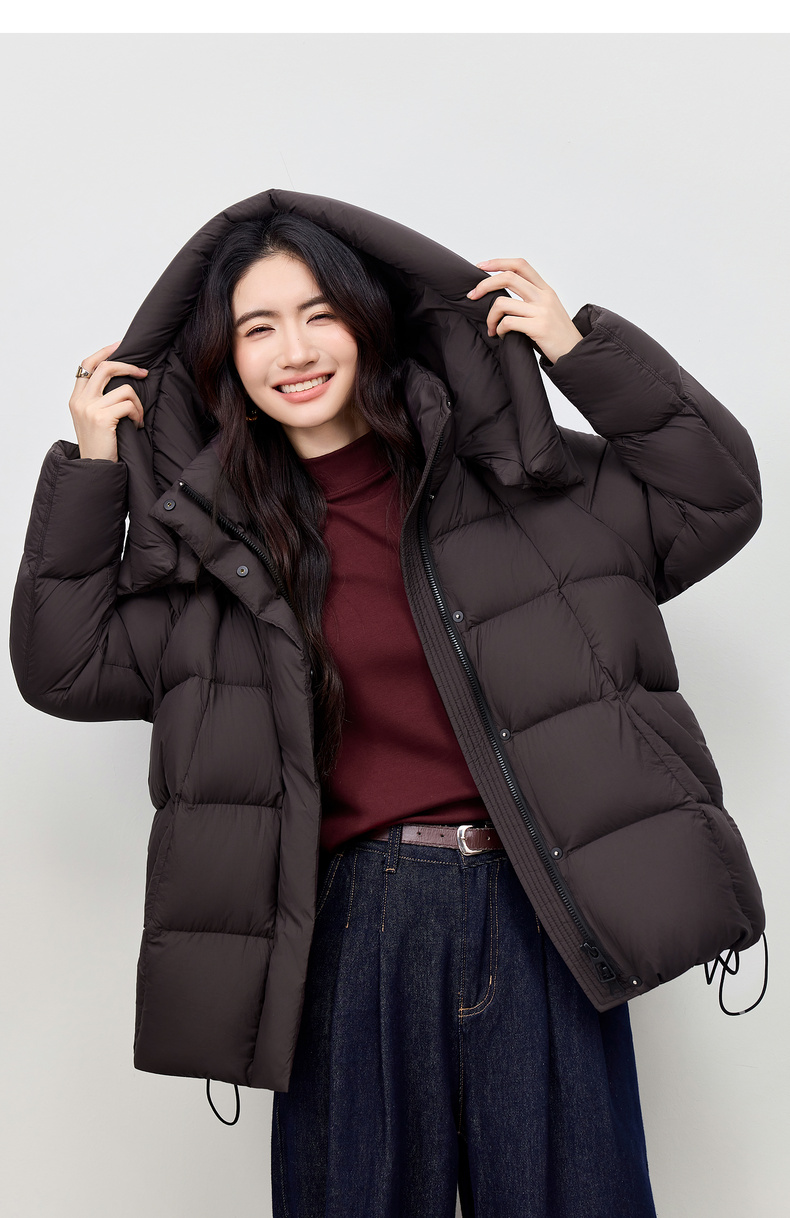 【内购】【90%白鸭绒】通勤御寒保暖立领连帽拉链宽松不臃肿中长款羽绒服-W54YA3385