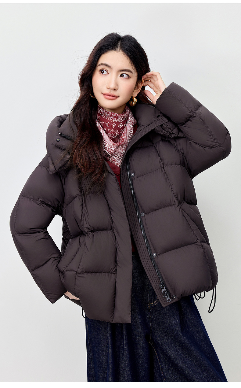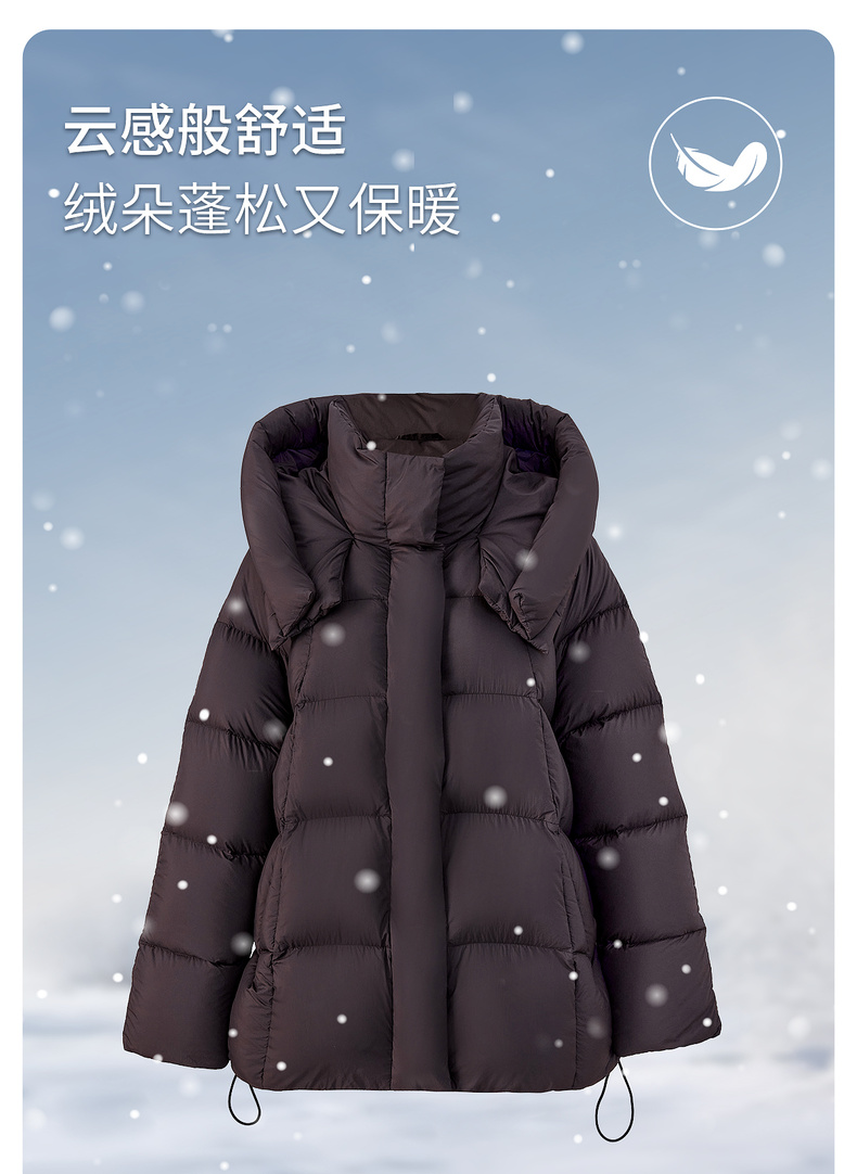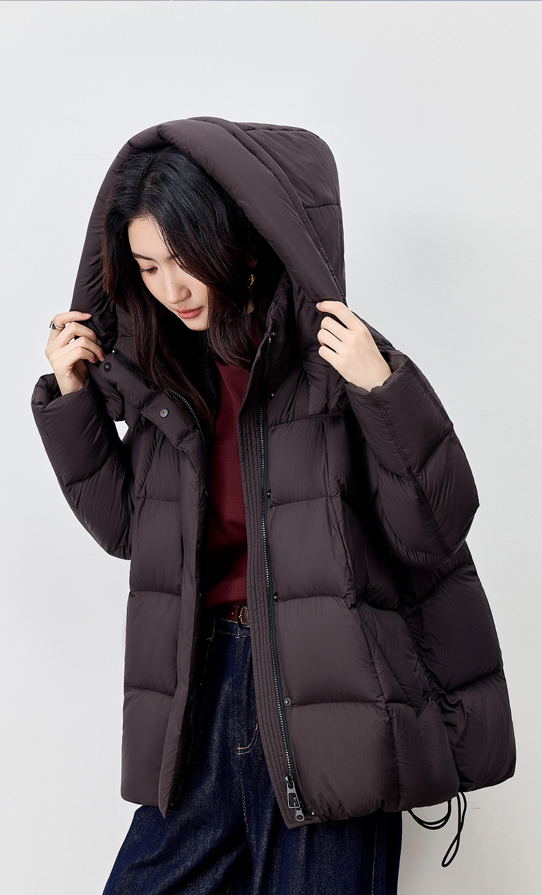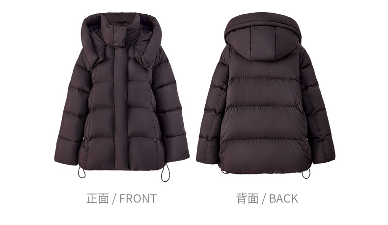 【内购】【90%白鸭绒】通勤御寒保暖立领连帽拉链宽松不臃肿中长款羽绒服-W54YA3385