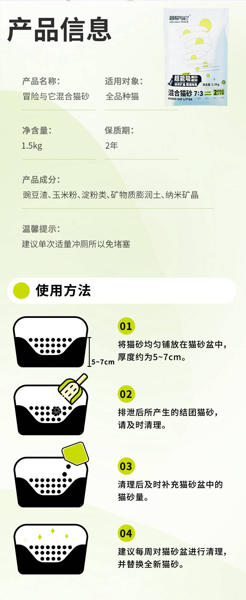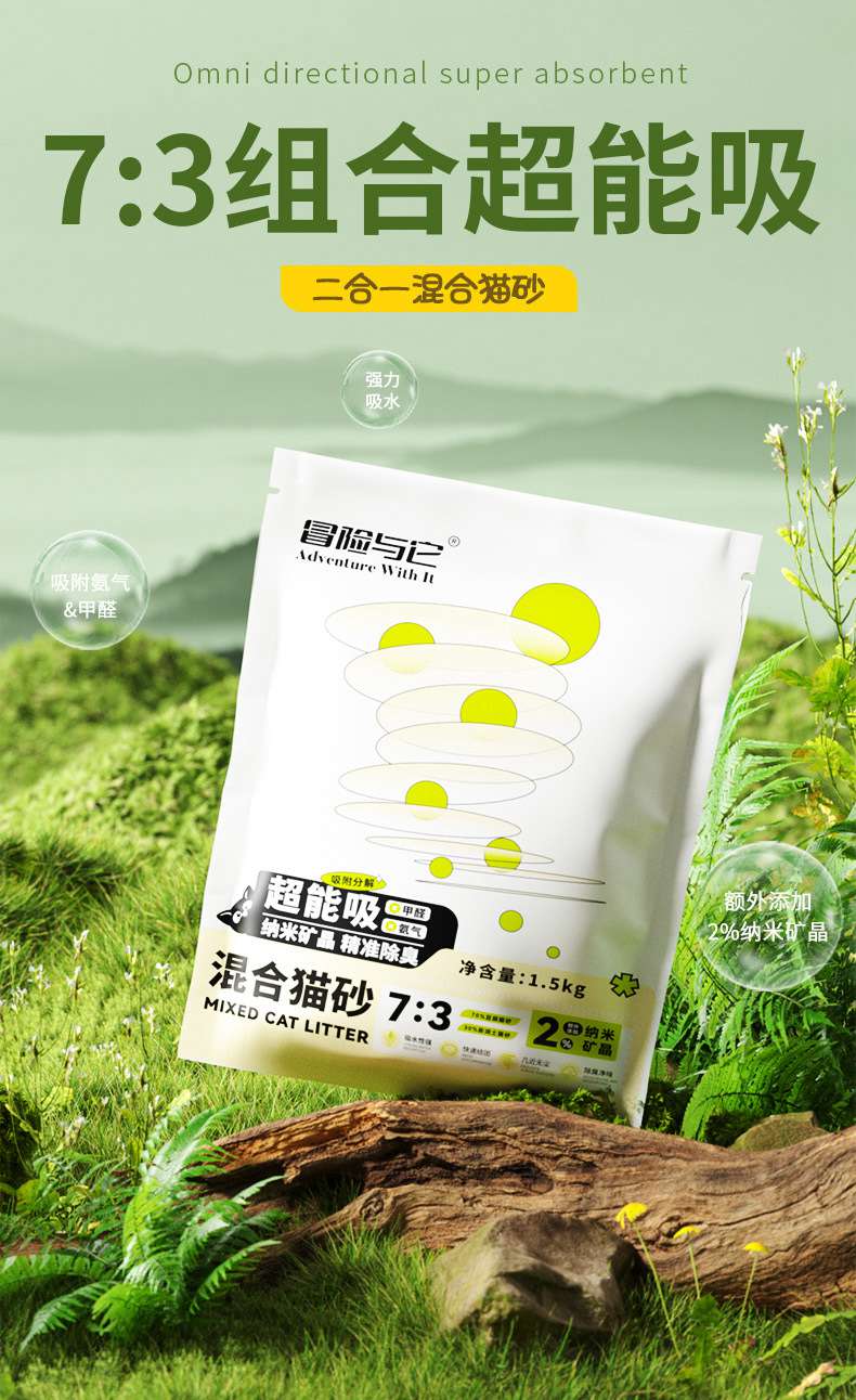 【猫砂】冒险与它混合猫砂1.5kg豆腐猫砂+钠基膨润士 高效除臭不粘底 整箱=16袋