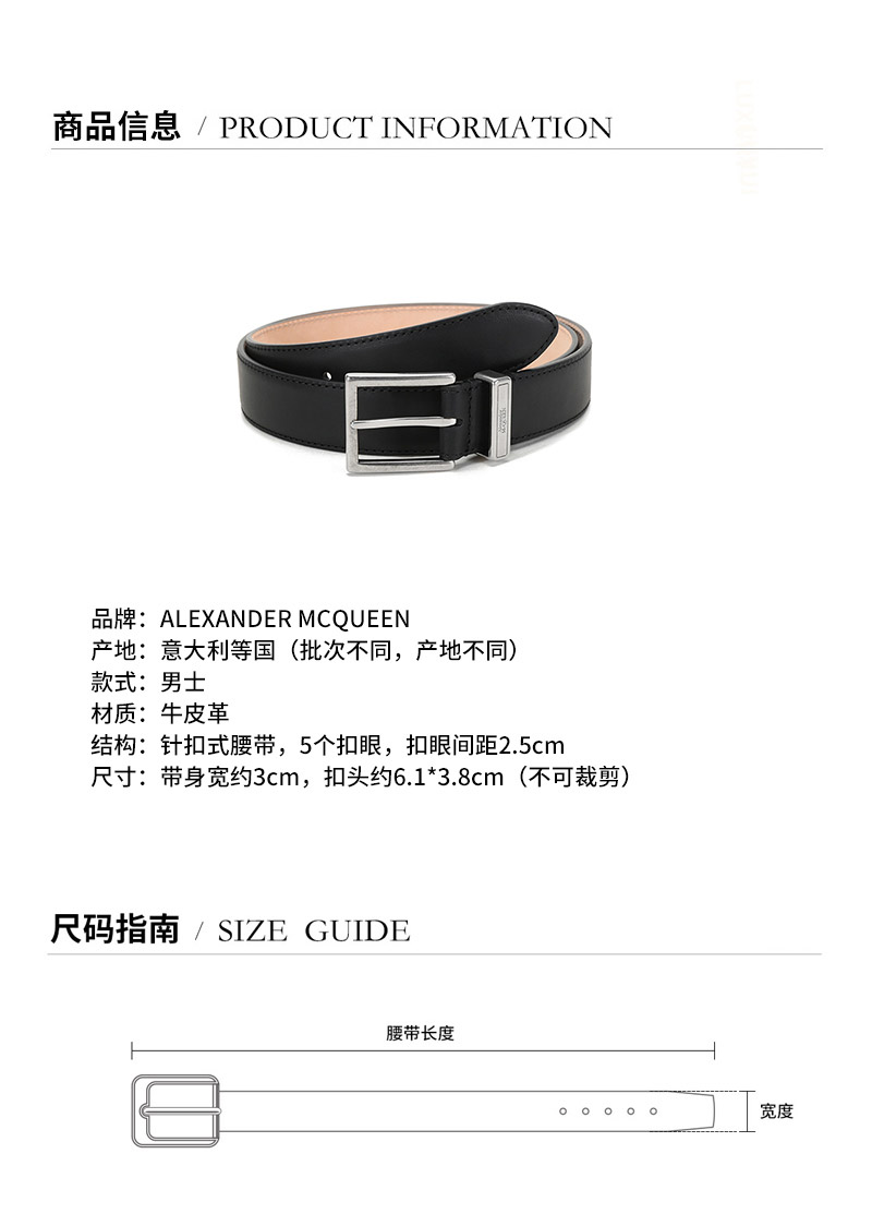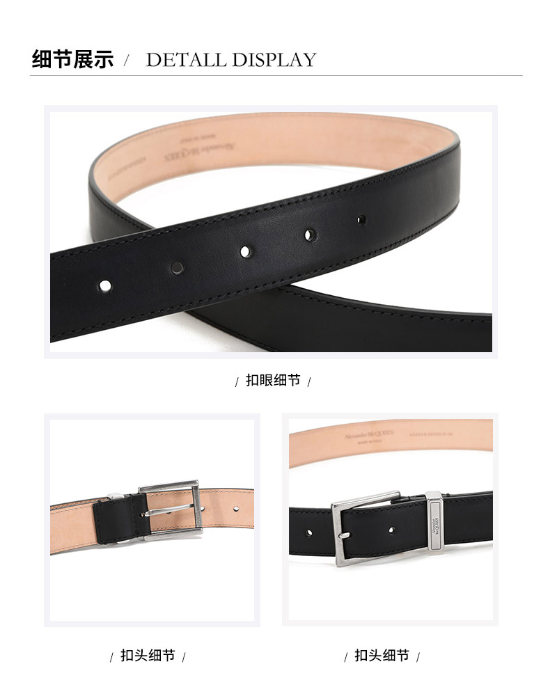 【国内现货】Alexander McQueen/亚历山大麦昆 2021款 男士牛皮革针扣式皮带腰带 625540 1XI0Y