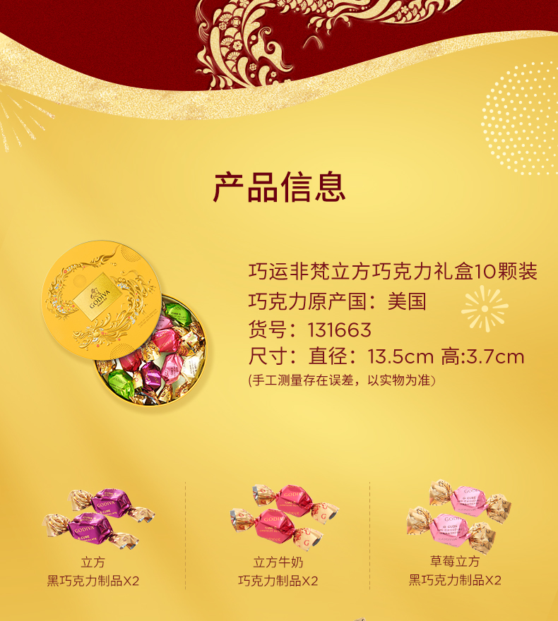 【龙年限定】歌帝梵巧运非梵立方巧克力礼盒10颗装75g/041893 浓醇夹心5种缤纷滋味