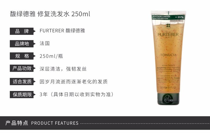【法国直邮】FURTERER/馥绿德雅 修复洗发水 250ML