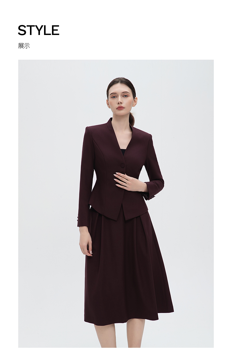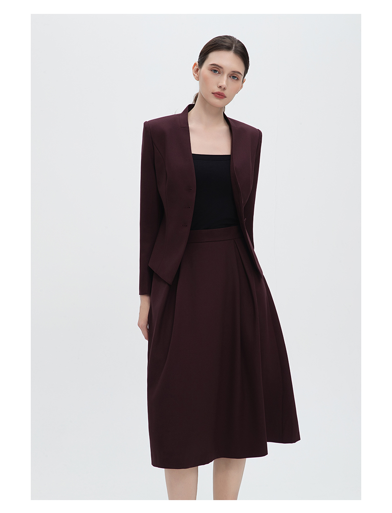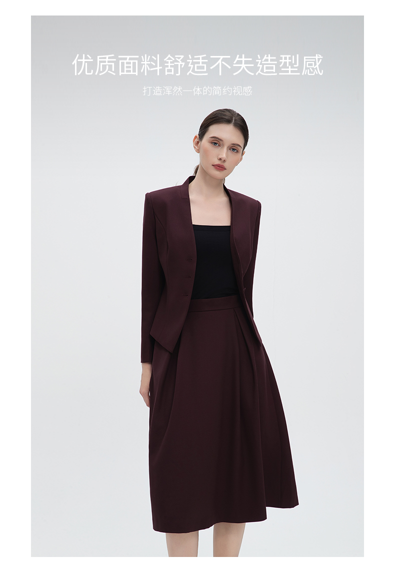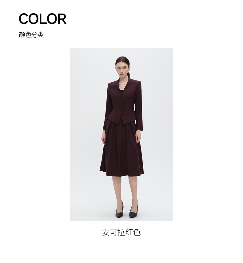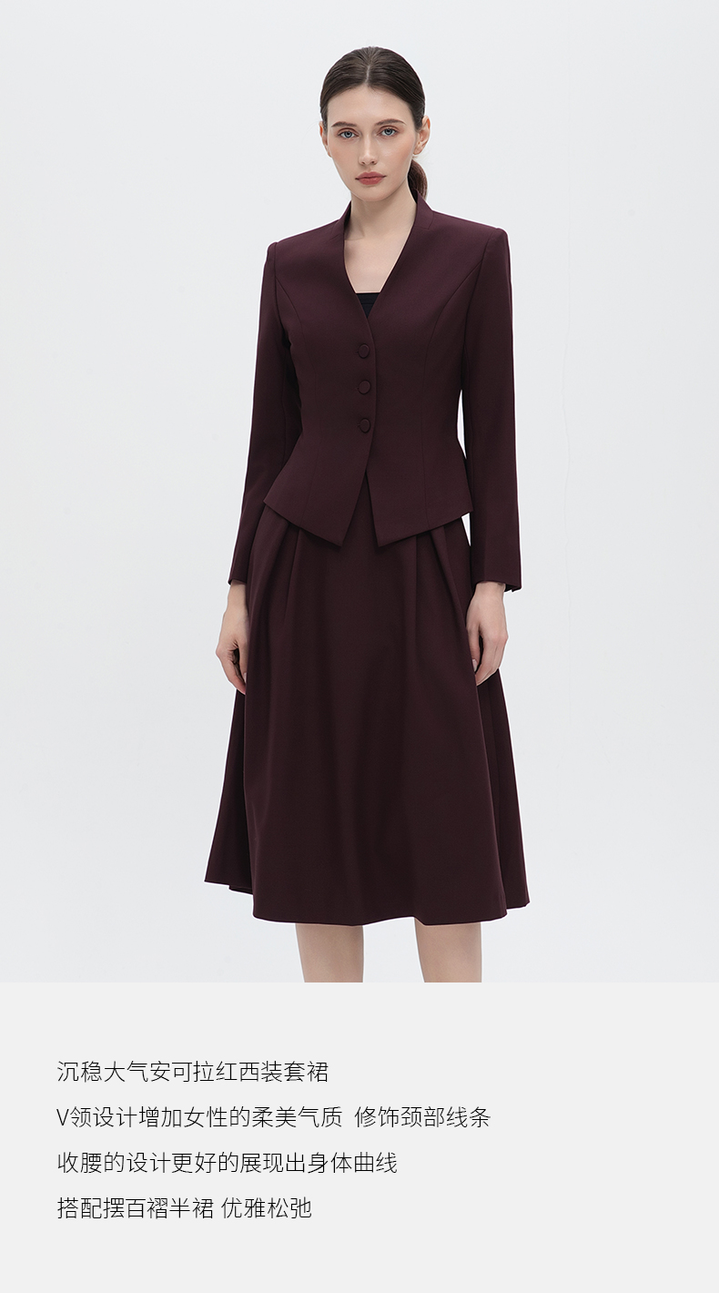IWY/安可拉红沉稳大气西装套裙新款V领柔美修饰颈部收腰显曲线百褶半裙优雅松弛CS14336